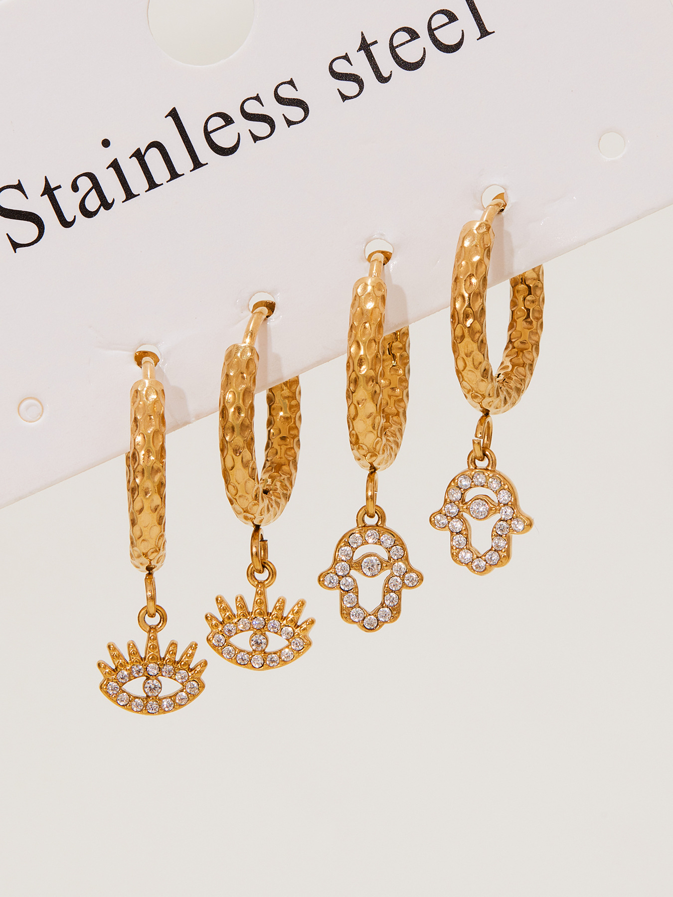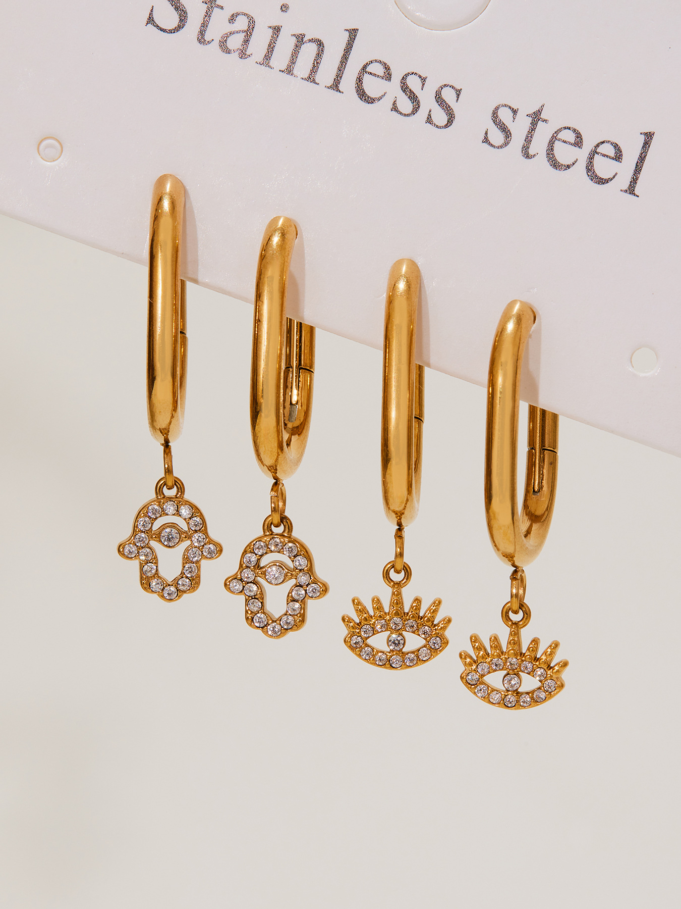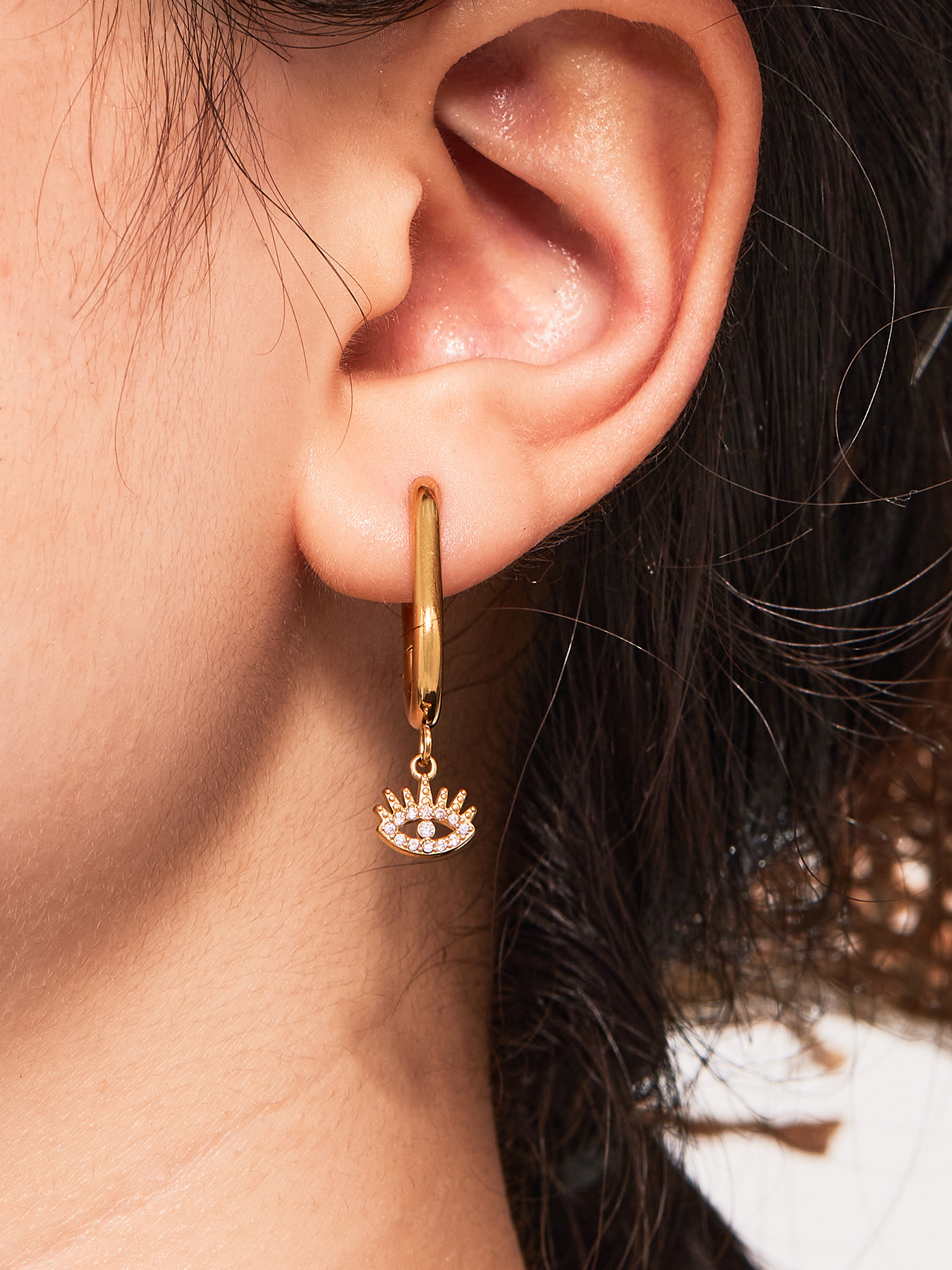 Add a touch of mystery and elegance with these Evil Eye pendant earrings, featuring a full zircon design that catches the light beautifully. Crafted from high-quality stainless steel and plated with 18K gold, these earrings are hypoallergenic, tarnish-resistant, and perfect for everyday wear.