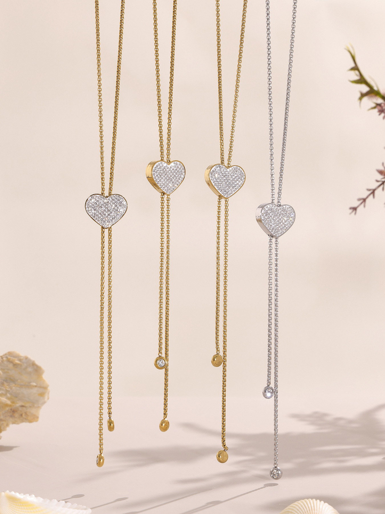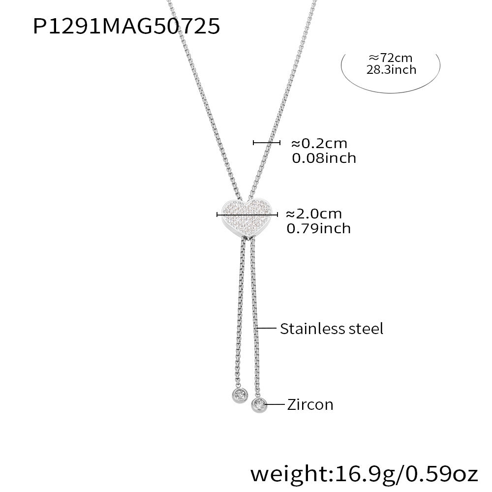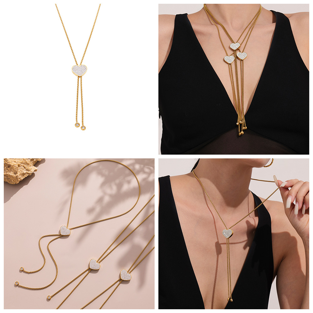 18K Gold Plated Stainless Steel Long Tassel Necklace – Sparkling Heart Zircon Pendant