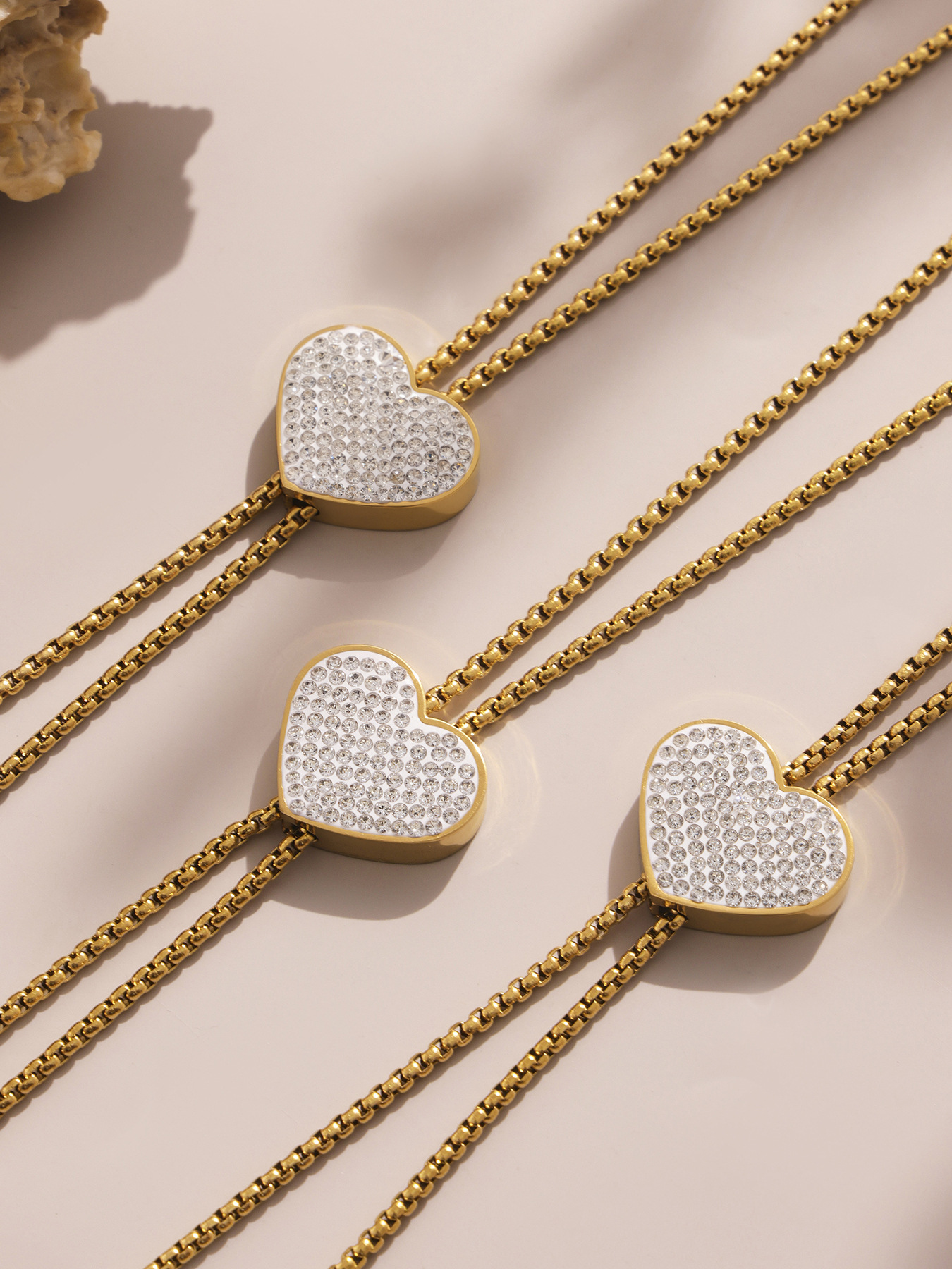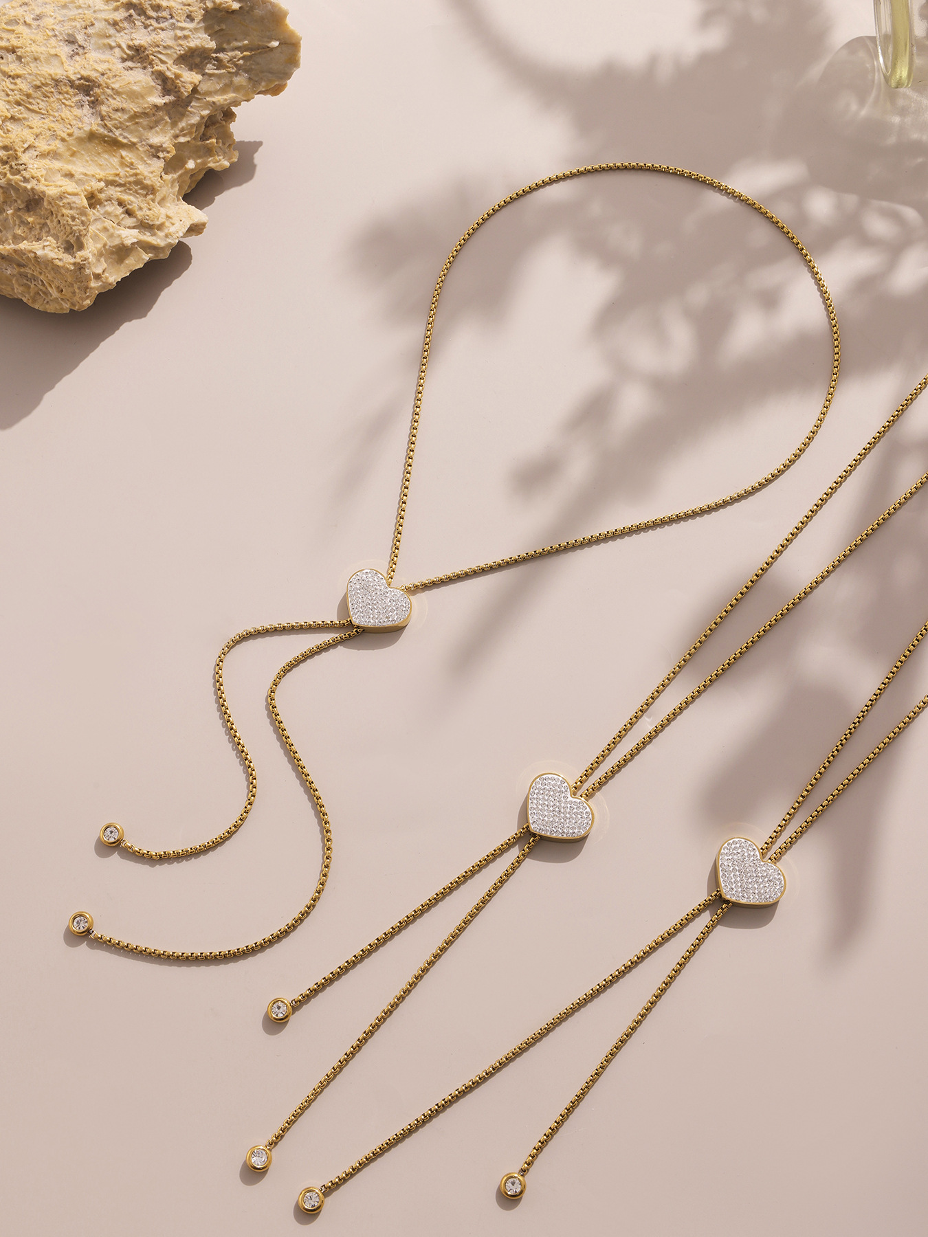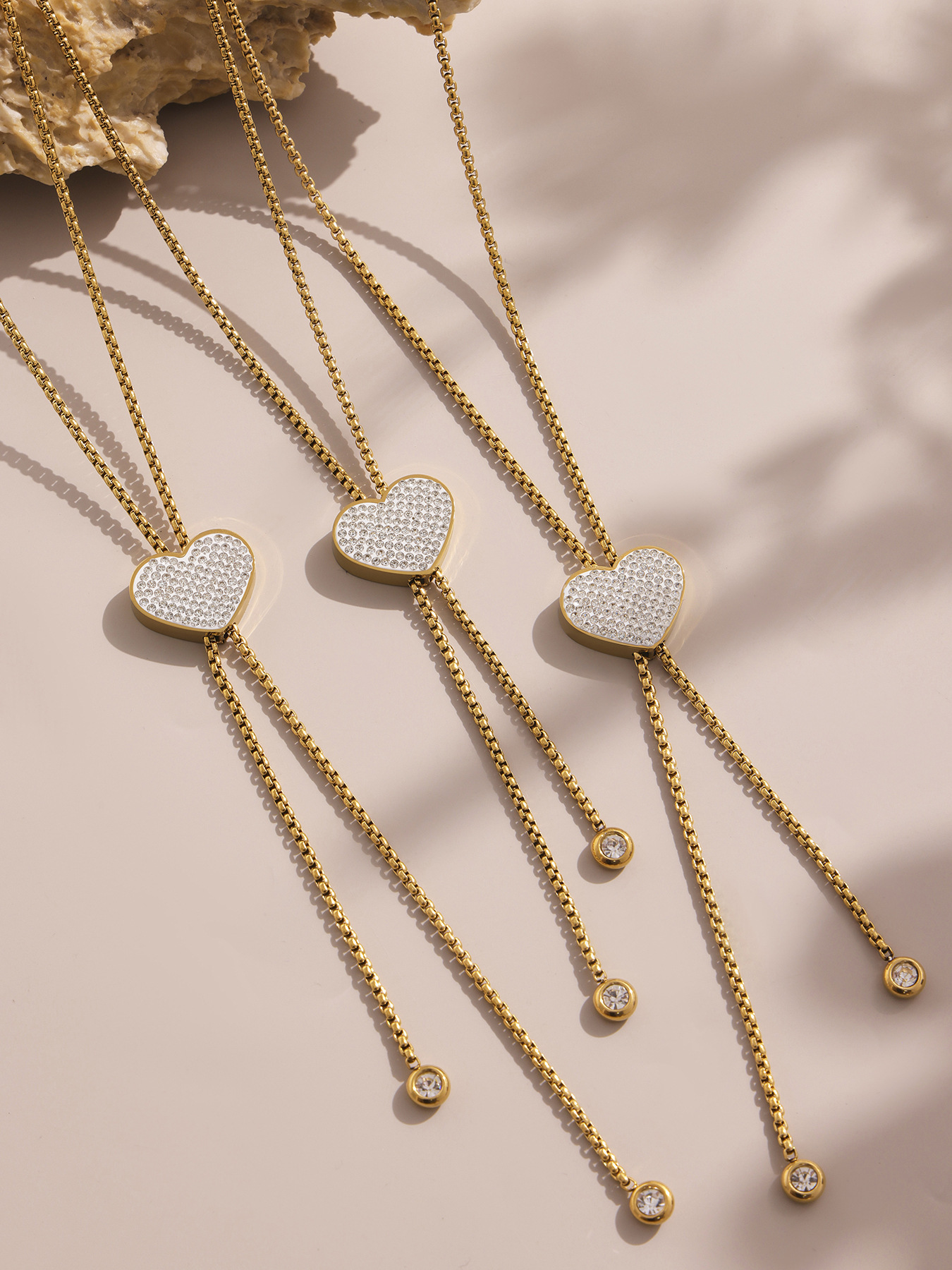 18K Gold Plated Stainless Steel Long Tassel Necklace – Sparkling Heart Zircon Pendant