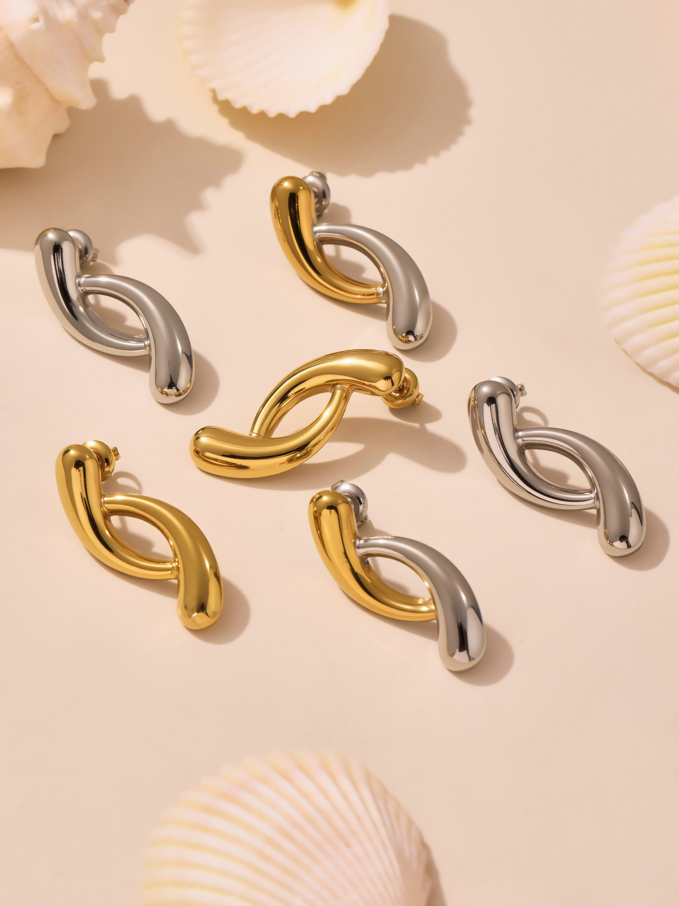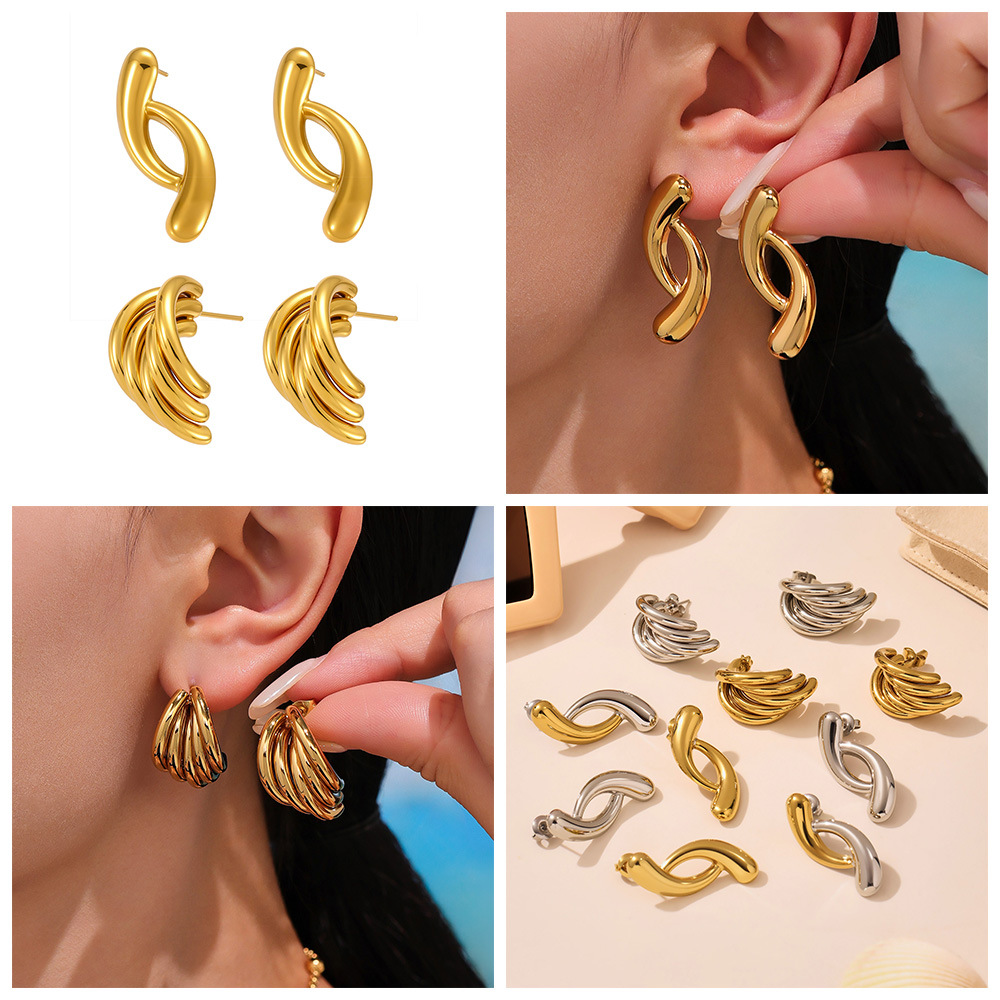 钛钢耳环 小众耳环 耳环度假风 金色耳饰 金色耳环 夸张耳环 花朵耳饰