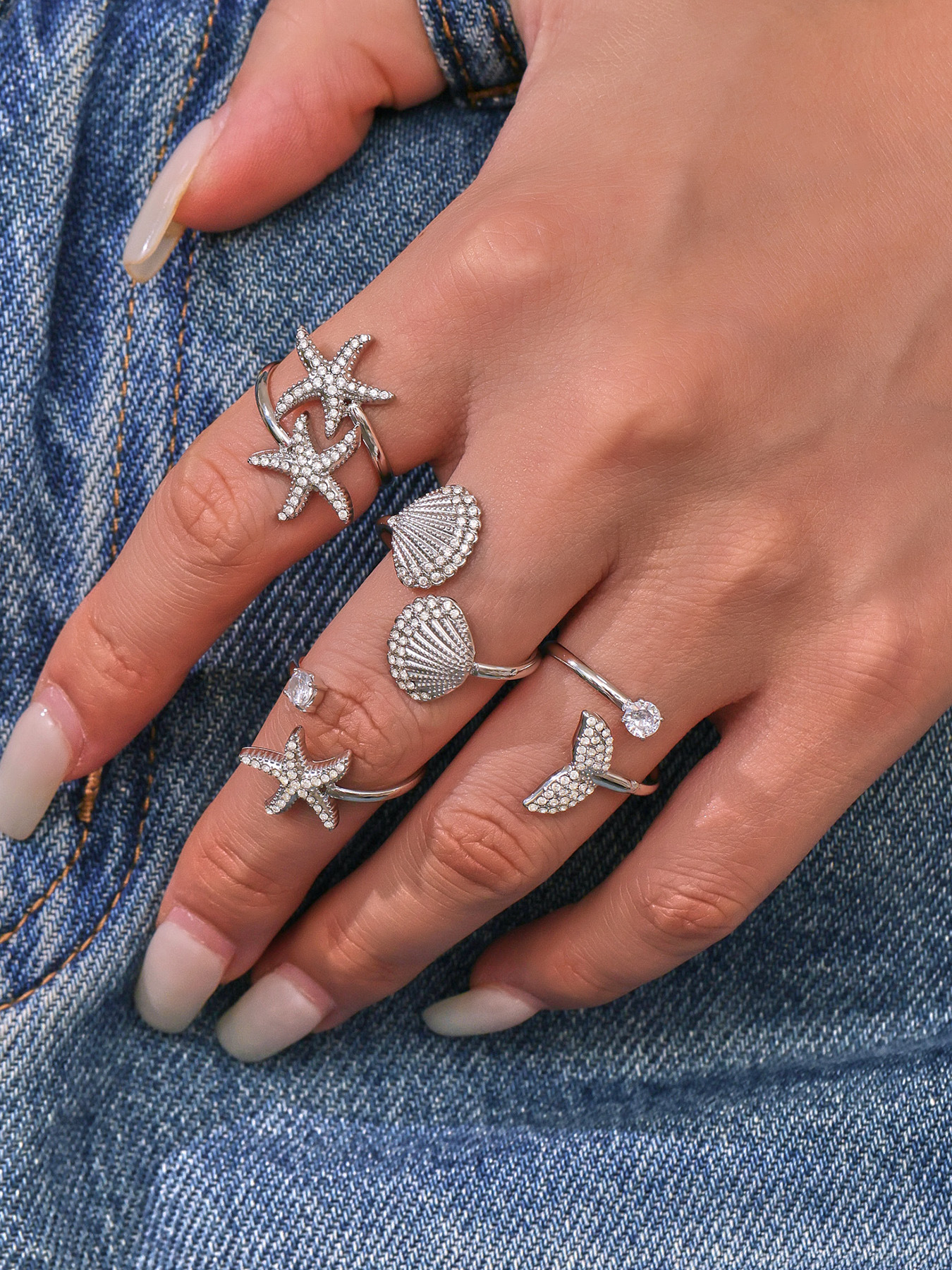 Add a touch of ocean charm with this 18K gold plated starfish and shell ring. Featuring sparkling cubic zirconia and an adjustable open design, it’s perfect for summer and beach outfits. Durable, lightweight, and ideal for everyday wear or gifting.