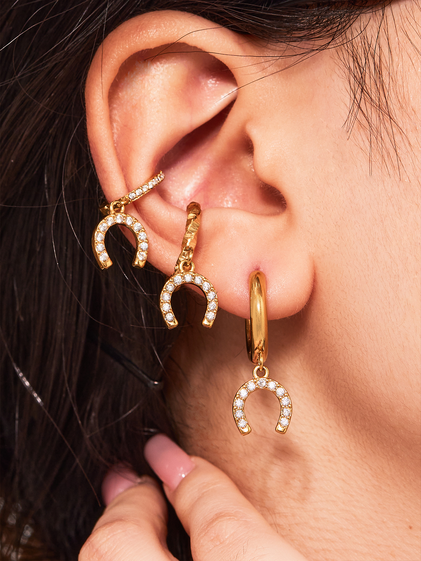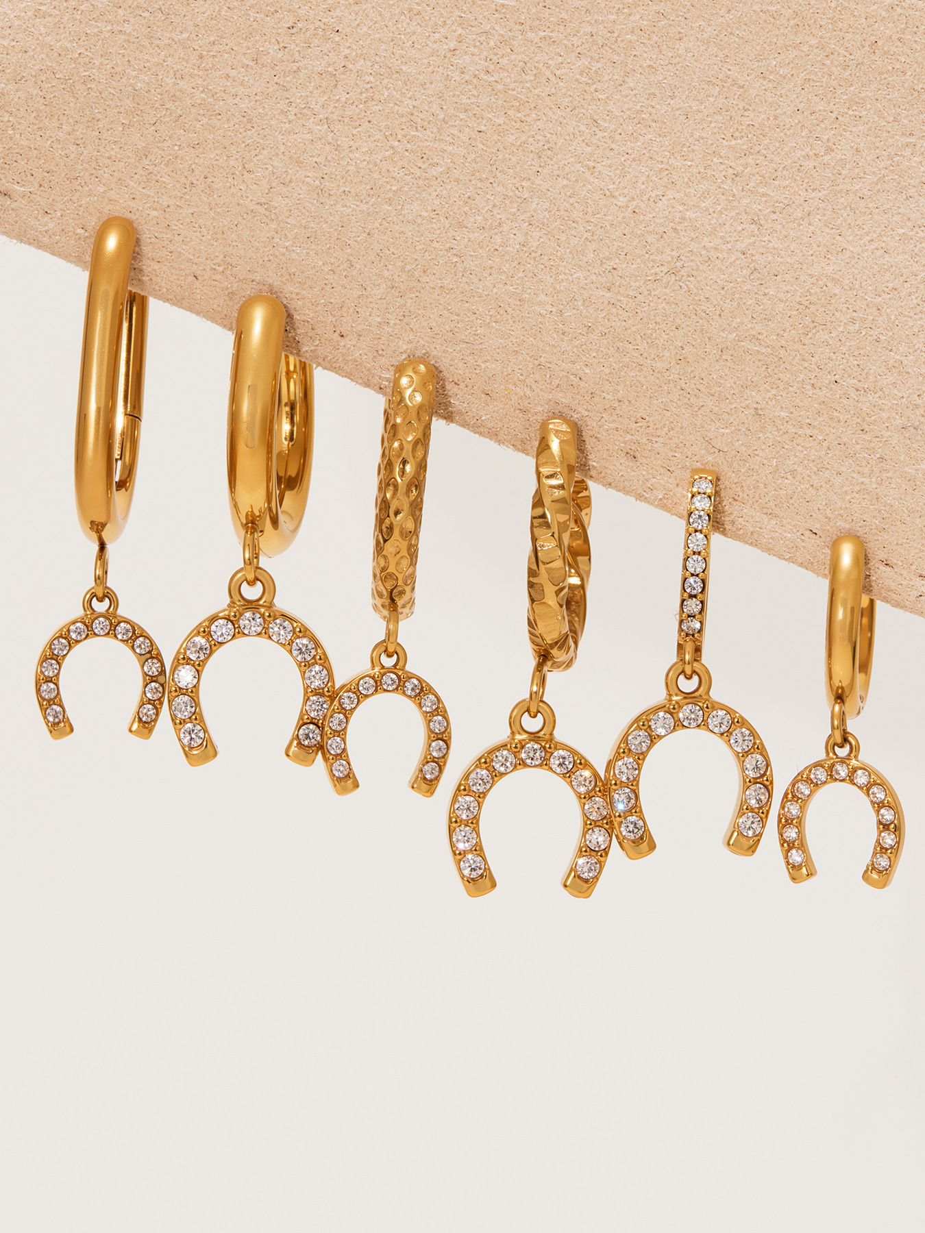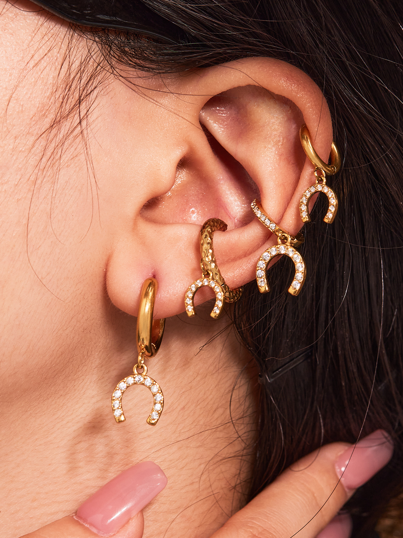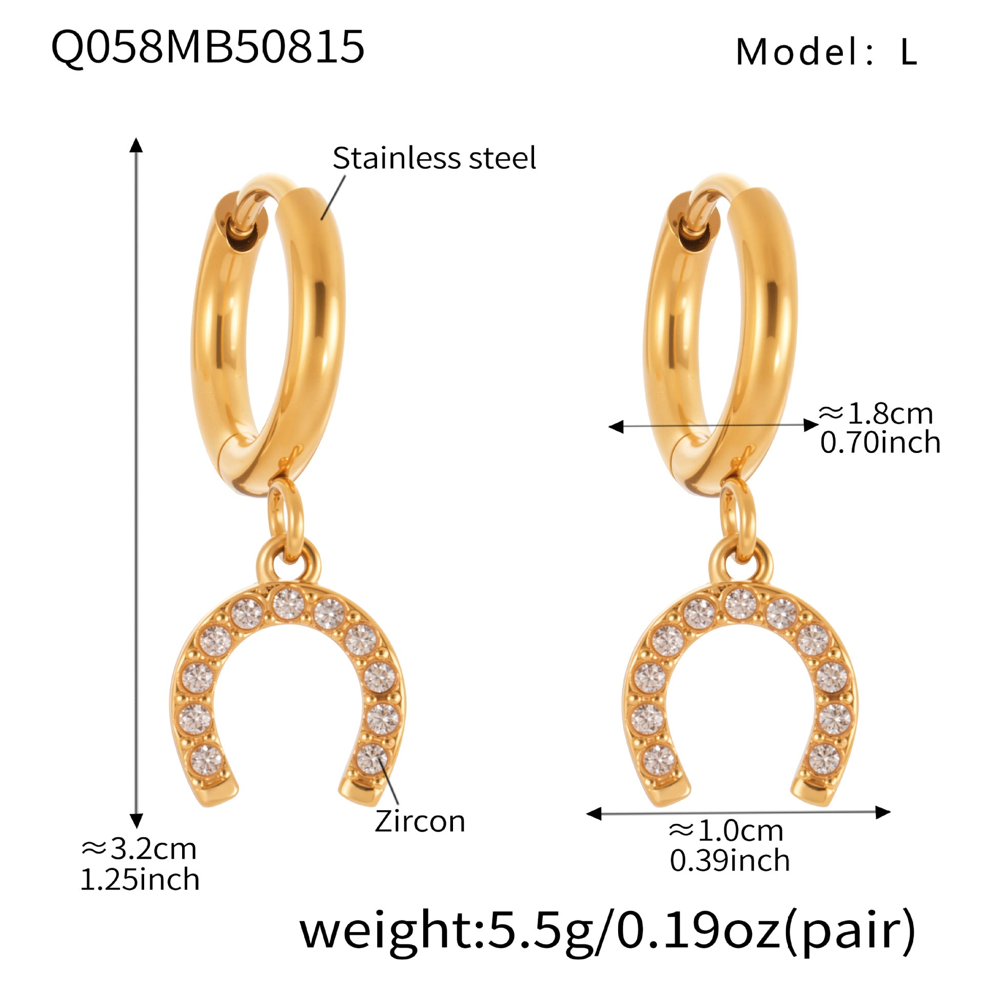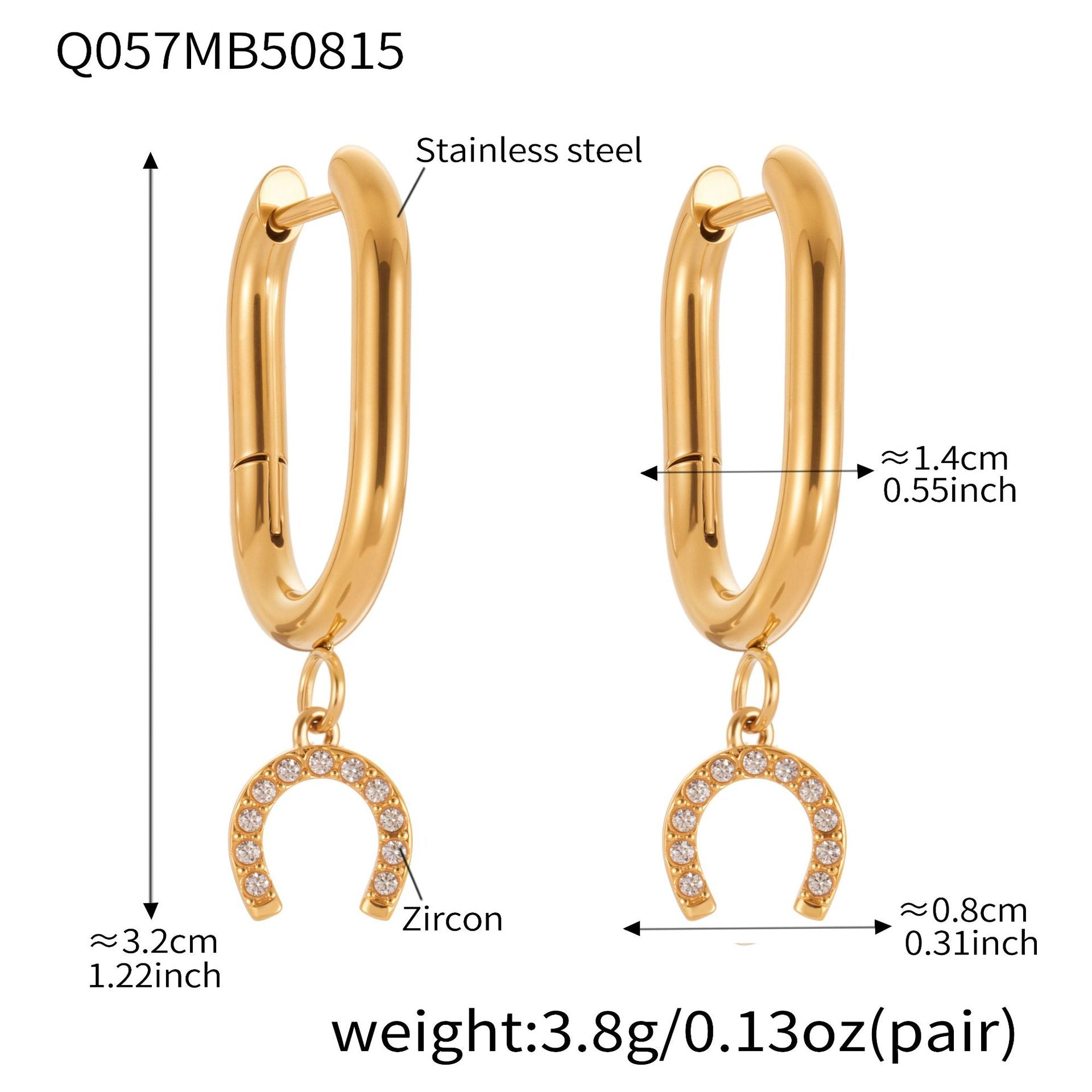 Embrace understated elegance with these 5A zircon horseshoe hoop earrings, featuring a full-zircon pendant that sparkles beautifully in every light. Crafted from durable stainless steel and plated with PVD gold, these earrings offer a minimalist, high-quality look that lasts.