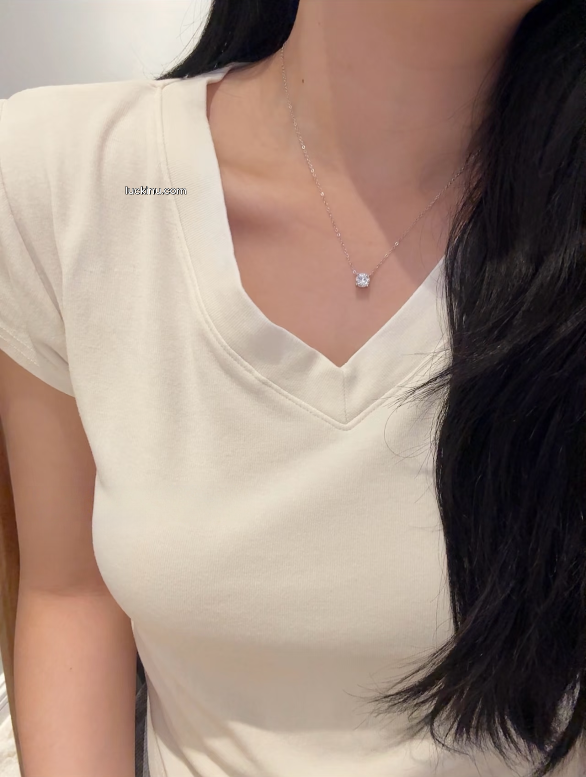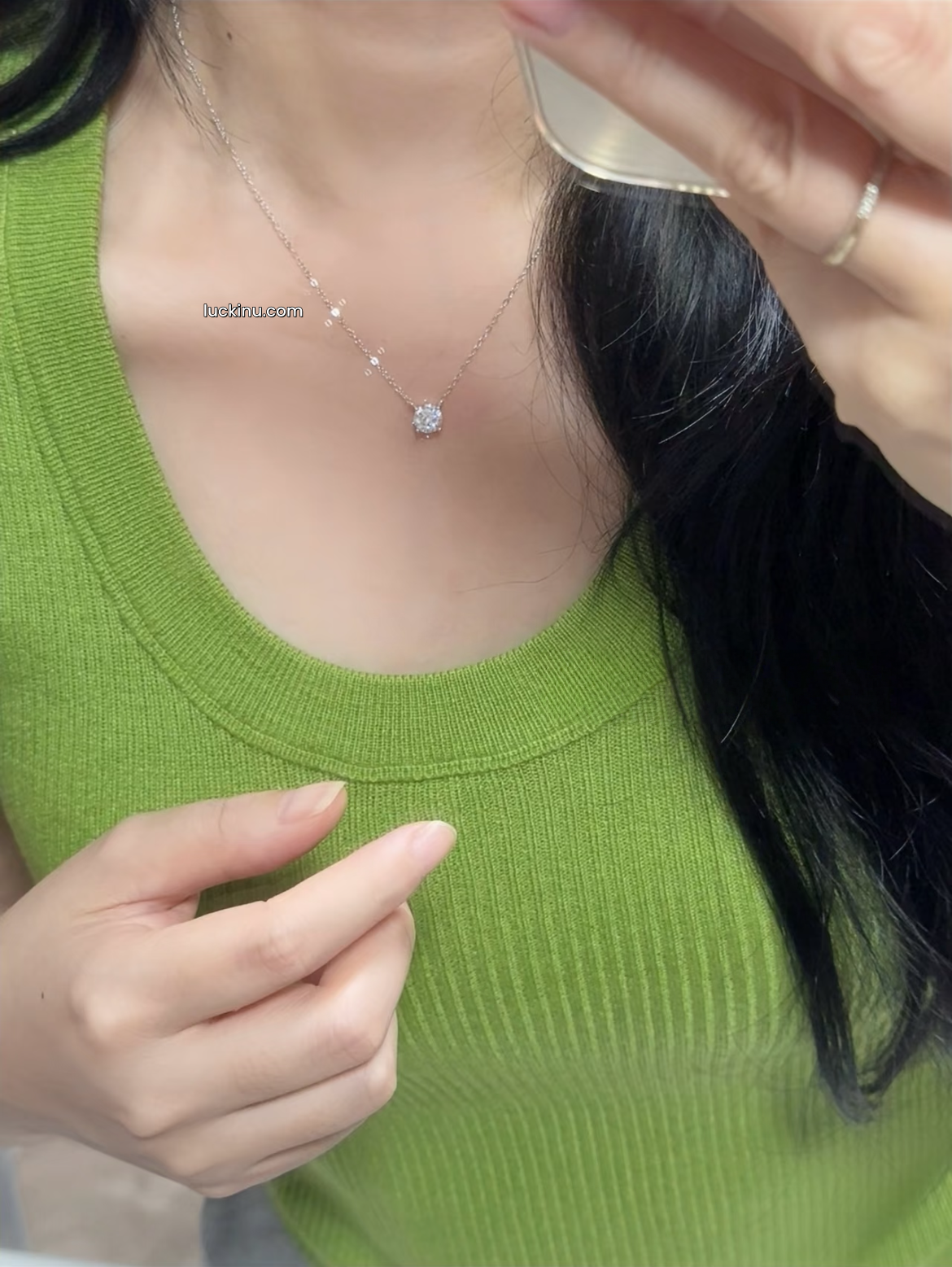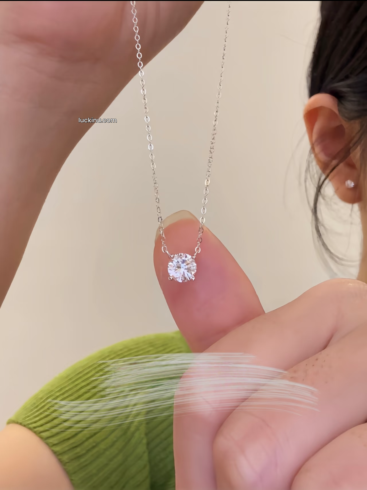 Classic Solitaire Pendant Necklace – Dainty Sterling Silver Chain with Sparkling Cubic Zirconia, Minimalist Everyday Jewelry Gift for Her.