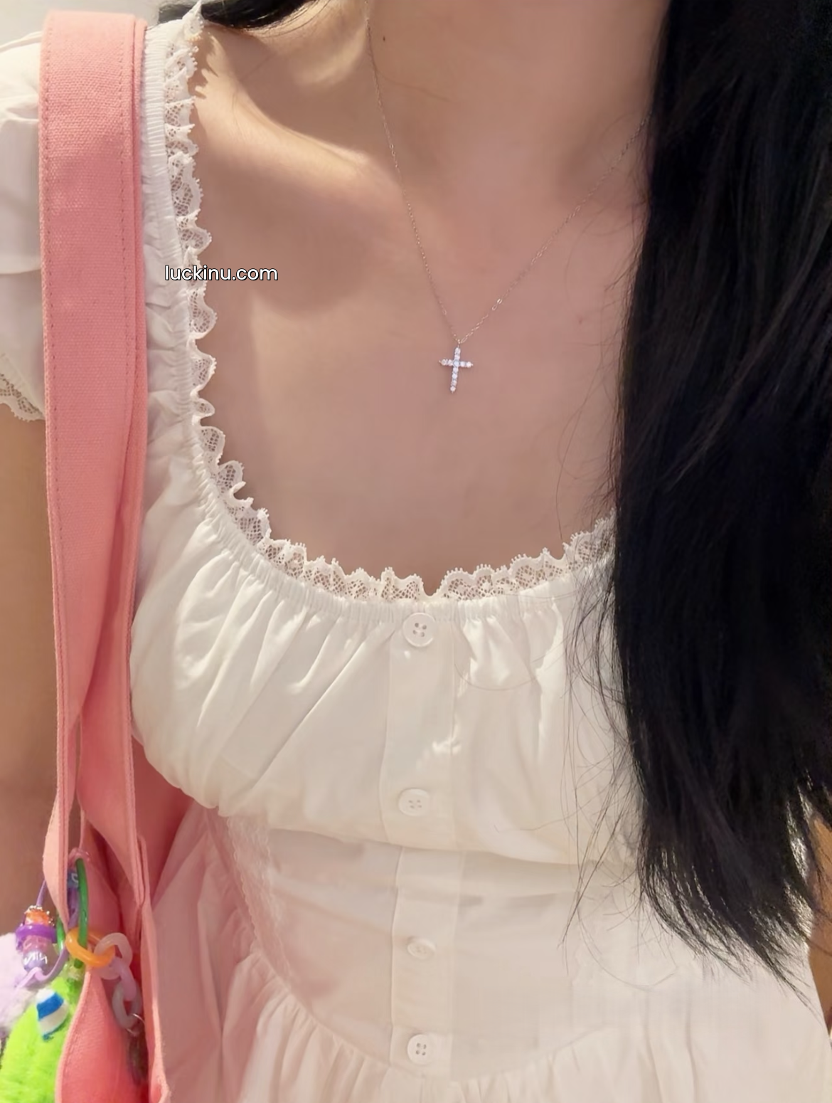 Classic Solitaire Cross Pendant Necklace – Dainty Sterling Silver Chain with Sparkling Cubic Zirconia, Minimalist Everyday Jewelry Gift for Her.