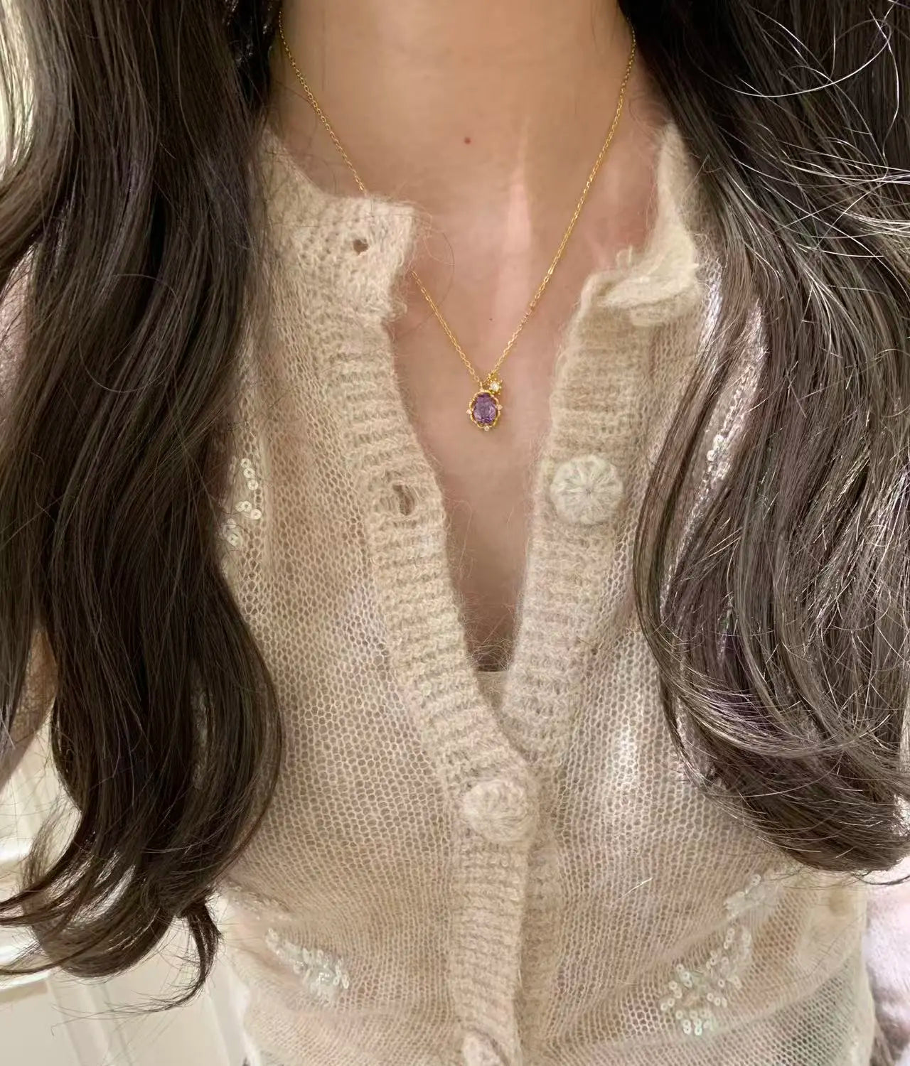 This necklace blends vintage romance with modern minimalism, making it the perfect accessory to add a touch of sophistication and color to your everyday look.