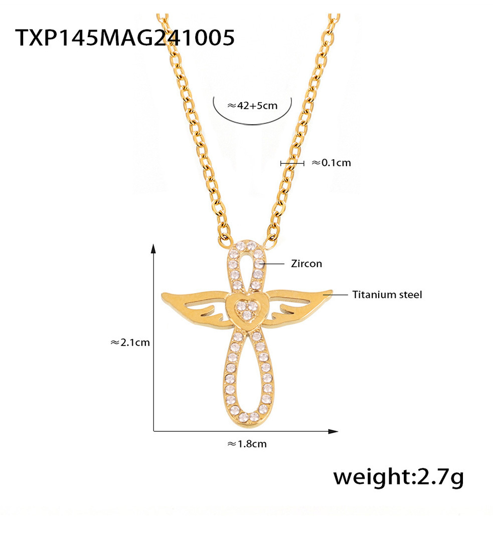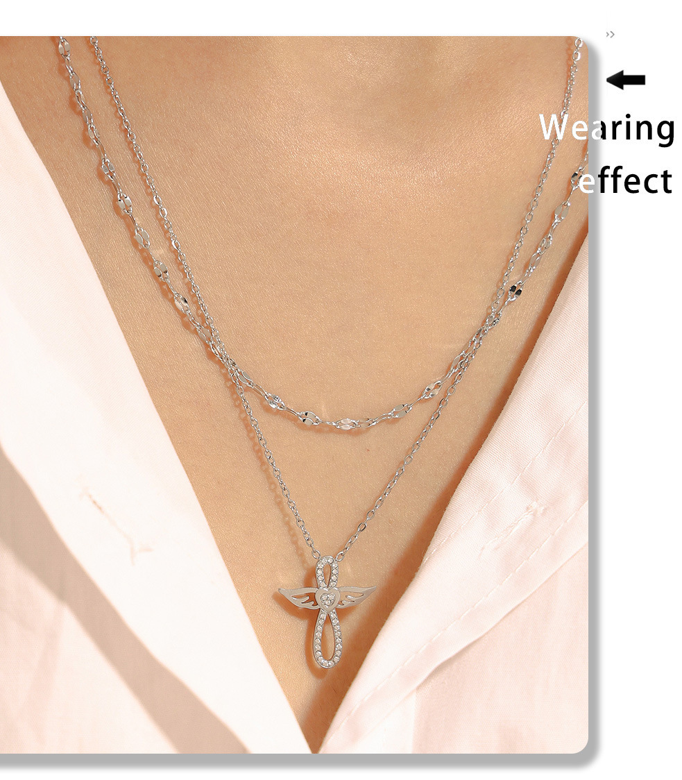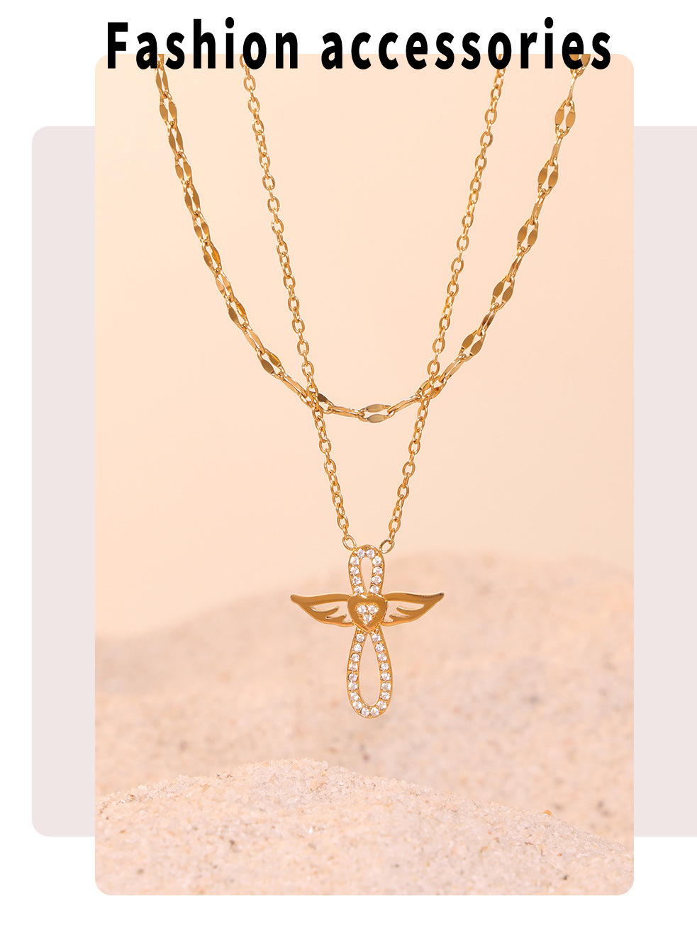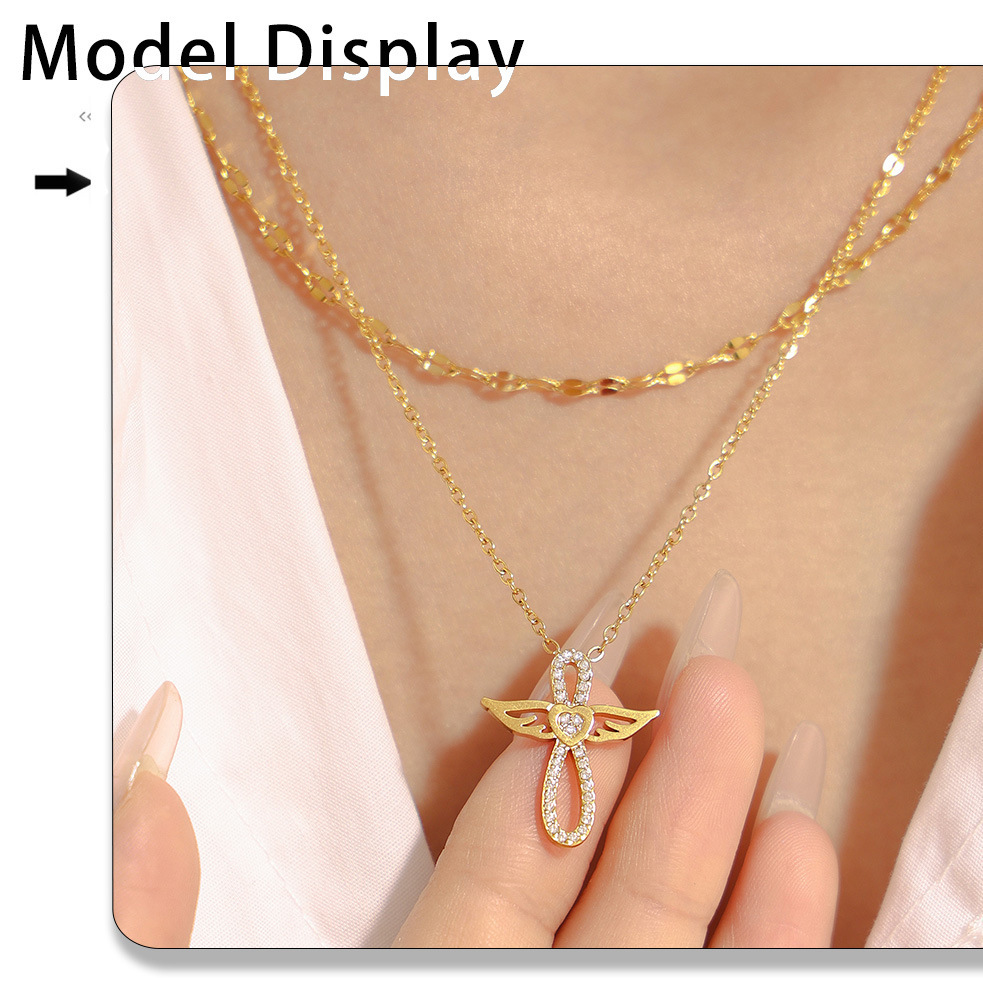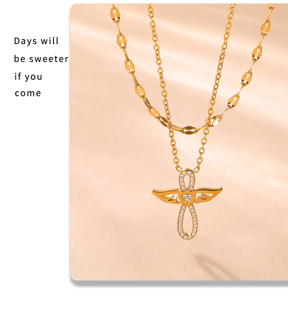 A delicate double-layer angel-wings design adorned with shimmering CZ stones. Crafted from high-quality stainless steel and plated in 18K gold, this piece brings a light-luxury glow to any look. Elegant, feminine, and perfect for daily wear or stacking with your favorite jewelry. Hypoallergenic, tarnish-resistant, and made to shine with every move.