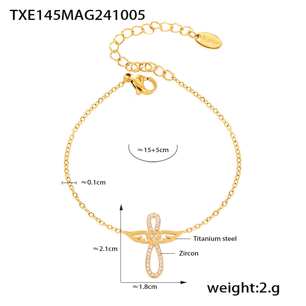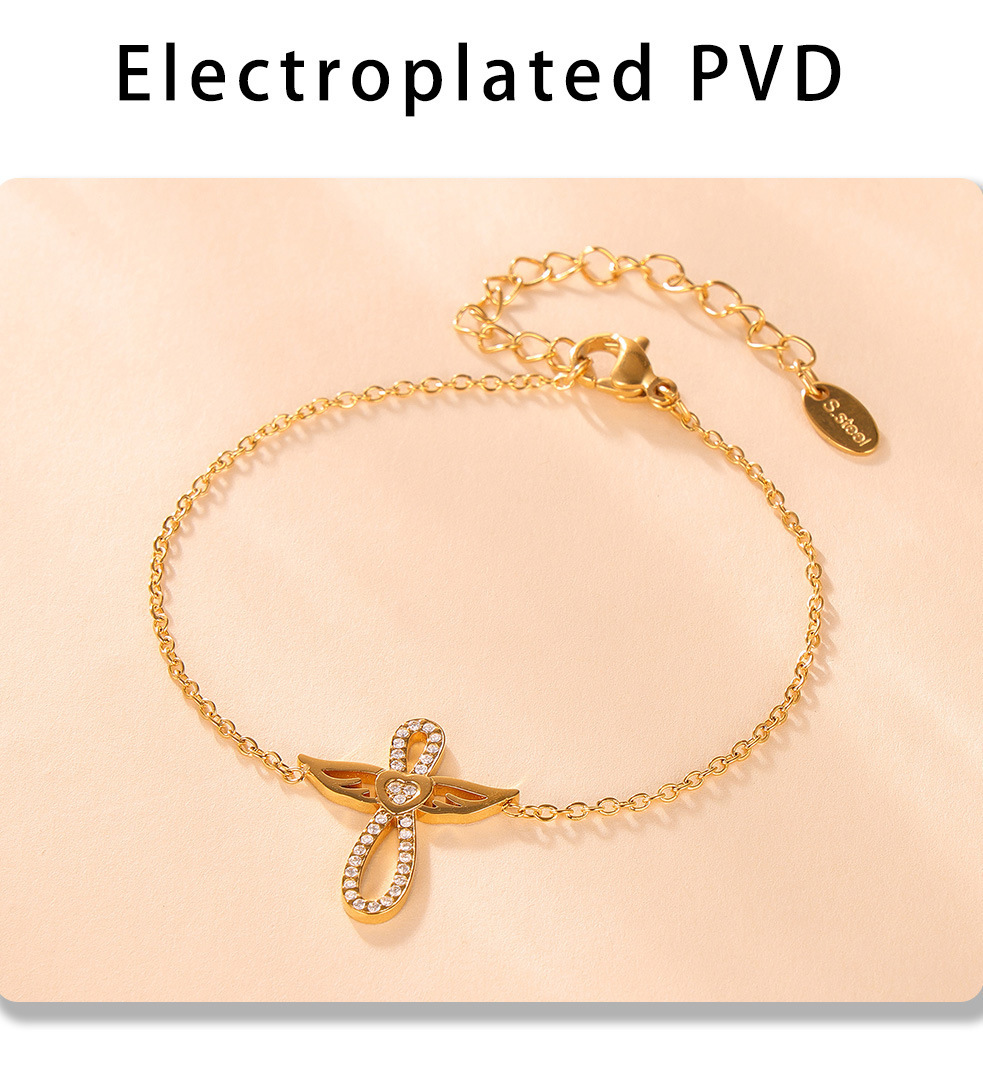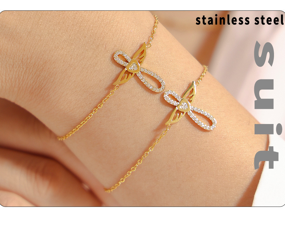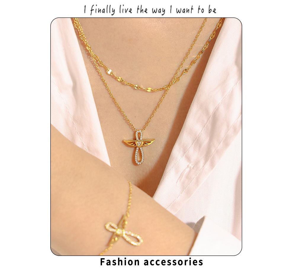 Angel Wings CZ Layered Necklace/Bracelet – Gold-Plated Stainless Steel, Dainty Luxury Jewelry