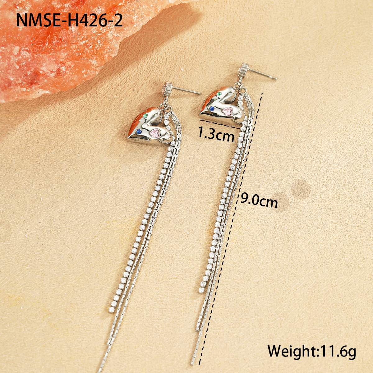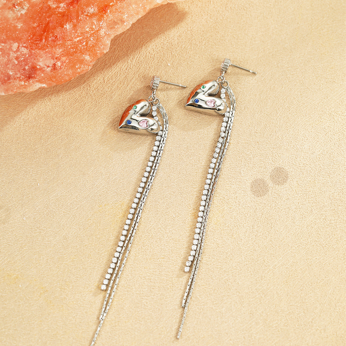 Asymmetric Heart CZ Tassel Earrings – Elegant & Minimalist Design