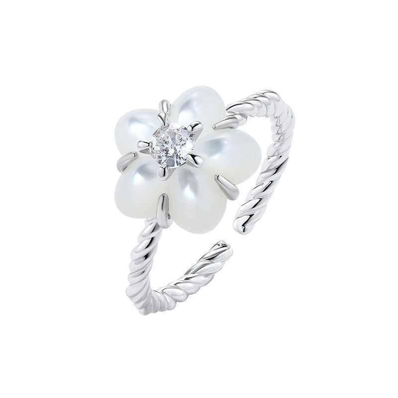 The essence of timeless, floral romance. The Blanche ring features five luminous, freshwater pearl petals that come together around a single, sparkling crystal center.