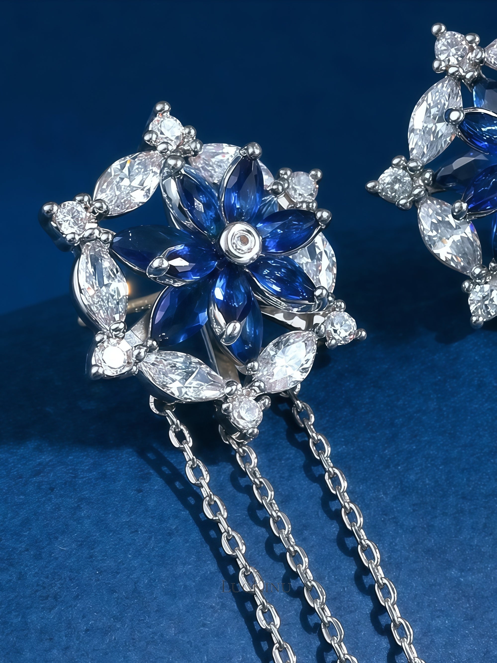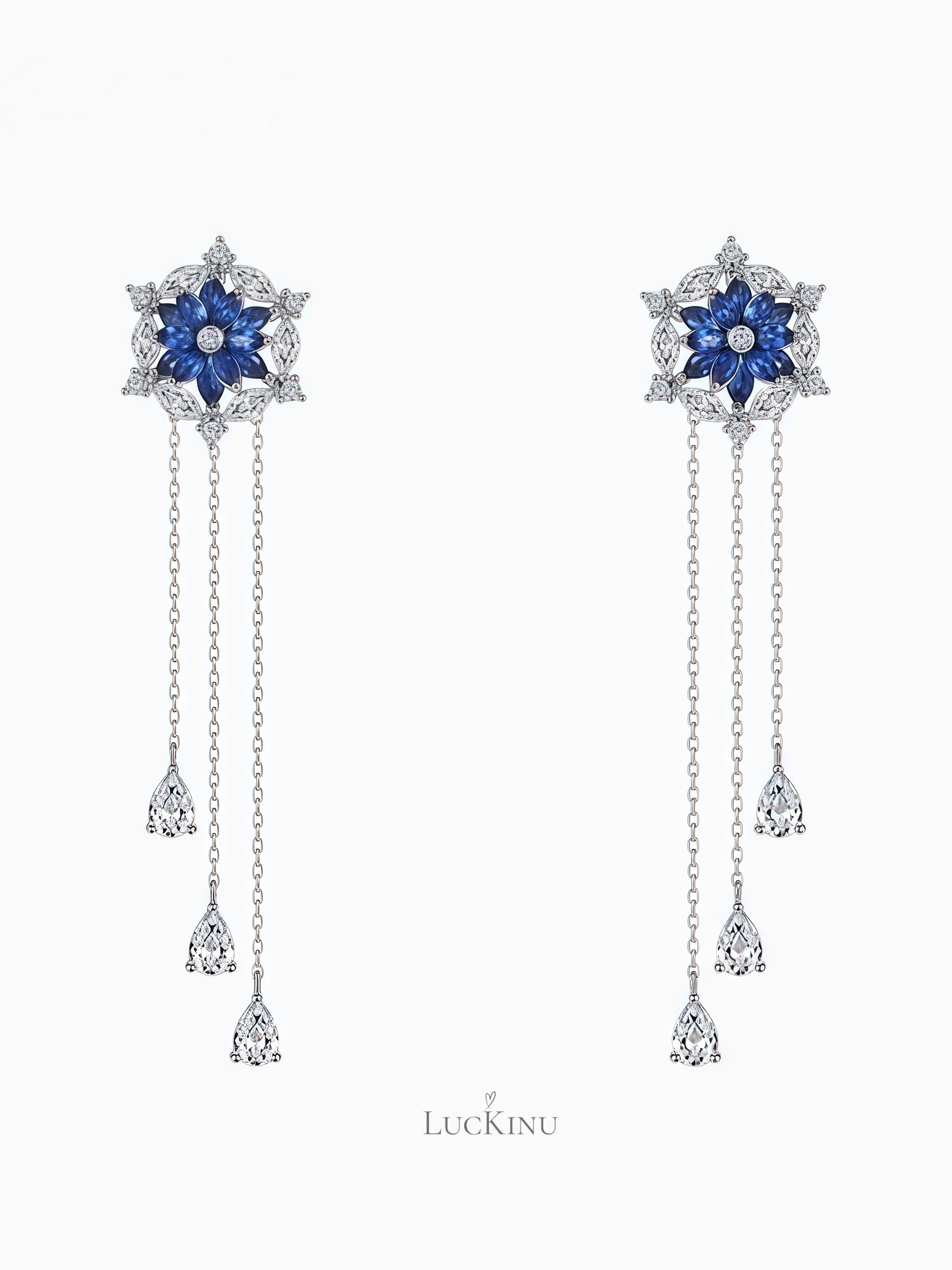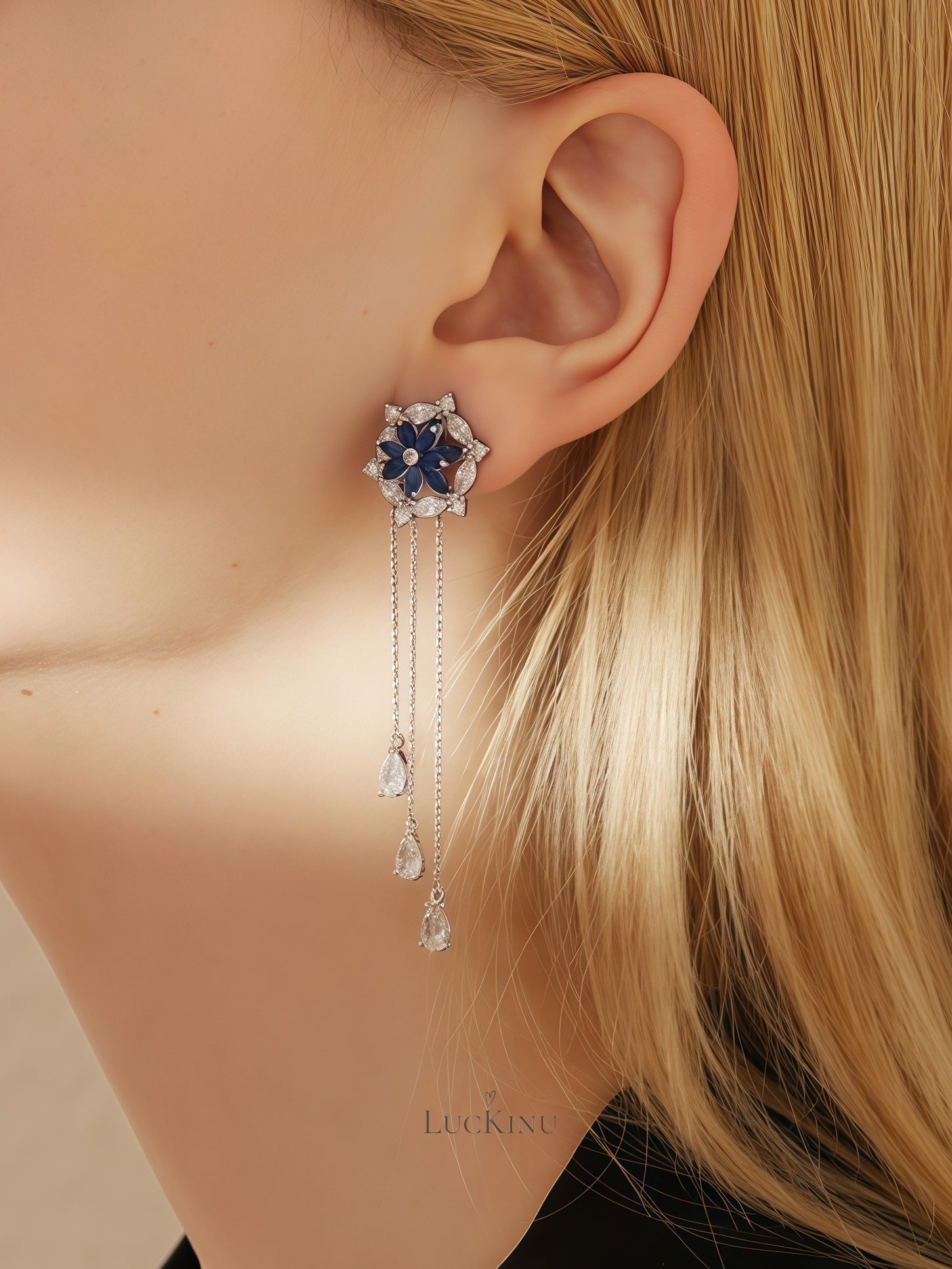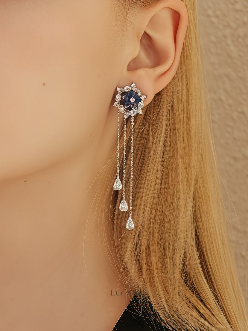 Blue Zircon Lotus Flower Tassel Earrings – High-End Elegant Jewelry