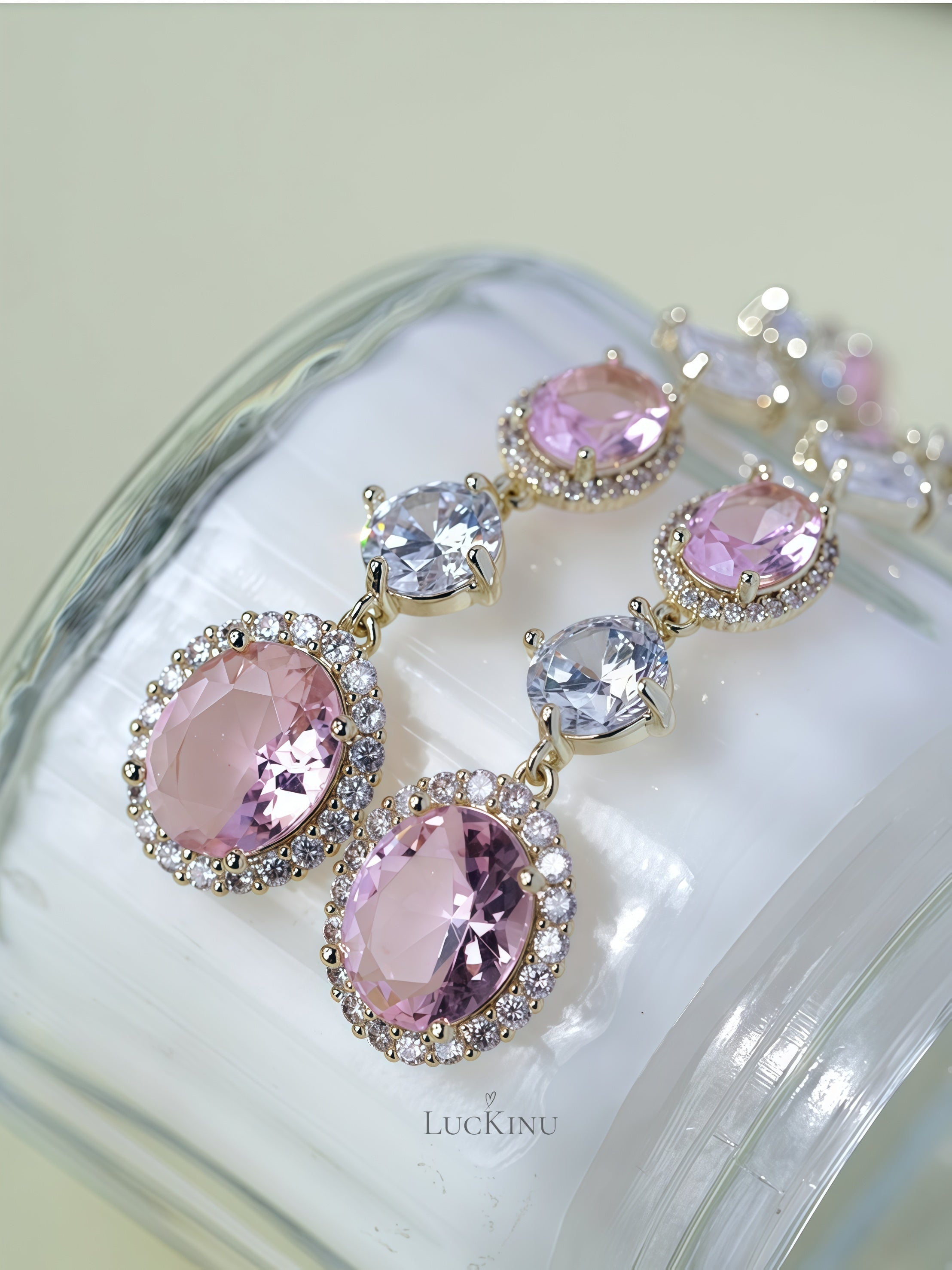 Pink Zircon Tassel Earrings – Elegant Color-Block Statement Jewelry