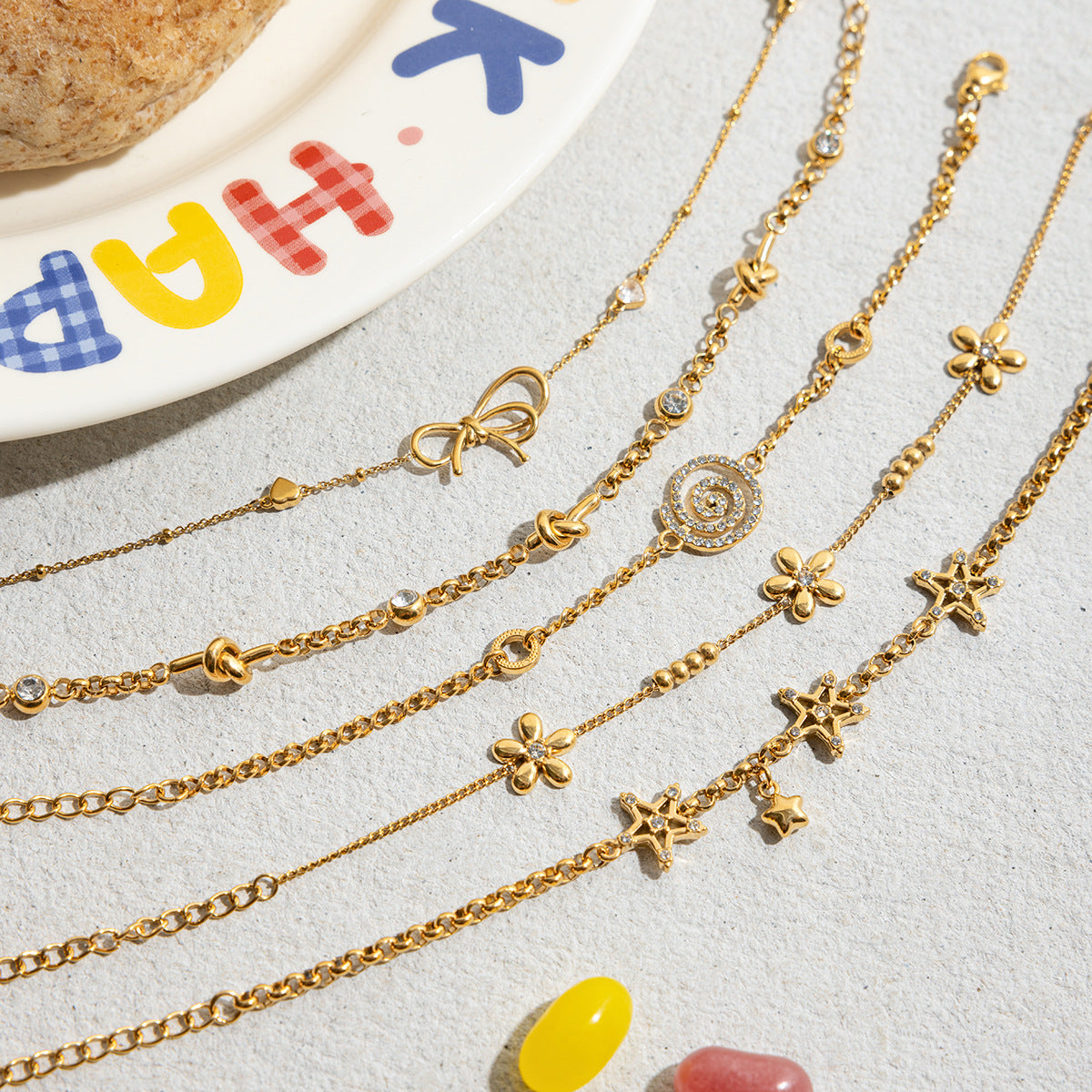 A delicate bow bracelet crafted from titanium steel and adorned with sparkling cubic zirconia. Lightweight and stylish, it’s perfect for adding a subtle, elegant touch to any outfit.