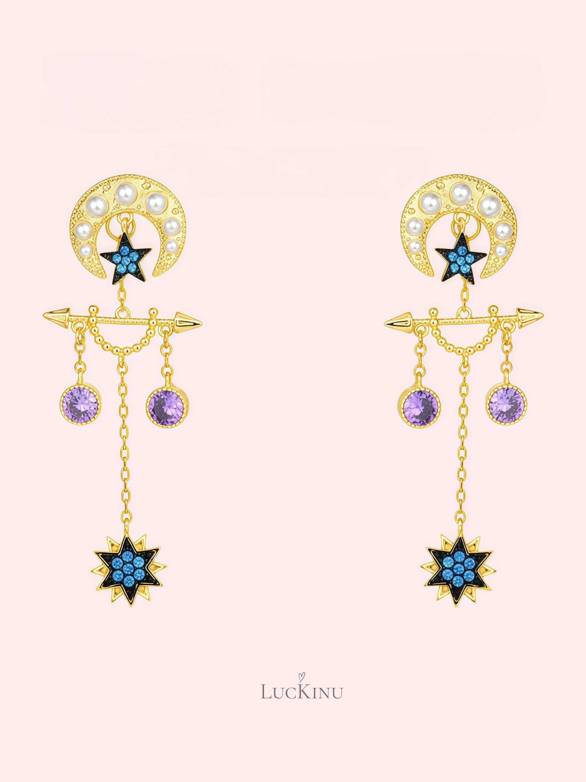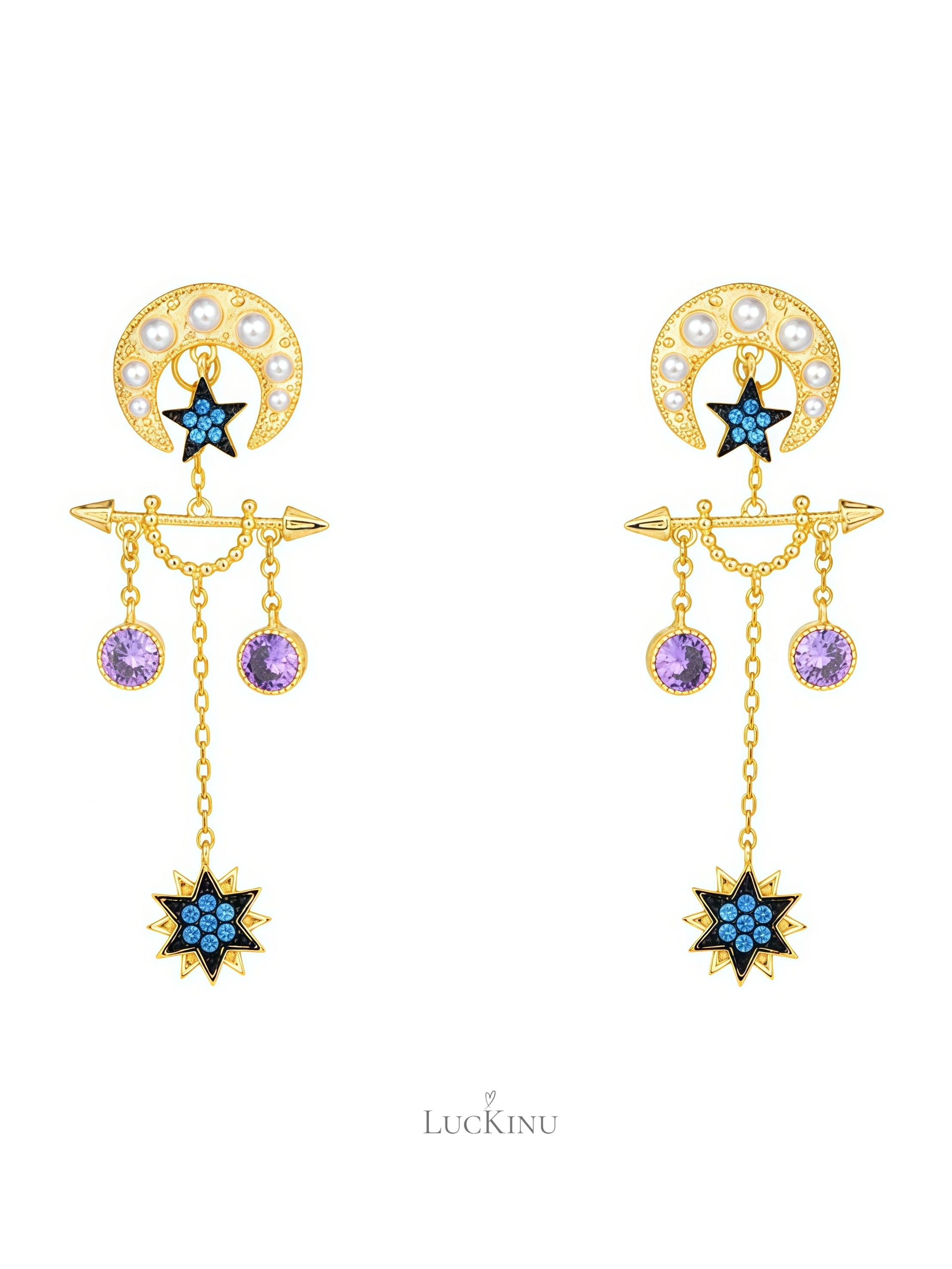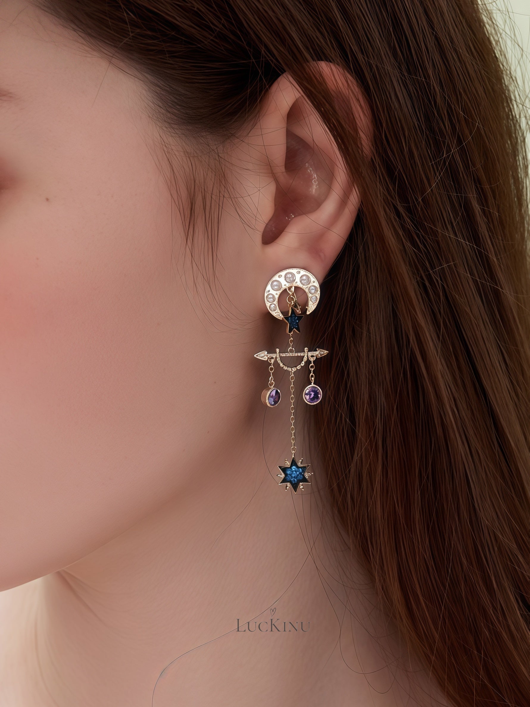 Blue Moon & Star Tassel Earrings – Vintage Romantic Statement Jewelry