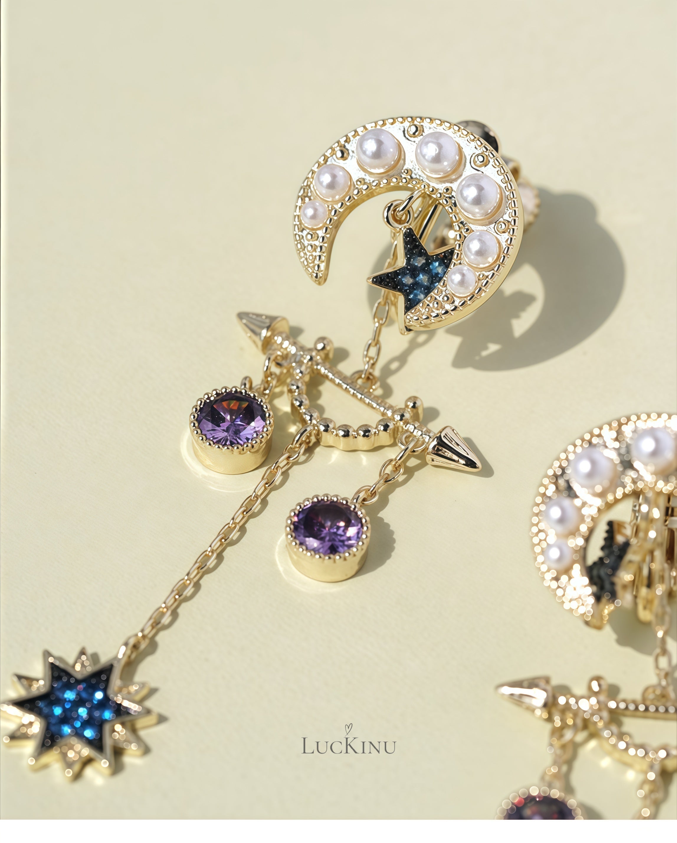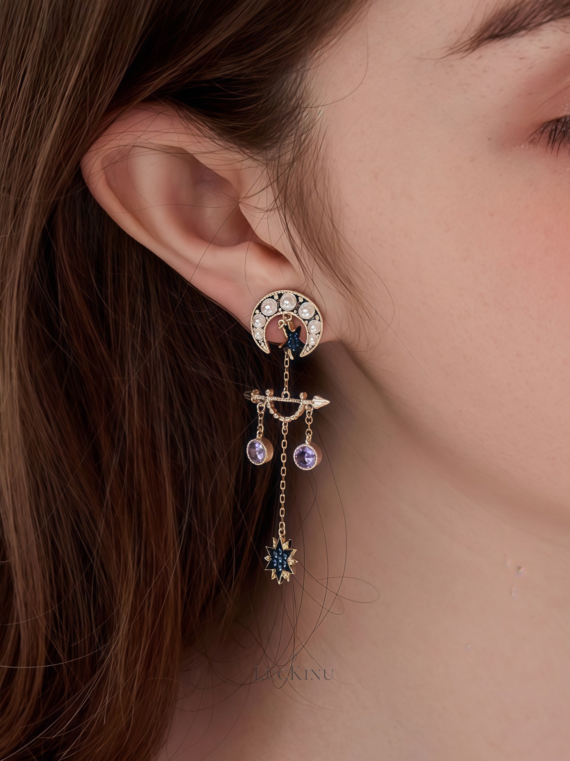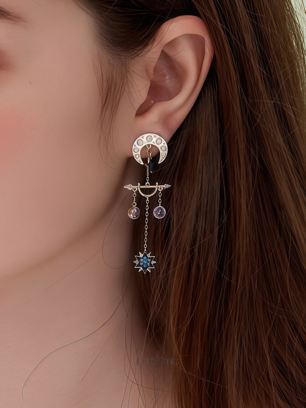 Blue Moon & Star Tassel Earrings – Vintage Romantic Statement Jewelry