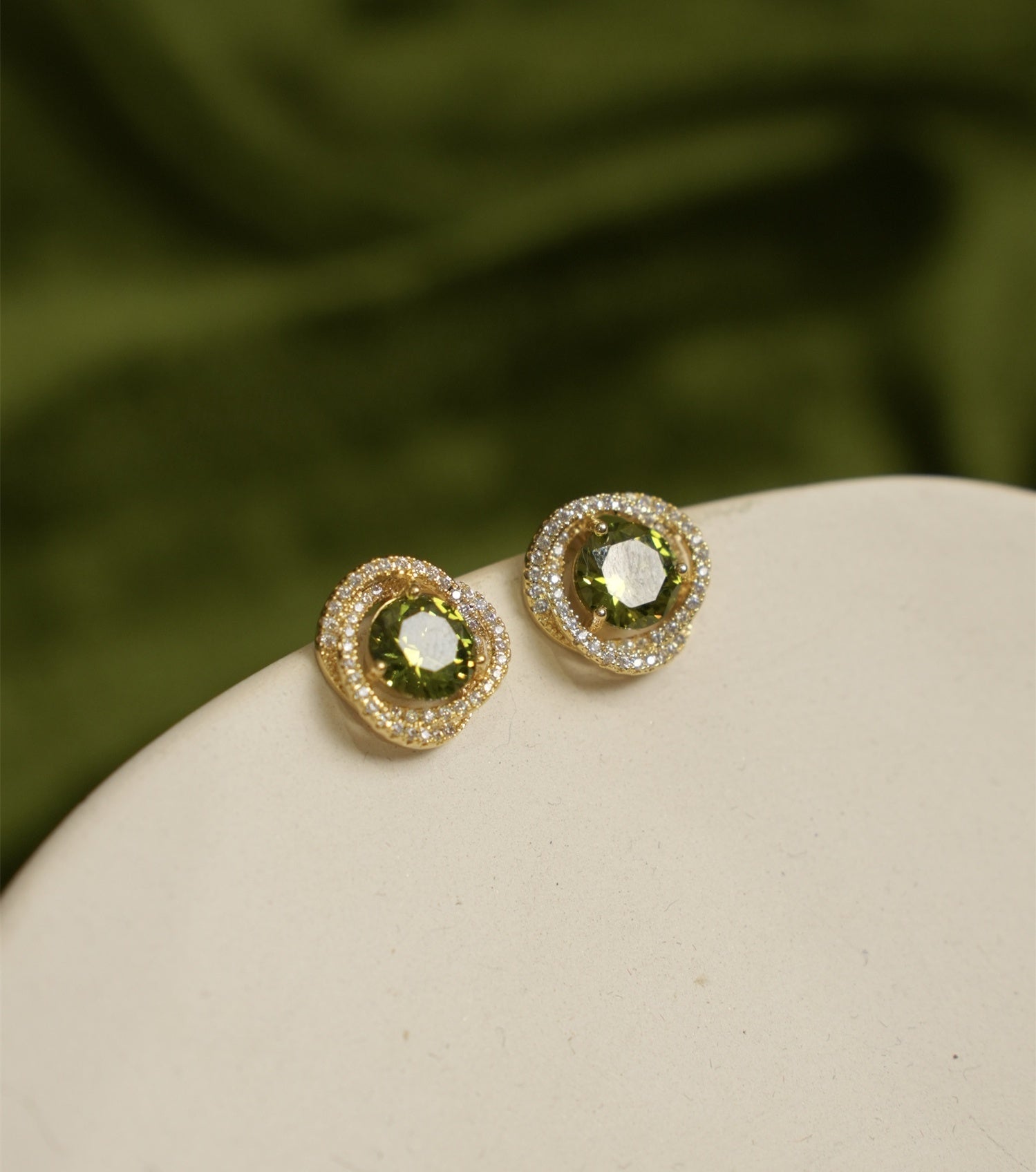 Olive Green Halo Necklace – Double Crystal Frame Elegance