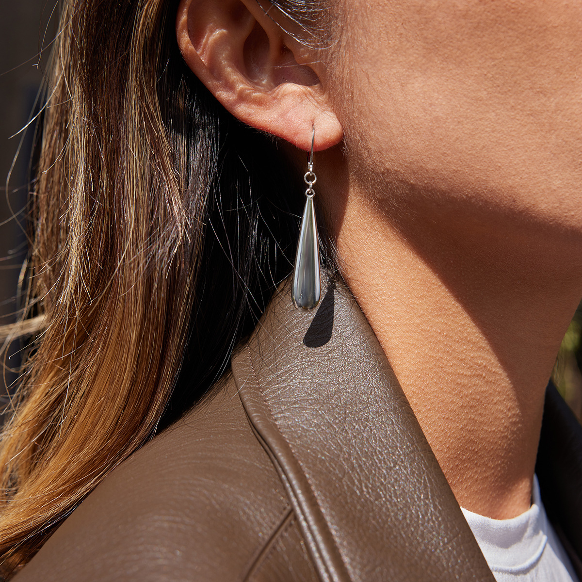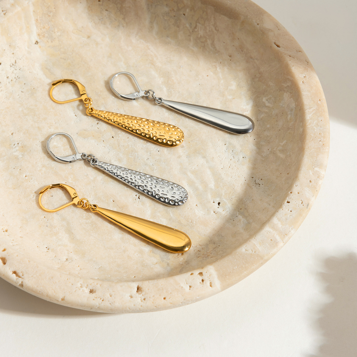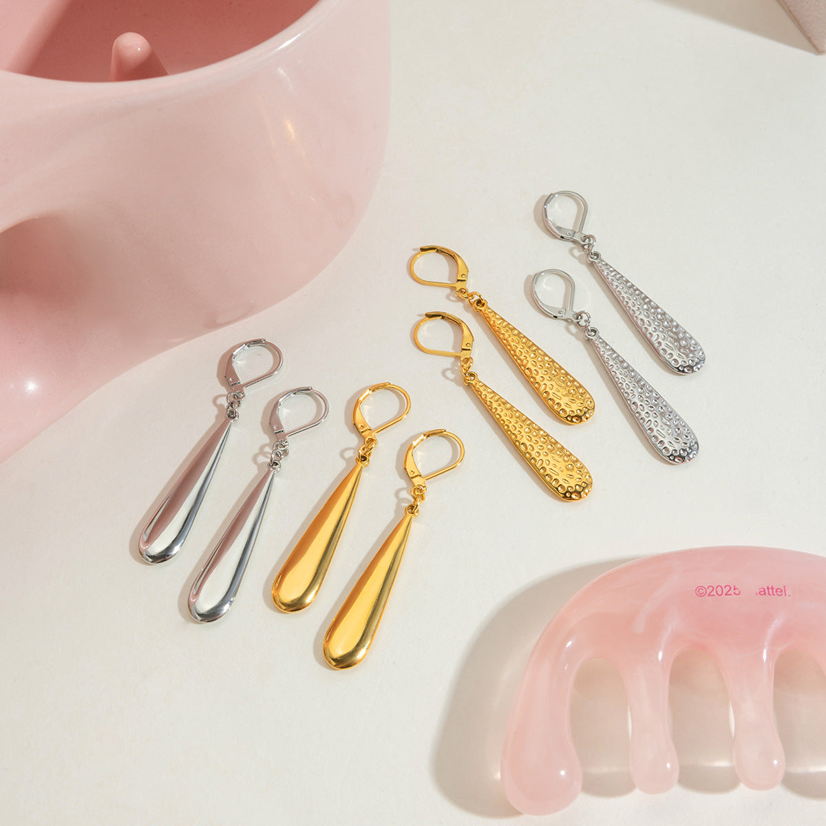 These classic waterdrop earrings feature a bold, sculptural silhouette crafted from durable stainless steel. Their clean, fluid shape adds a touch of modern elegance while staying lightweight and easy to wear. A simple yet striking design that pairs effortlessly with both casual and dressy looks. Perfect for anyone who loves timeless pieces with a contemporary twist.