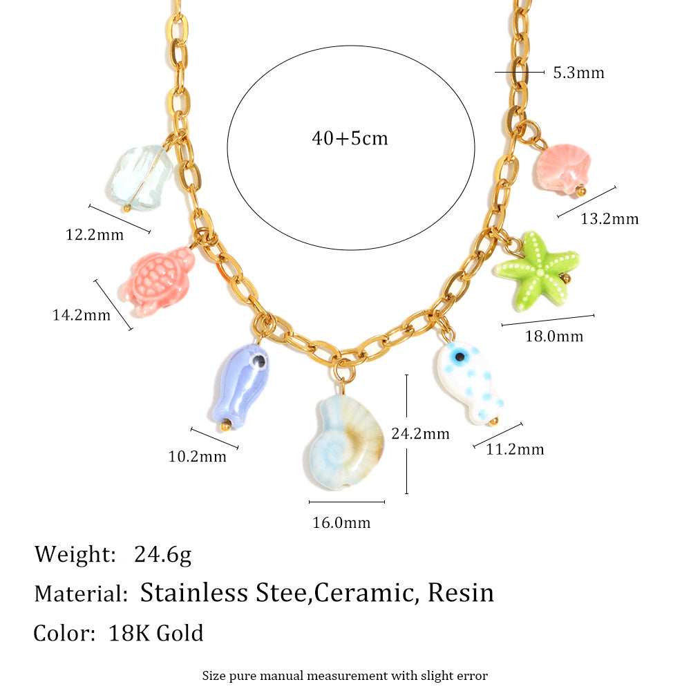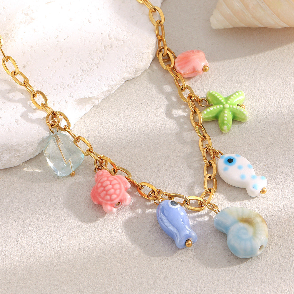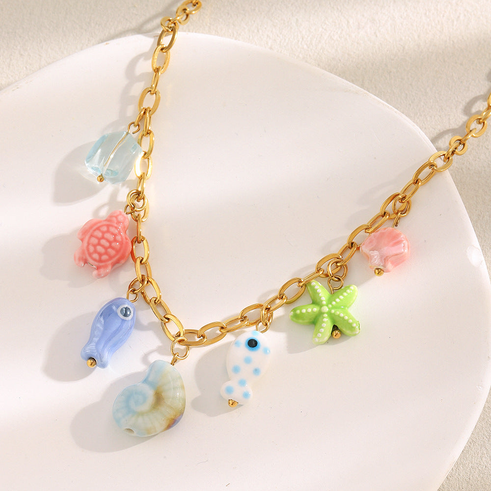 Colorful Ceramic Fish Necklace – 18K Gold Plated Stainless Steel, Handmade Ocean-Inspired Jewelry for Women