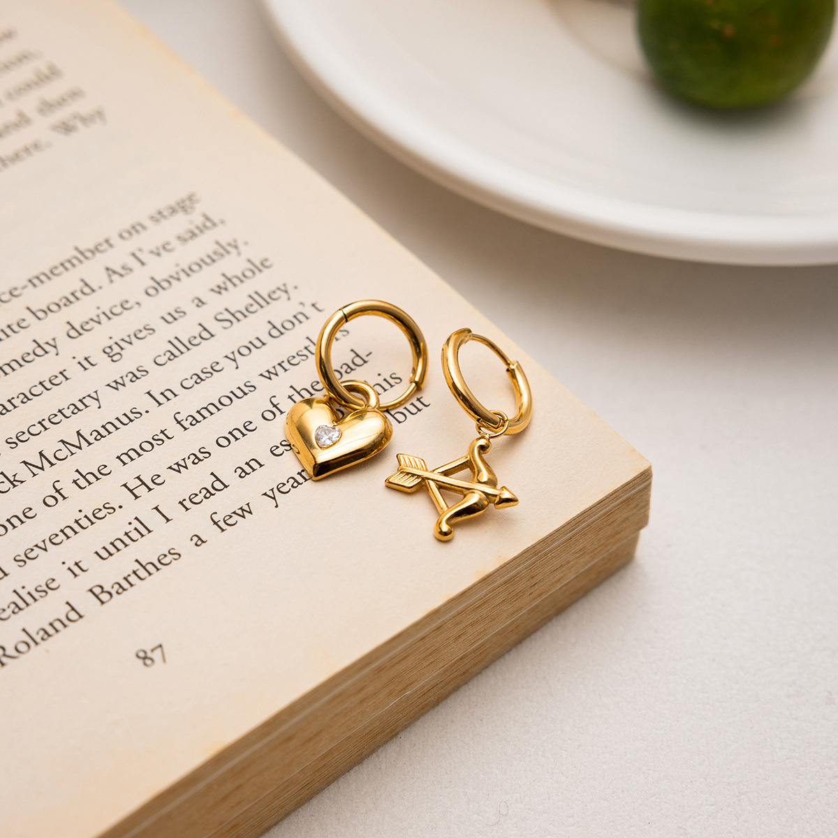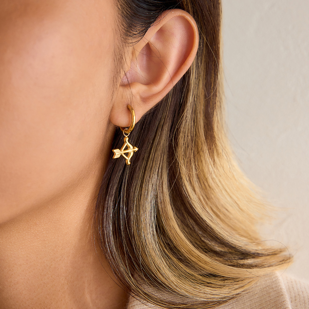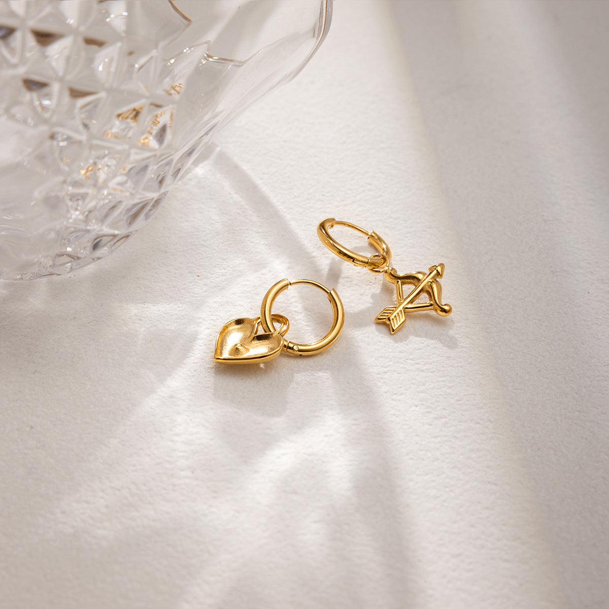 These Cupid-inspired earrings feature a sweet heart-and-arrow pendant crafted in smooth, durable stainless steel. The playful design adds a little sparkle and personality to your look without being over the top.