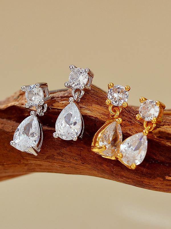 Like little drops of morning dew catching the light. These elegant earrings feature a delicate round crystal that dances into a stunning teardrop gem. They're the perfect touch of classic glam for any occasion.