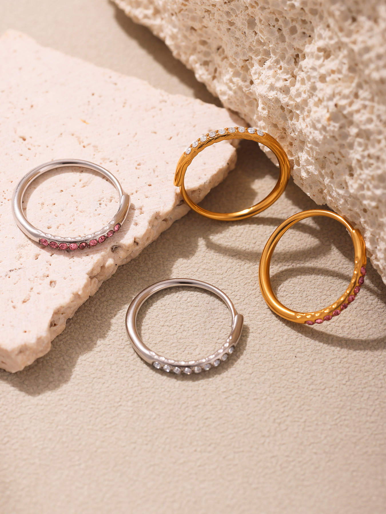 Add a touch of elegance with this delicate stainless steel ring featuring sparkling 5A cubic zirconia. Lightweight, durable, and perfect for stacking, this luxury minimalist ring is ideal for a chic, modern look or gifting.