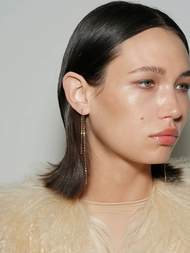 Delicate Layered Gold Thread Chain Earrings – Minimalist Lightweight Dangle Jewelry