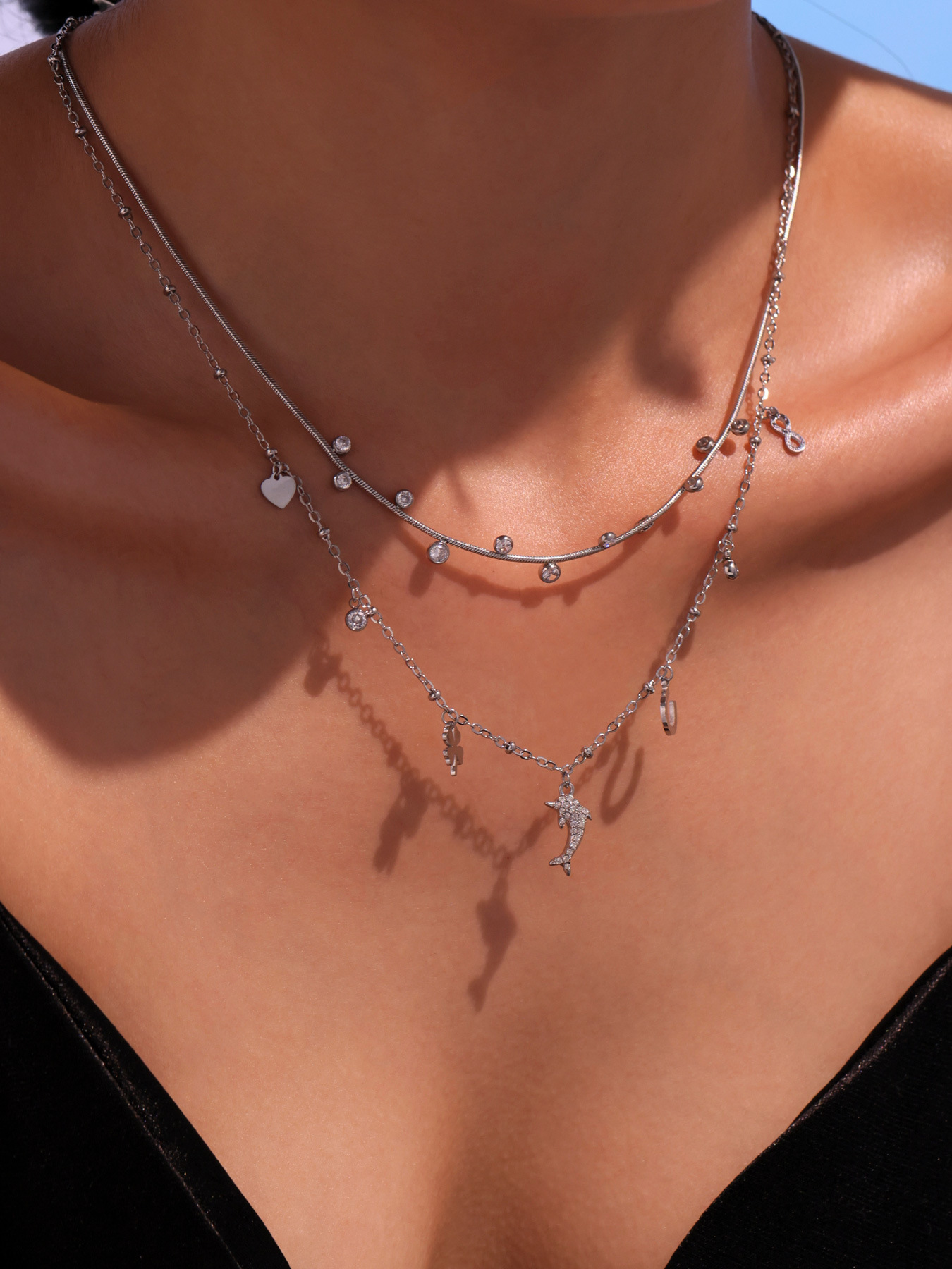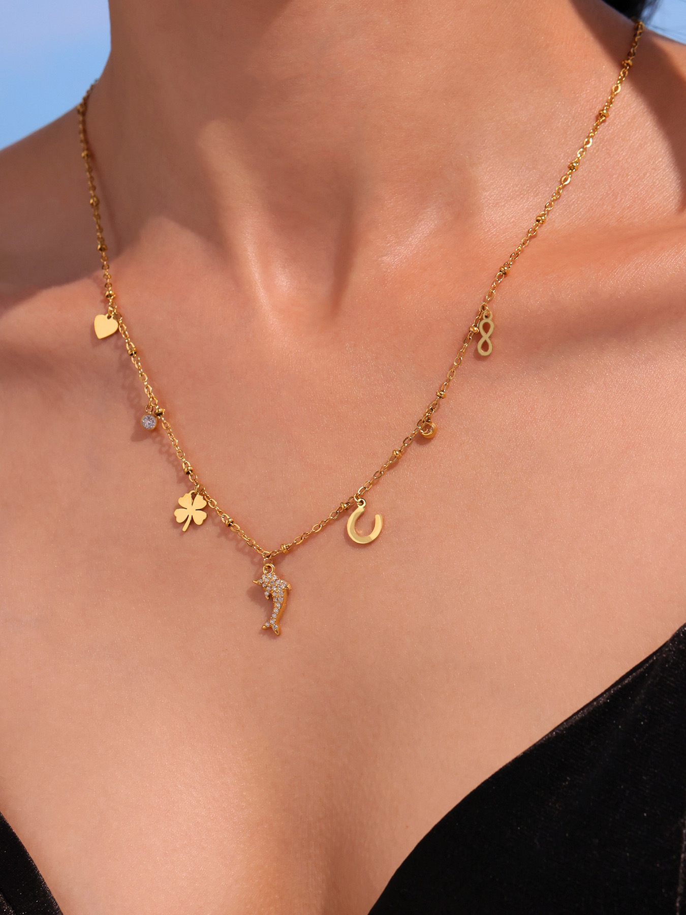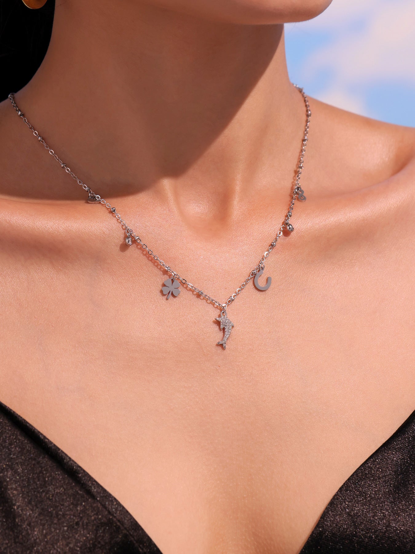 Add a touch of playful elegance with this Dolphin Pendant Necklace, featuring sparkling 5A cubic zirconia and delicate mini charms.