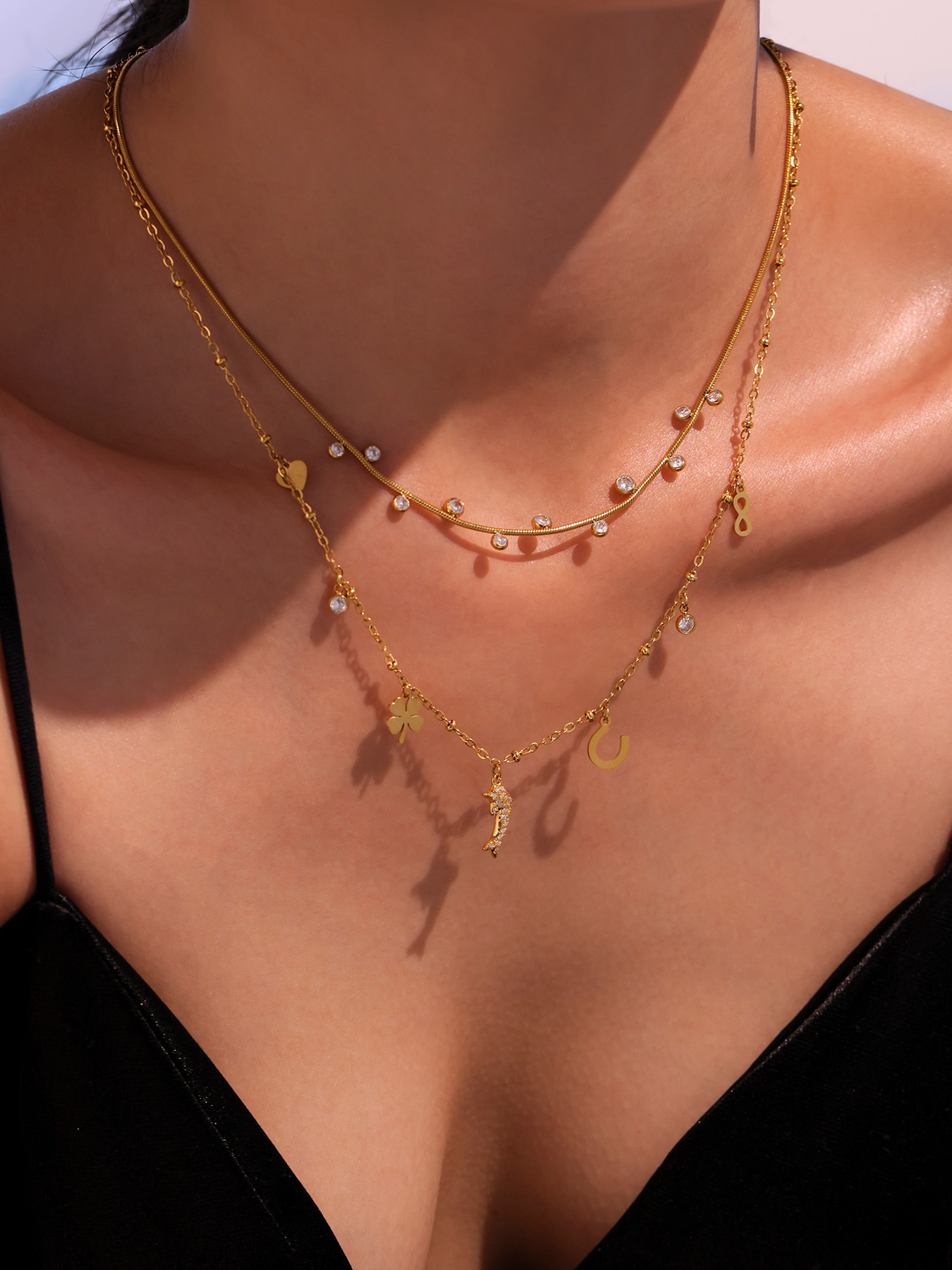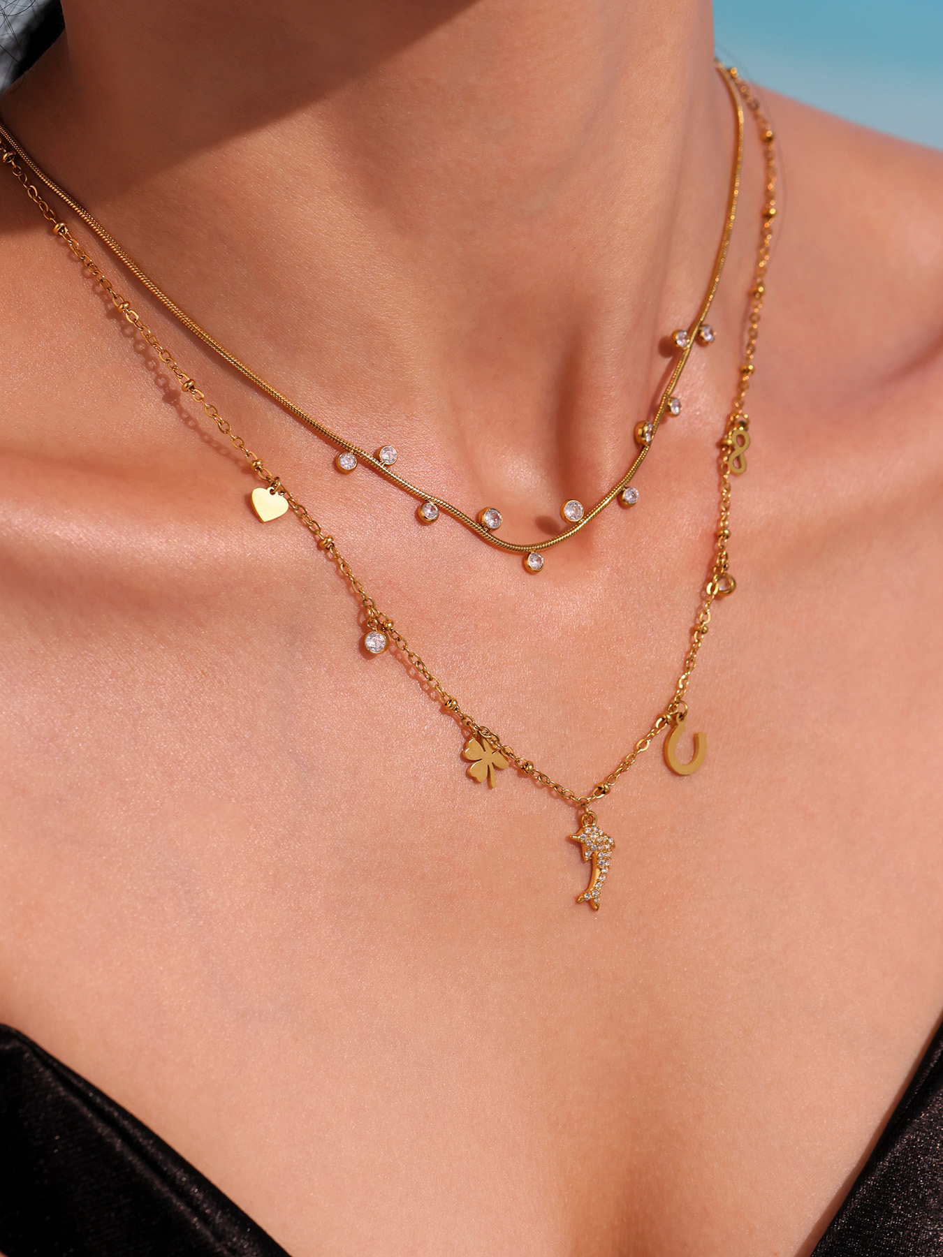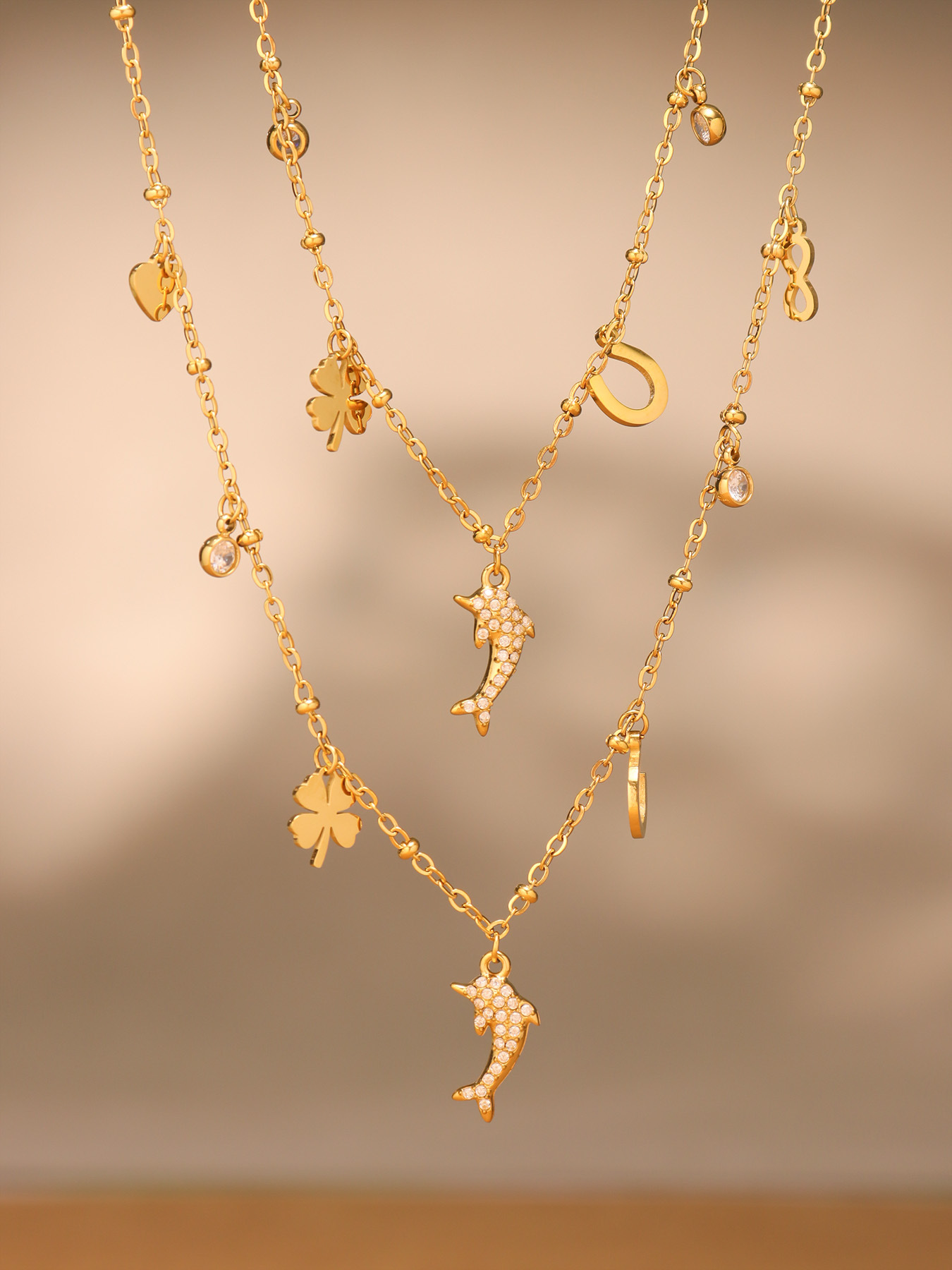 Add a touch of playful elegance with this Dolphin Pendant Necklace, featuring sparkling 5A cubic zirconia and delicate mini charms.