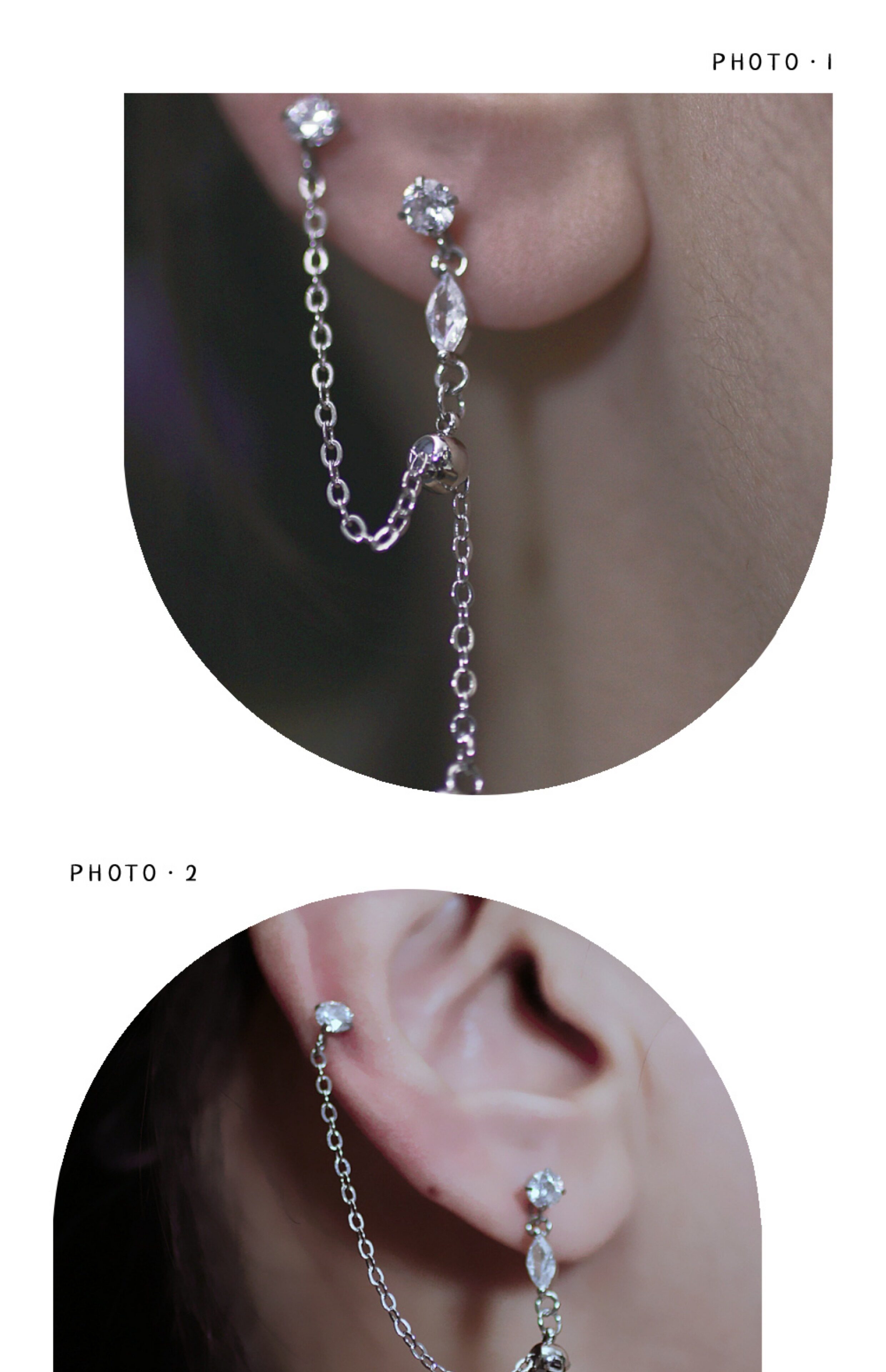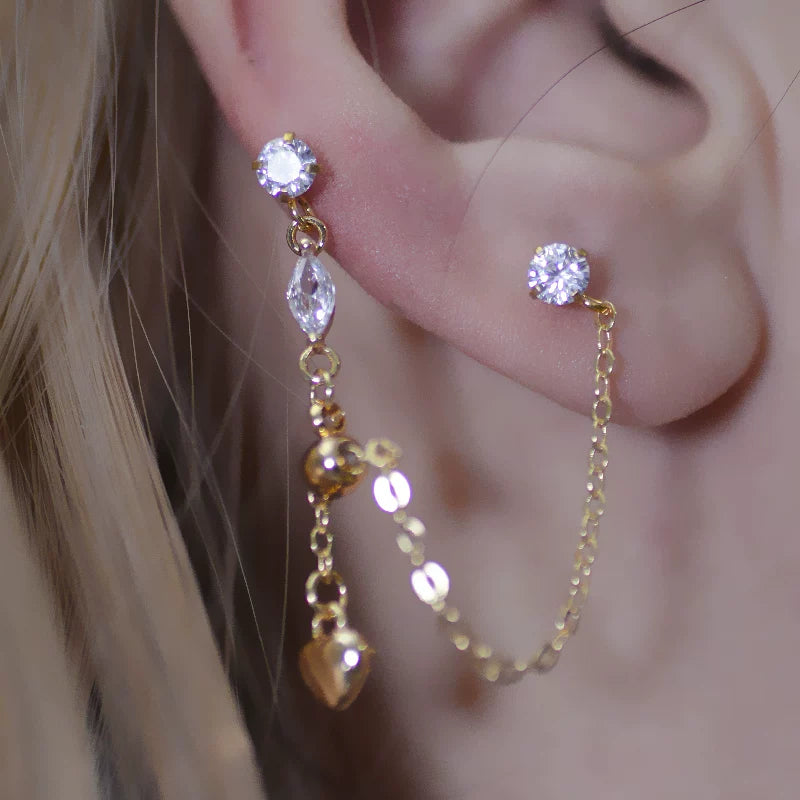 Geometric Teardrop Double Piercing Chain Earring, Designer Inspired Jewelry