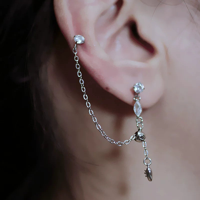 Double Piercing Teardrop Chain Sterling Silver