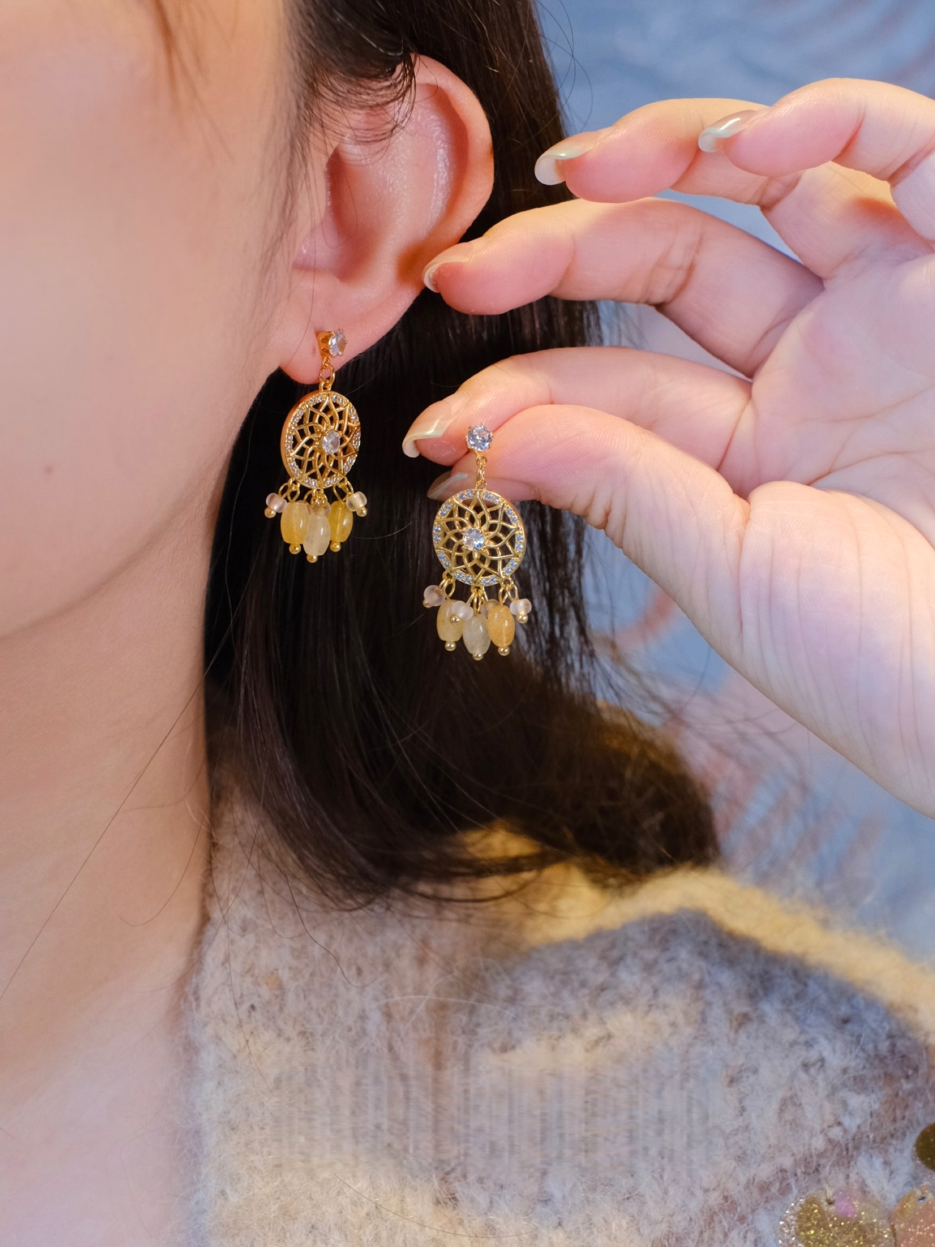 Dreamcatcher Bohemian Gobi Jade Tassel Earrings