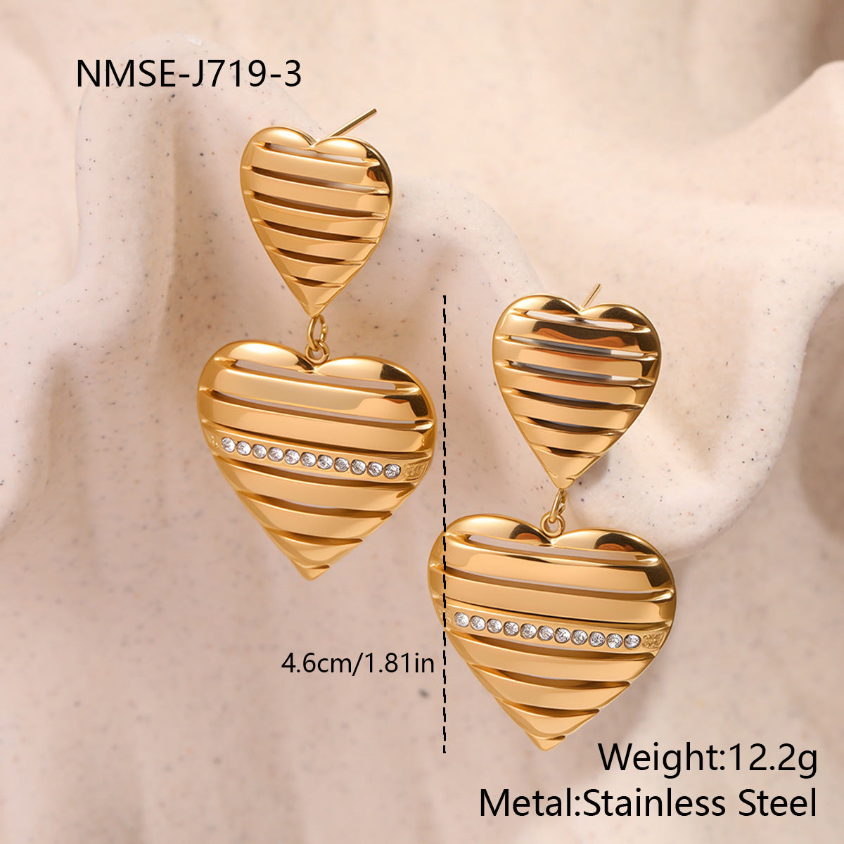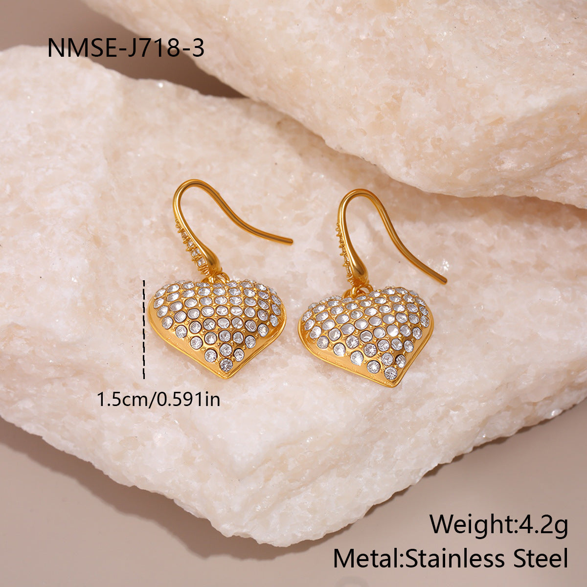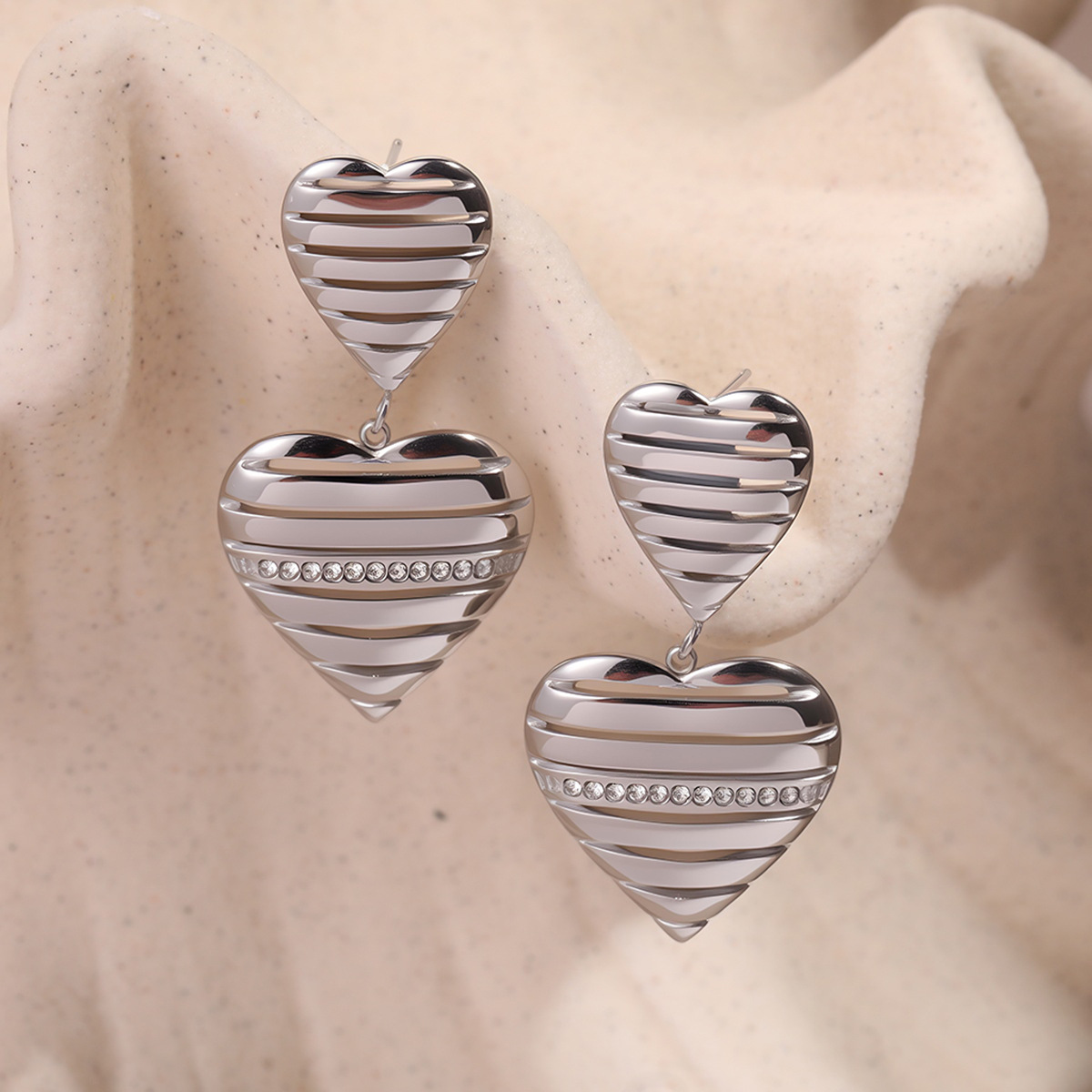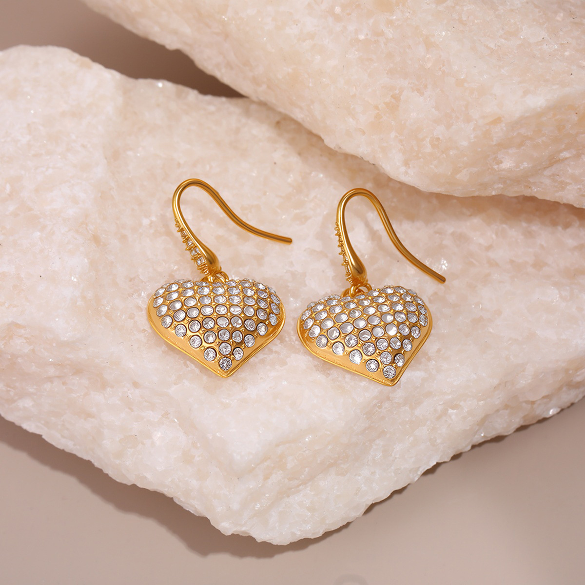 Elegant Heart Drop Earrings – Stainless Steel with Zircon Stones, Minimalist Luxury Jewelry for Women