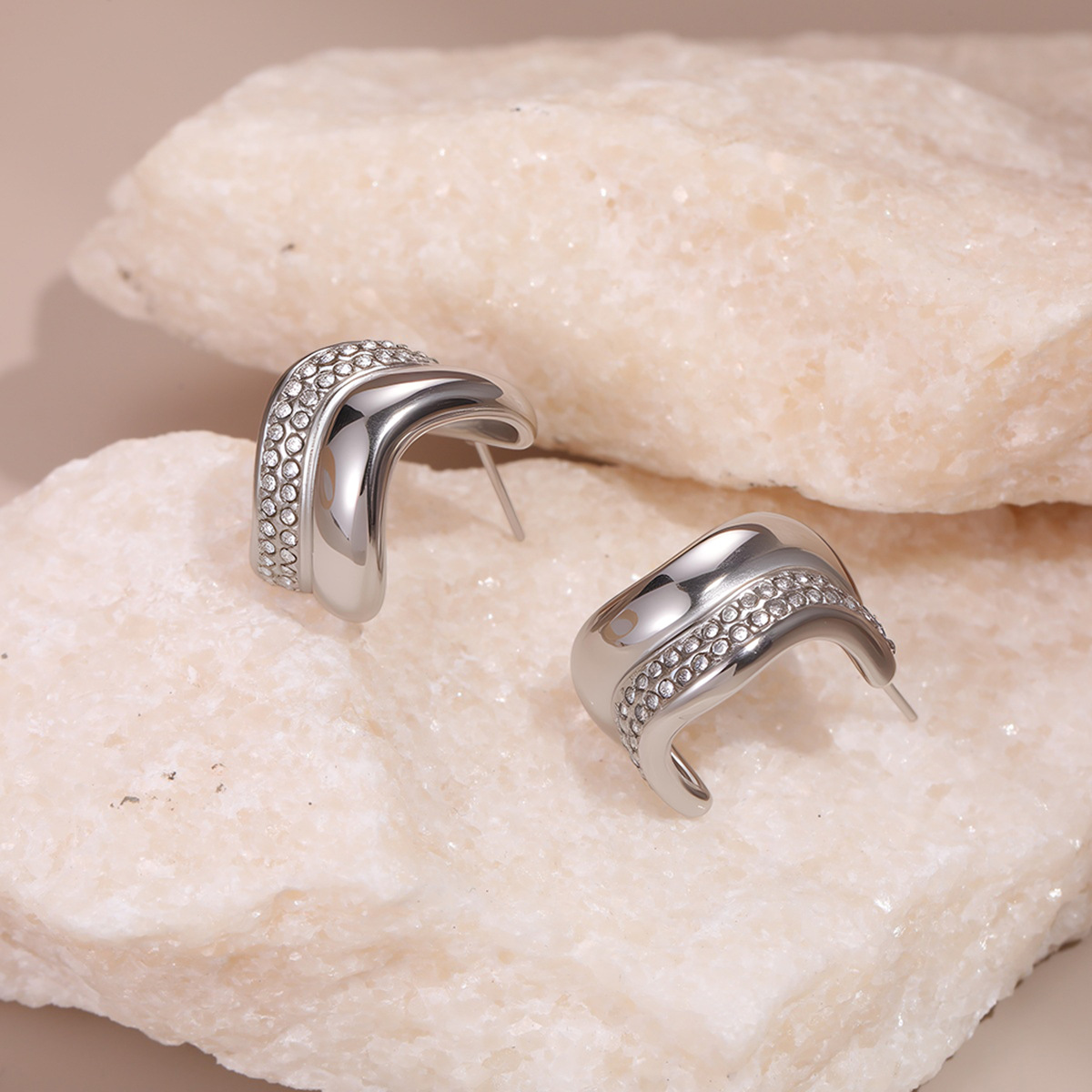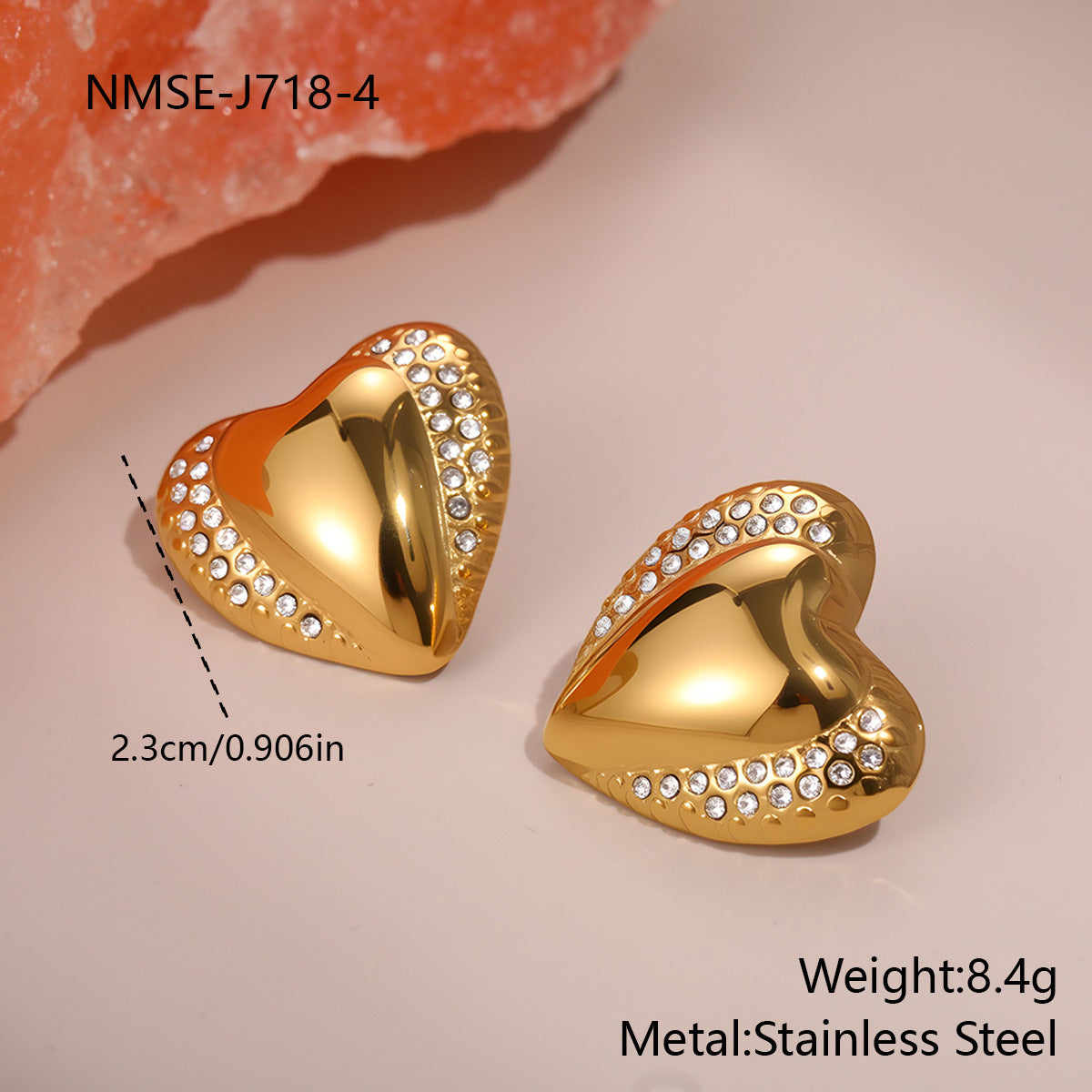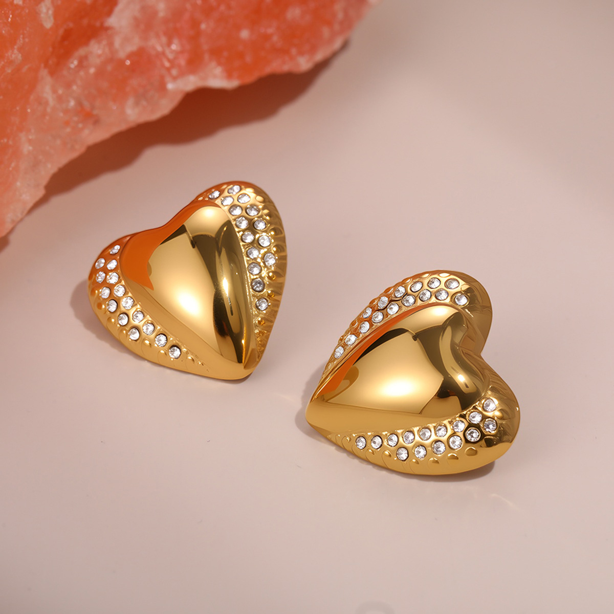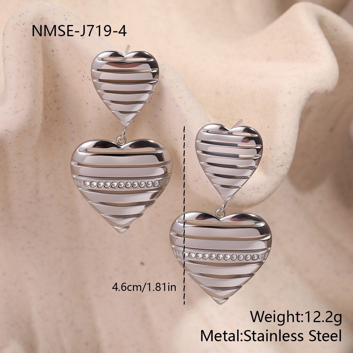 Elegant Heart Drop Earrings – Stainless Steel with Zircon Stones, Minimalist Luxury Jewelry for Women