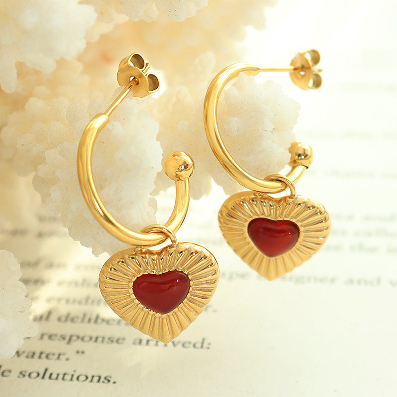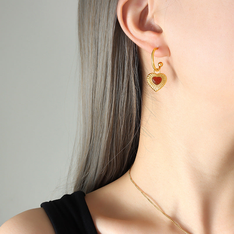 Embrace classic elegance with this red agate heart jewelry set. Designed with a refined, feminine touch, each piece features a rich red gemstone framed in 18K gold-plated stainless steel — waterproof, tarnish-free, and made to last. Perfect for adding a pop of color to your everyday look or gifting someone special with timeless sophistication.