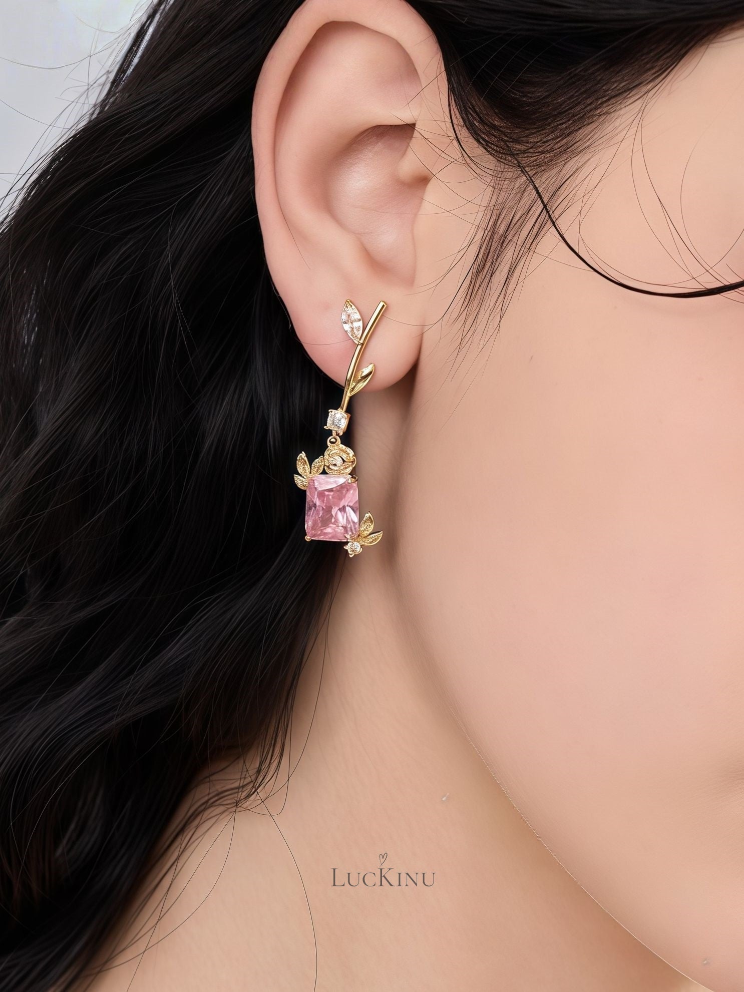 Pink Square Zircon Vine Earrings – Romantic Fairycore Jewelry