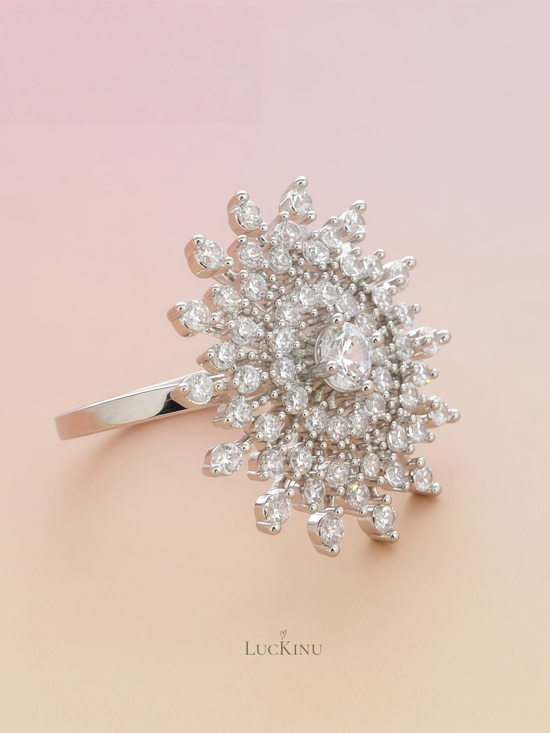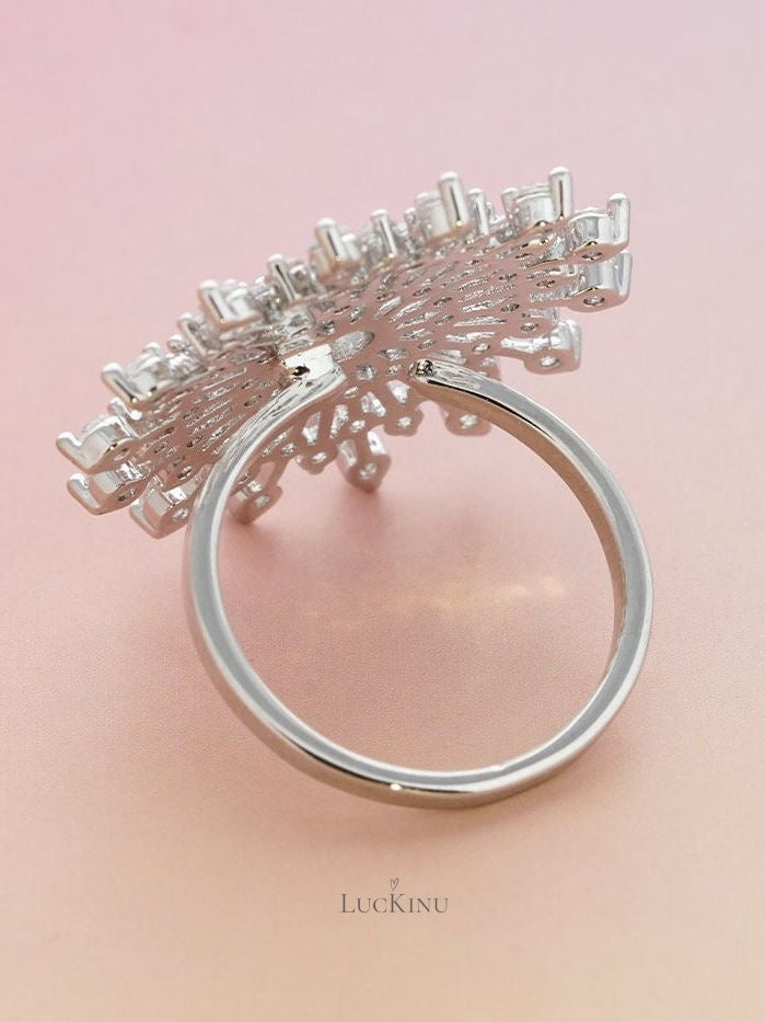 Pavé Zircon Snowflake Ring – Adjustable Statement Jewelry