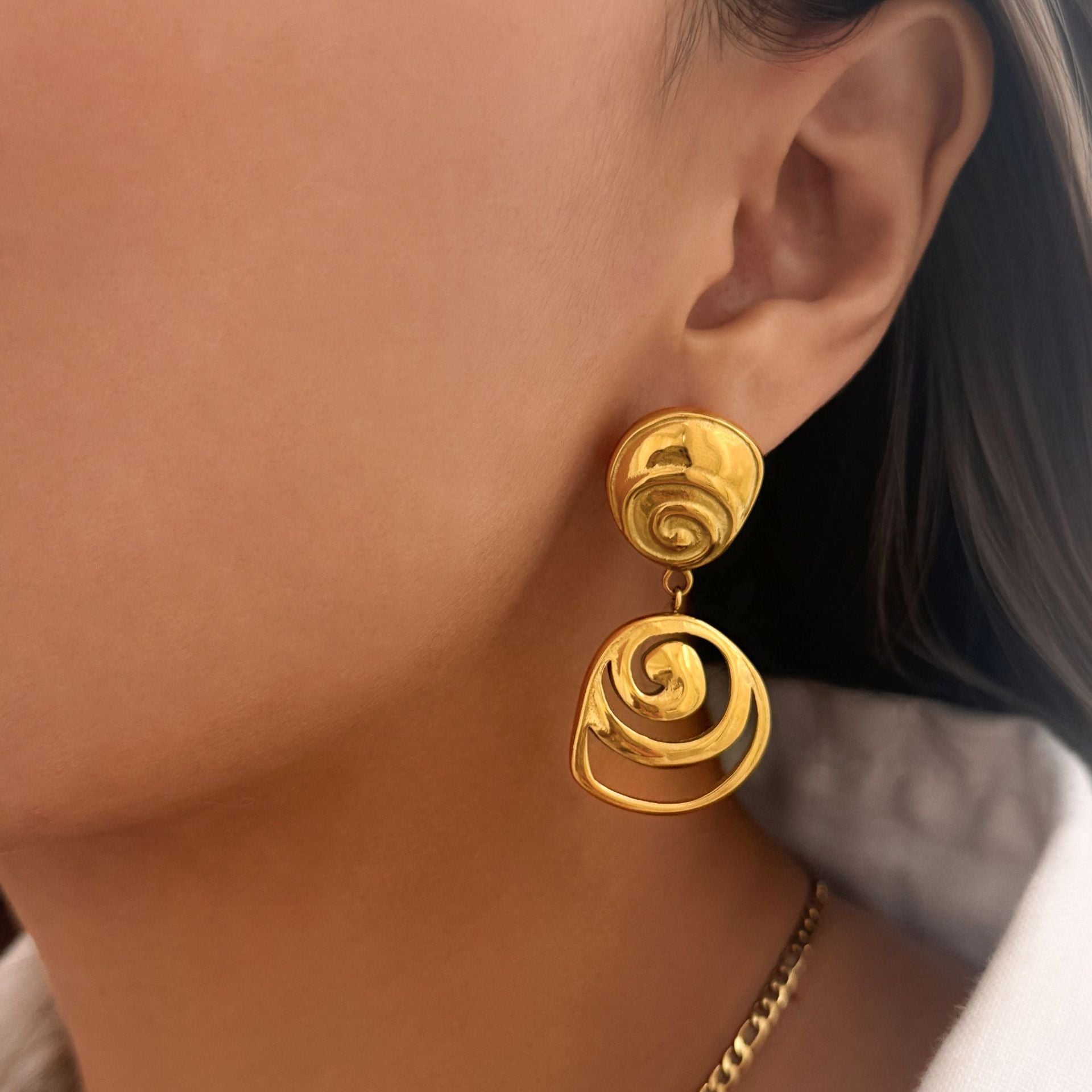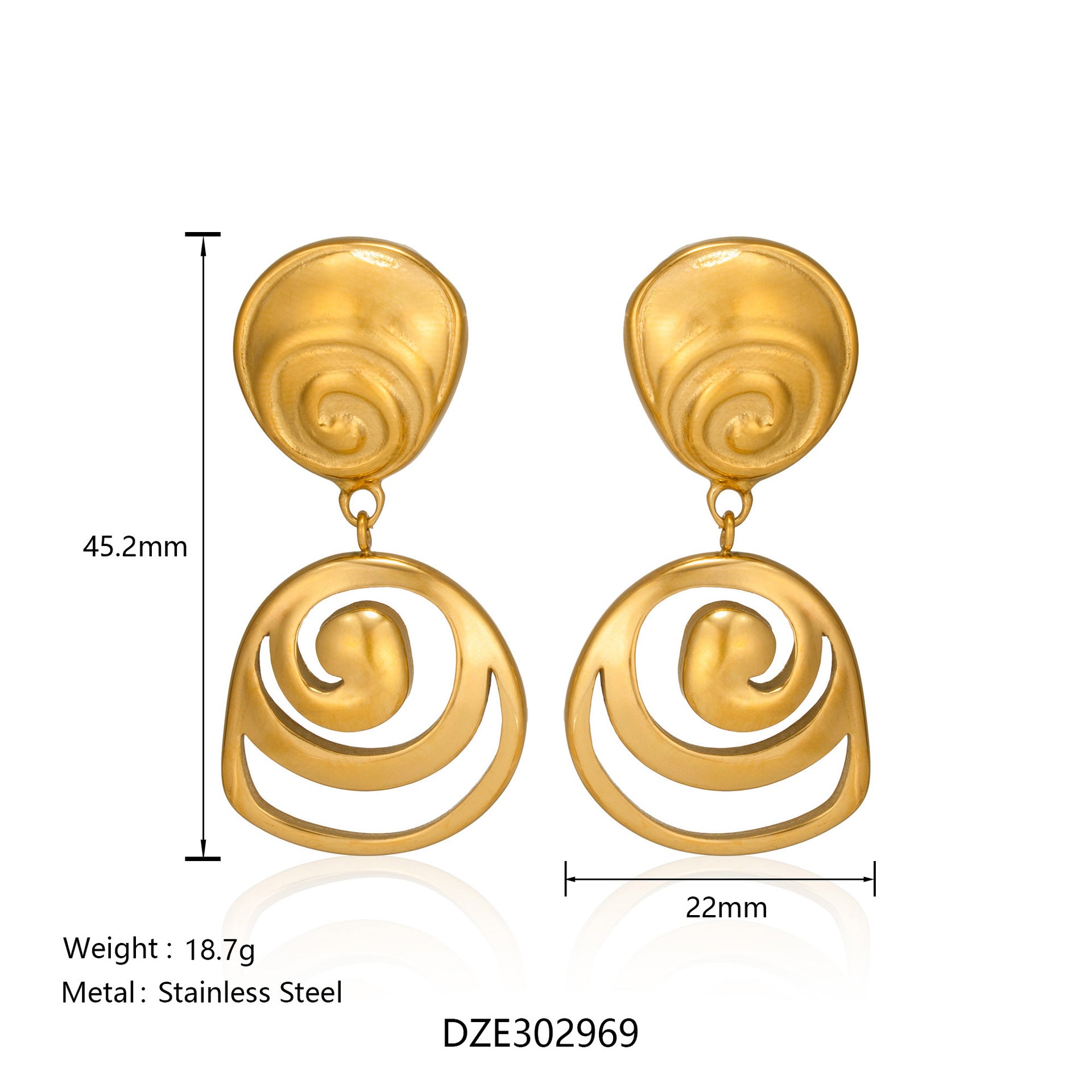 Elevate your autumn and winter wardrobe with these 18K gold stainless steel earrings featuring a geometric hollow pendant design. Lightweight, durable, and hypoallergenic, these statement earrings add a touch of sophistication to any outfit. Perfect for fashion-forward individuals seeking high-end, minimalist jewelry for everyday wear or special occasions.