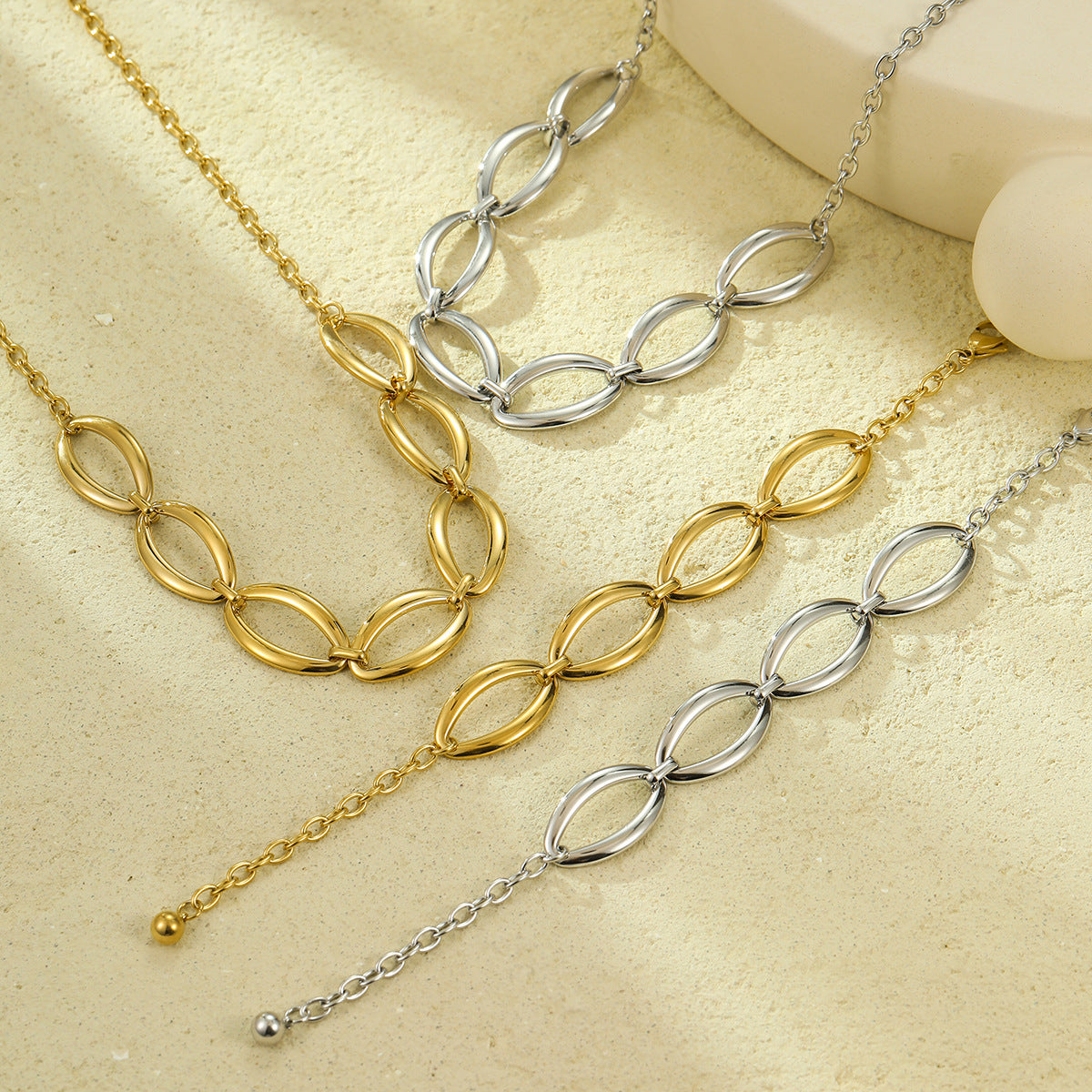 Geometric Oval & Circle Necklace & Bracelet – Minimalist, Elegant Design