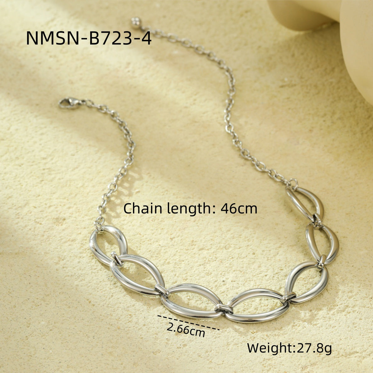 A sleek geometric necklace and bracelet set featuring oval and circular shapes. Lightweight, stylish, and perfect for adding a subtle, refined touch to any outfit.