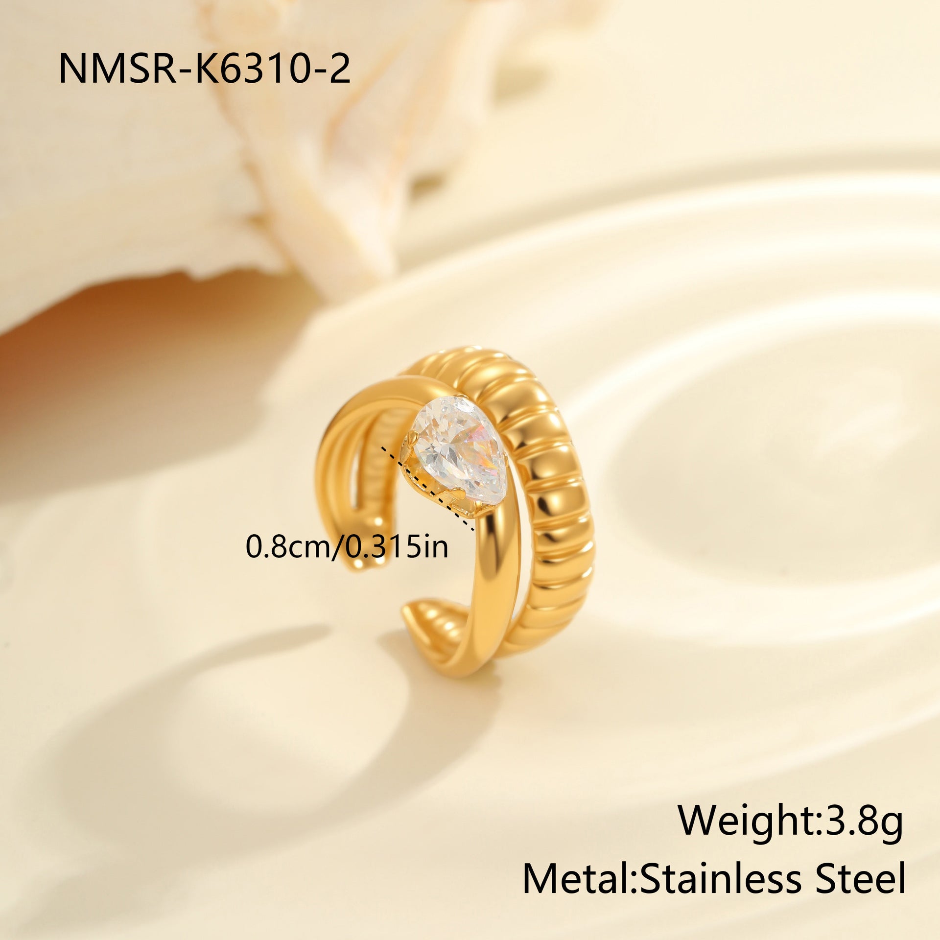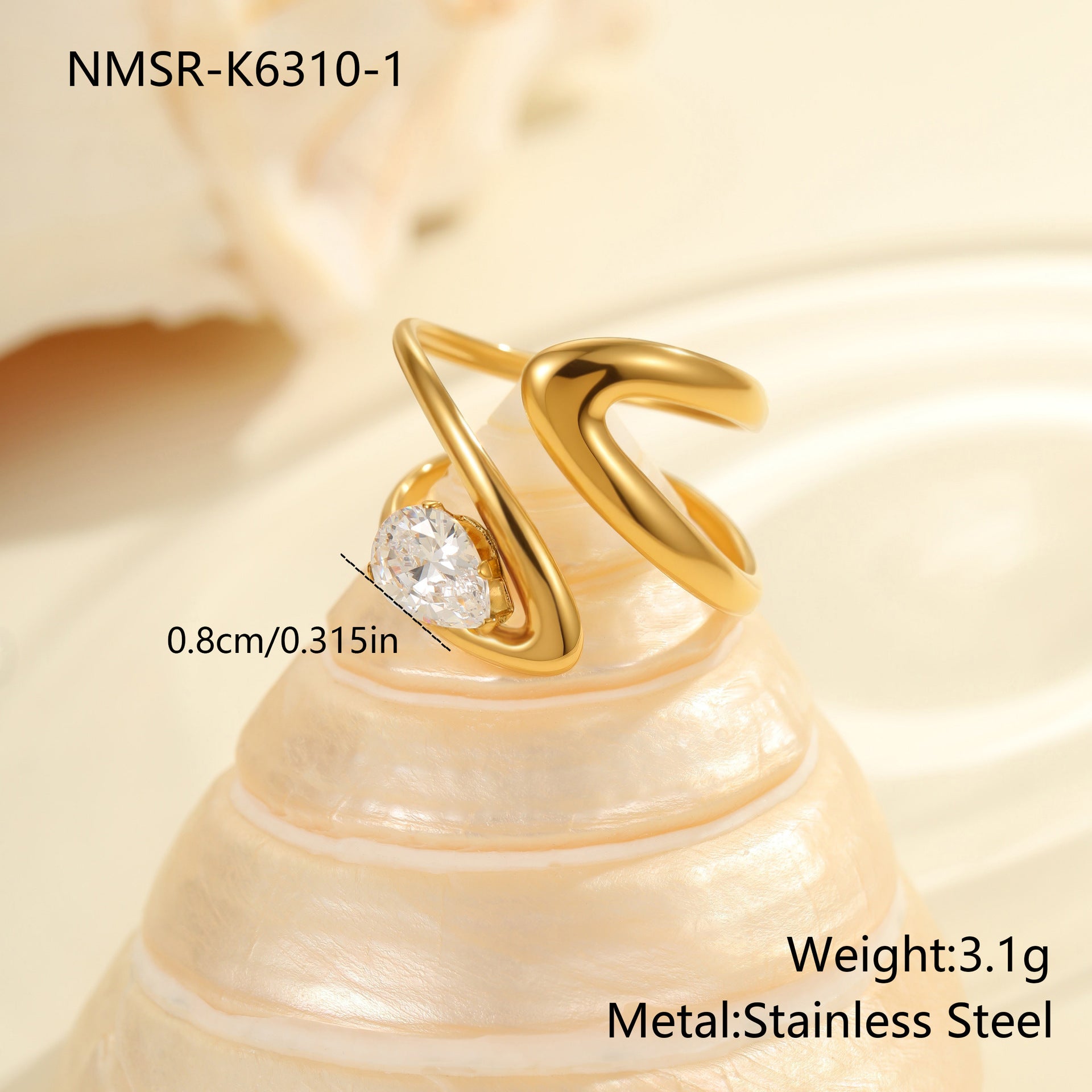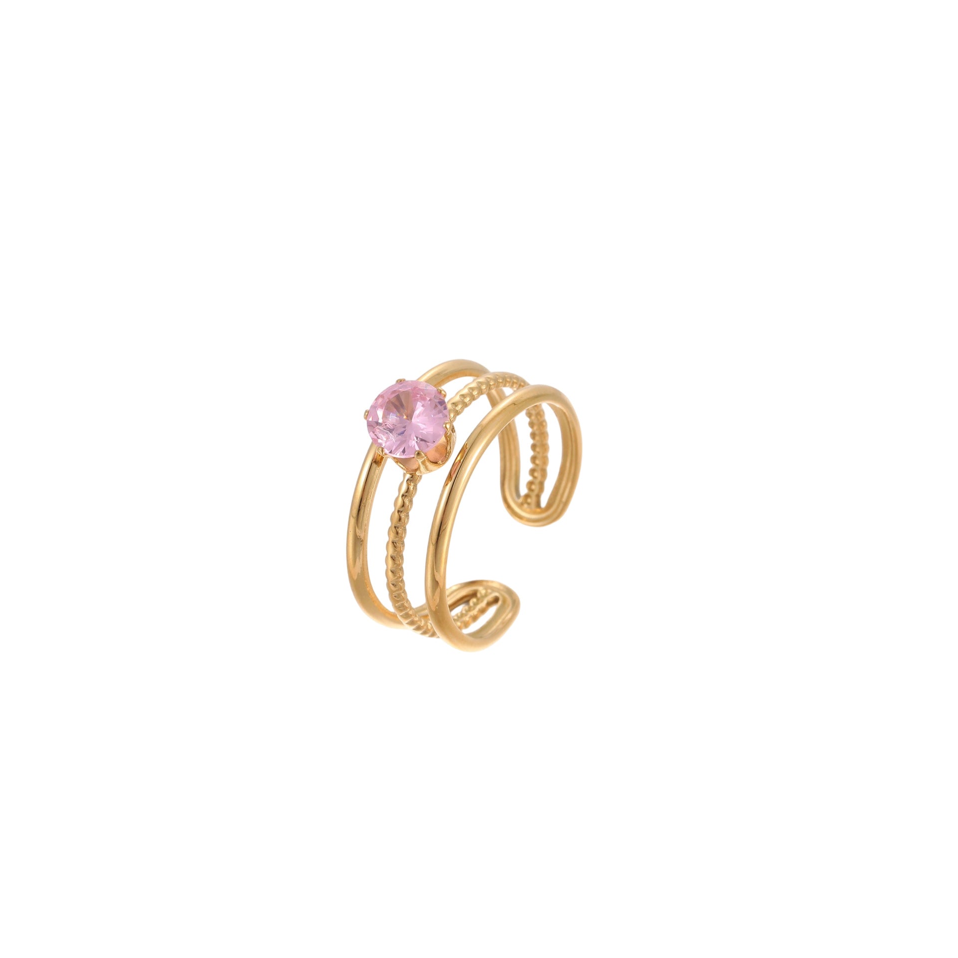 sleek gold-plated ring adorned with sparkling cubic zirconia, crafted from stainless steel. Lightweight and refined, perfect for adding a subtle, luxurious touch to any outfit.