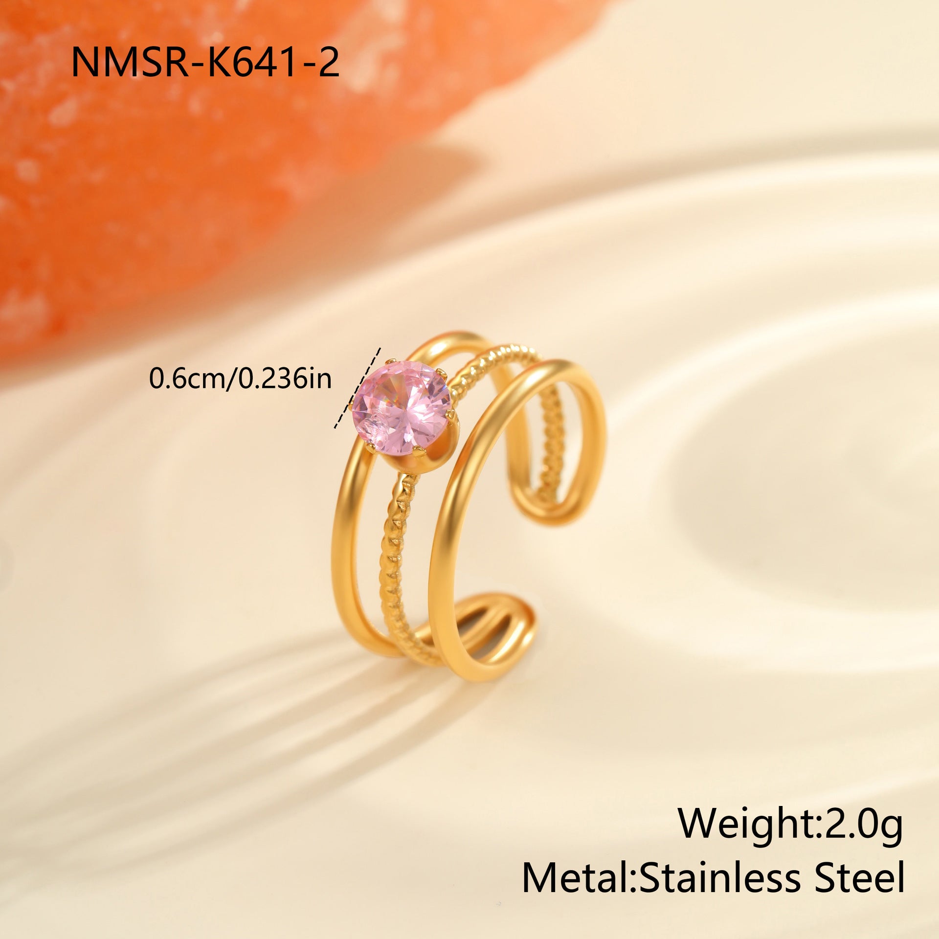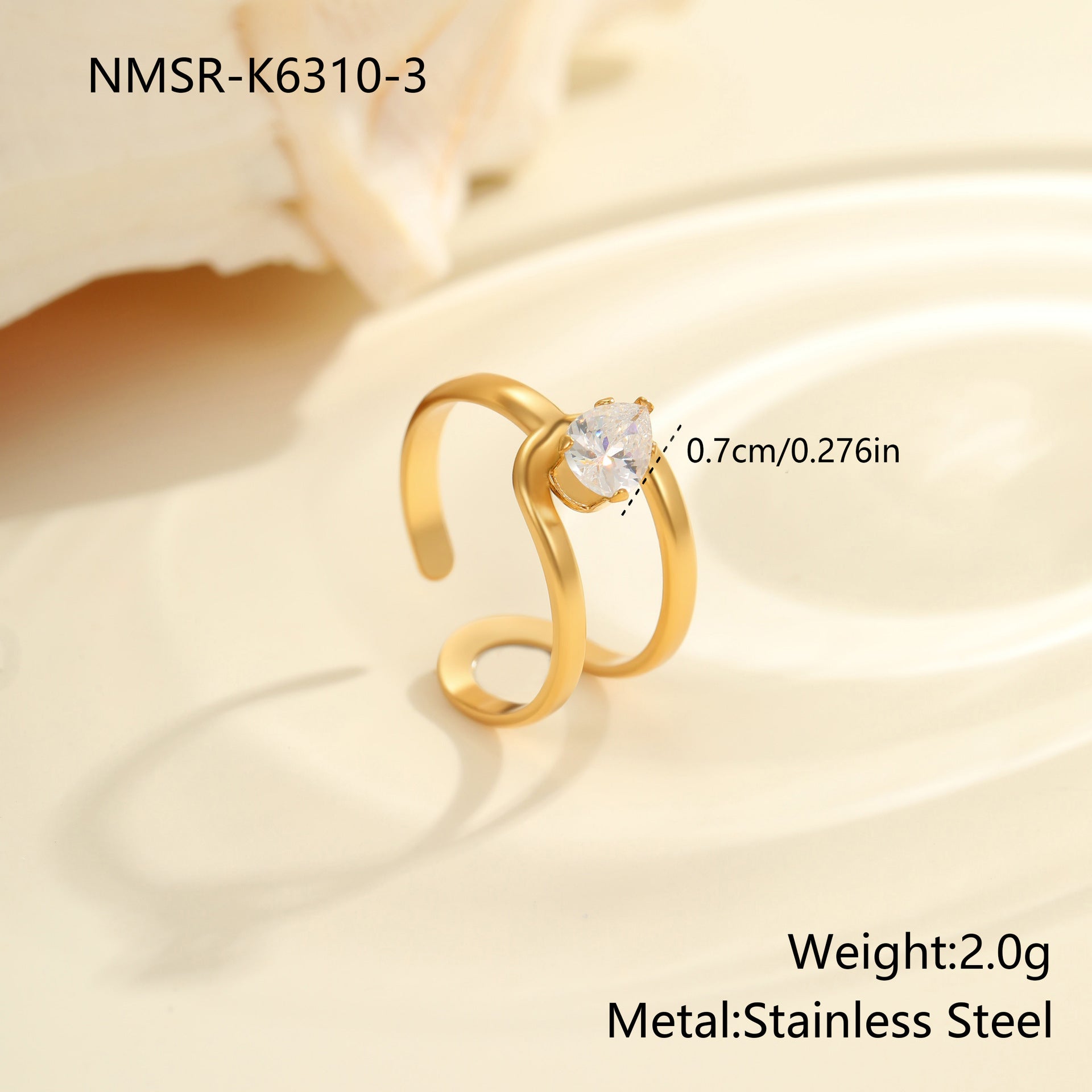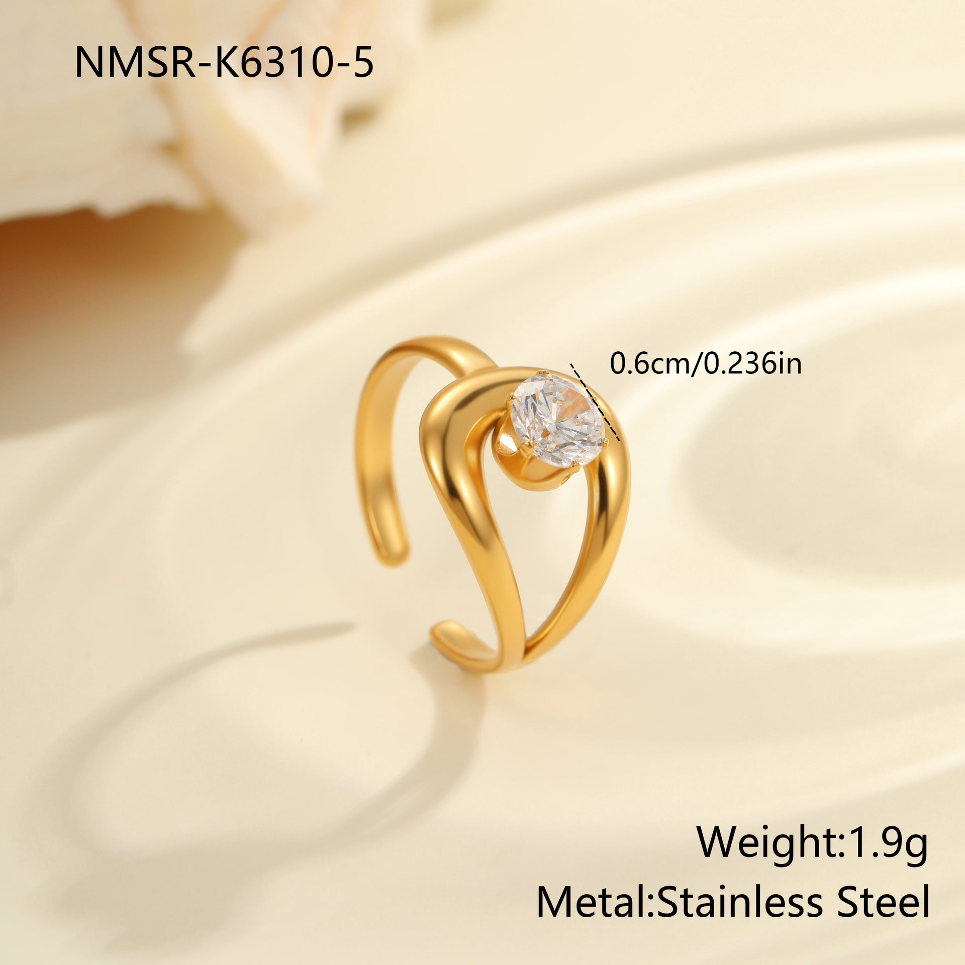 sleek gold-plated ring adorned with sparkling cubic zirconia, crafted from stainless steel. Lightweight and refined, perfect for adding a subtle, luxurious touch to any outfit.
