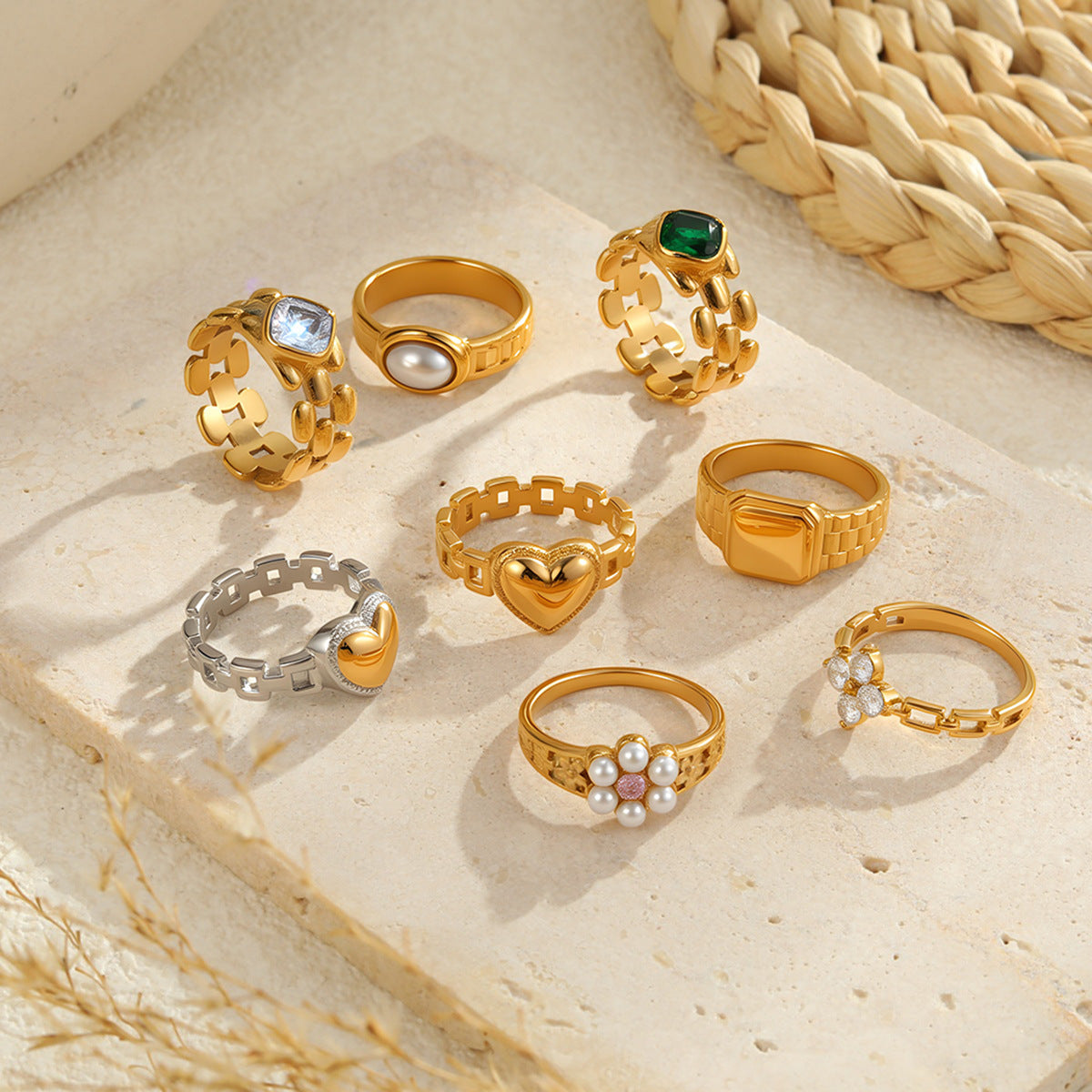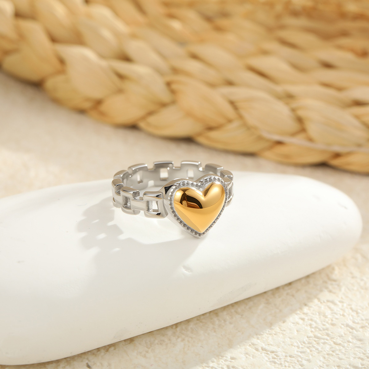 This French-inspired vintage heart ring features a gleaming zircon centerpiece set on durable titanium steel with long-lasting 18K gold plating. Its refined silhouette and delicate shine make it an effortless statement piece for everyday wear. Stylish, feminine, and beautifully detailed, it adds a touch of European elegance to any minimalist or romantic look.