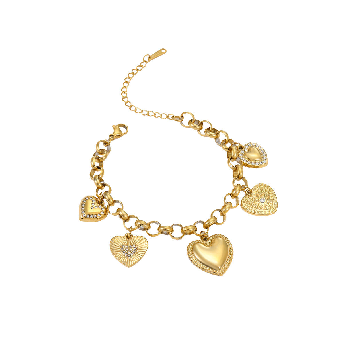 A refined heart-shaped pendant set for necklace and bracelet, featuring subtle inlaid heart details. Lightweight, elegant, and perfect for adding a soft, stylish touch to any outfit.