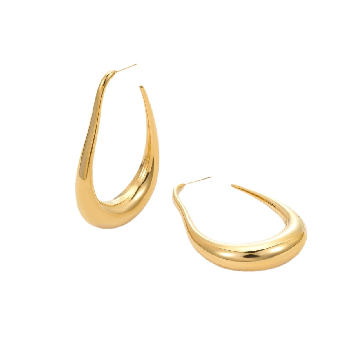 Hollow U-Shaped Stud Earrings – Stainless Steel, Geometric & Bold Design