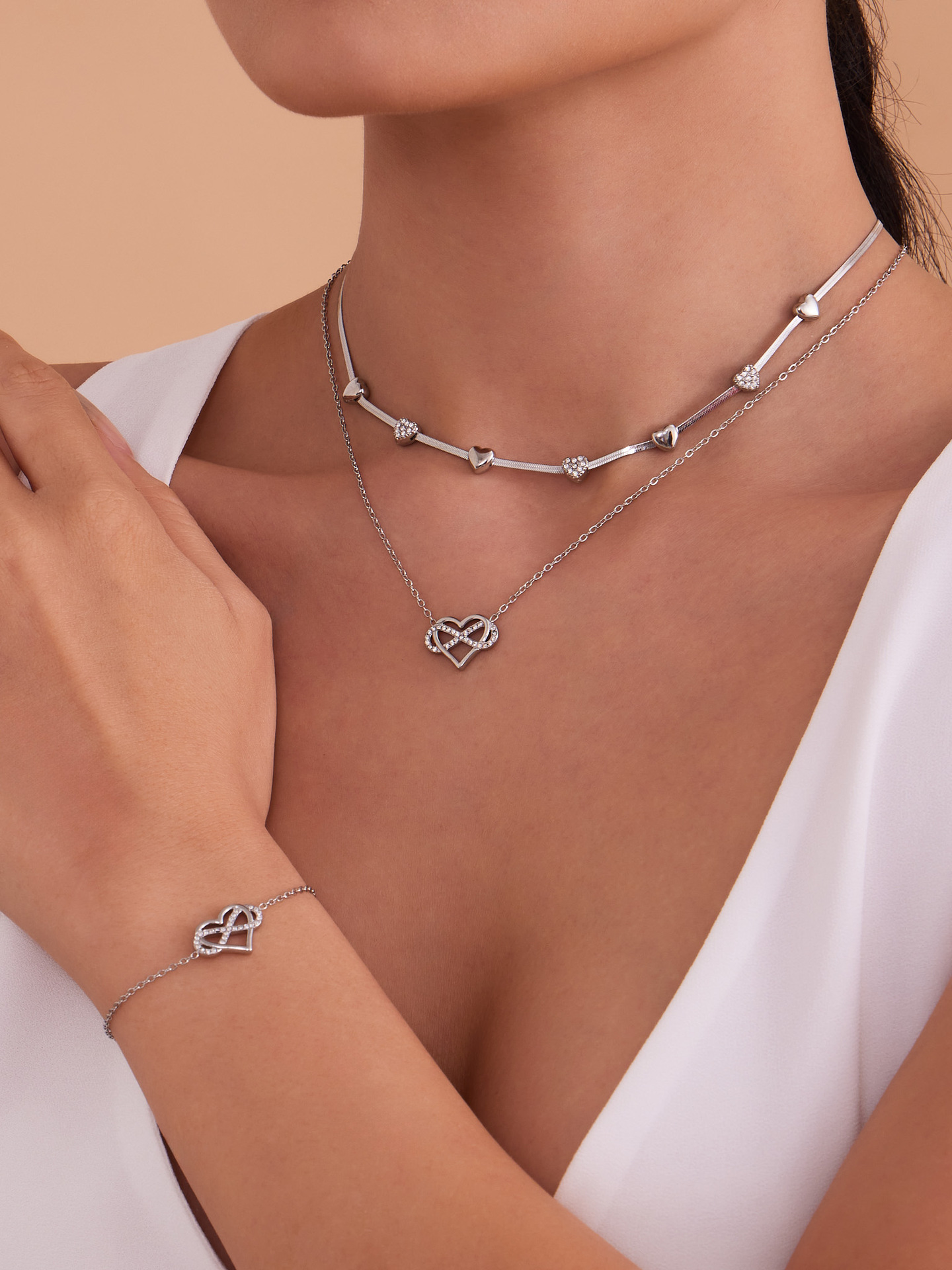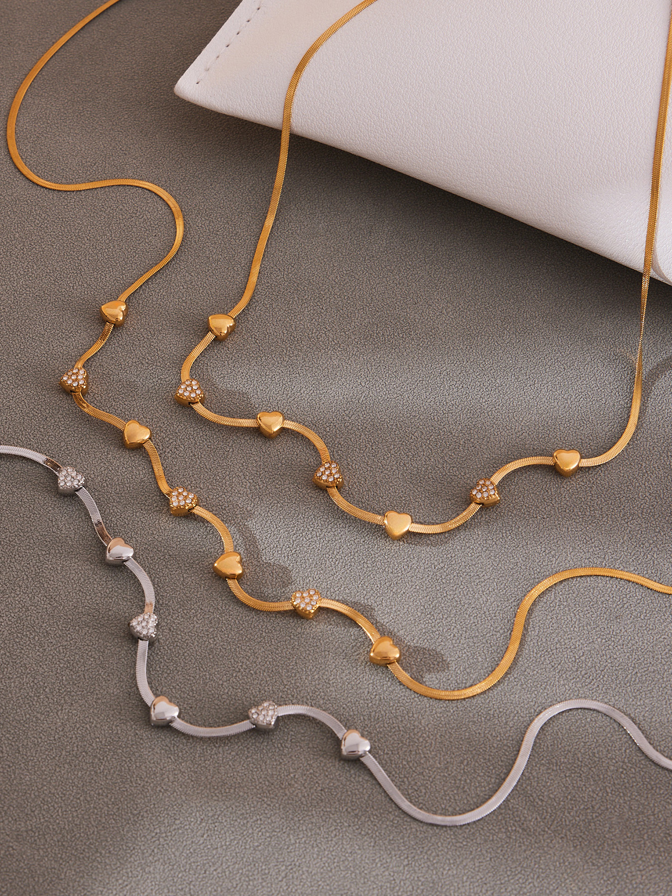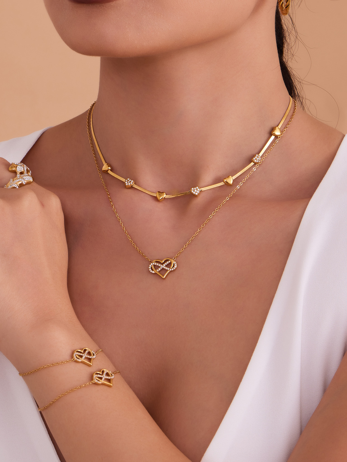 This ultra-delicate infinity heart jewelry set is designed for effortless shimmer and everyday luxury. Featuring a sleek pavé heart charm and micro-fine chains, each piece is crafted from high-quality stainless steel with PVD gold plating for long-lasting color and shine.