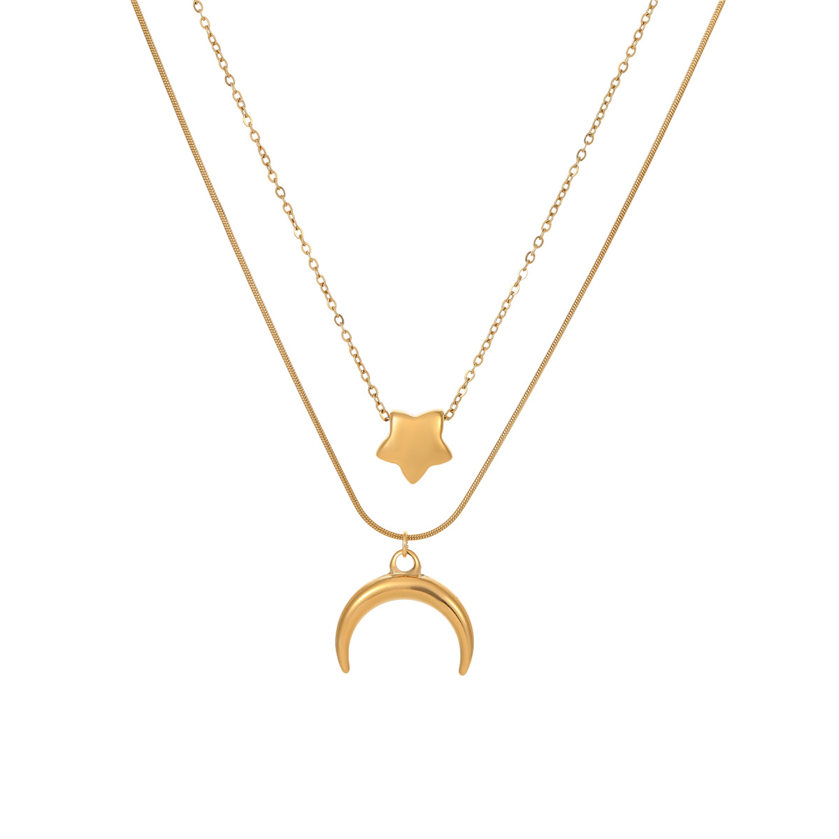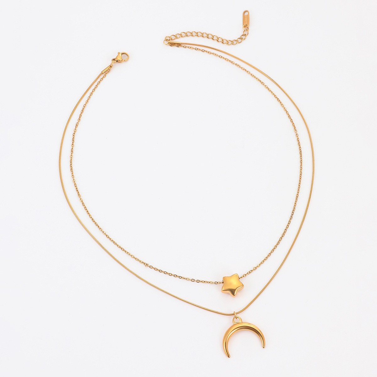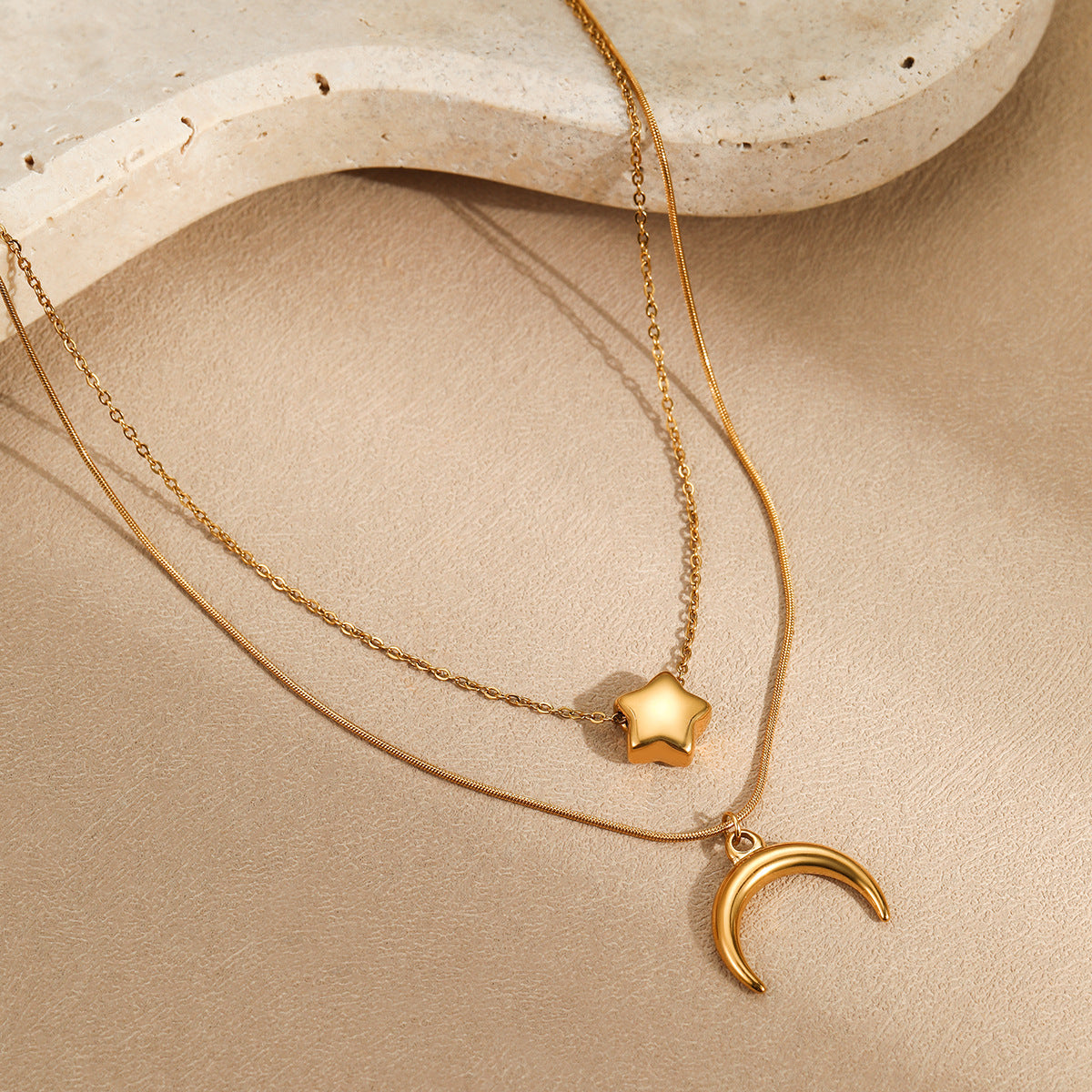 A chic multi-layer necklace featuring star and moon charms, crafted from stainless steel. Lightweight and versatile, perfect for layering or adding a subtle, stylish touch to any outfit.