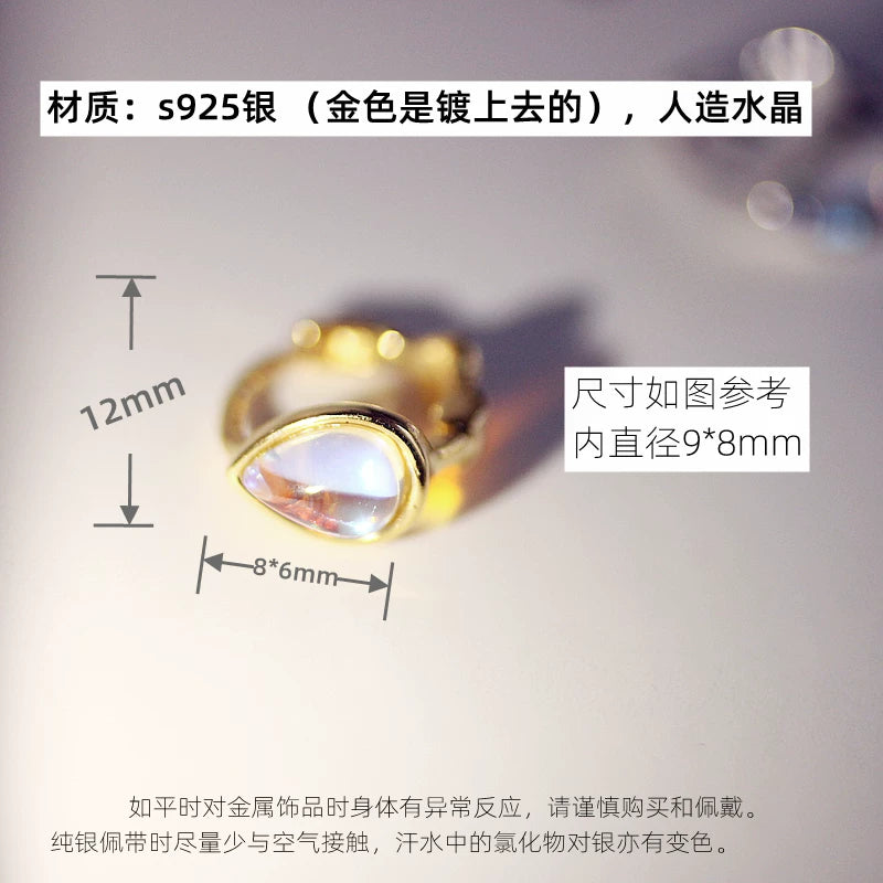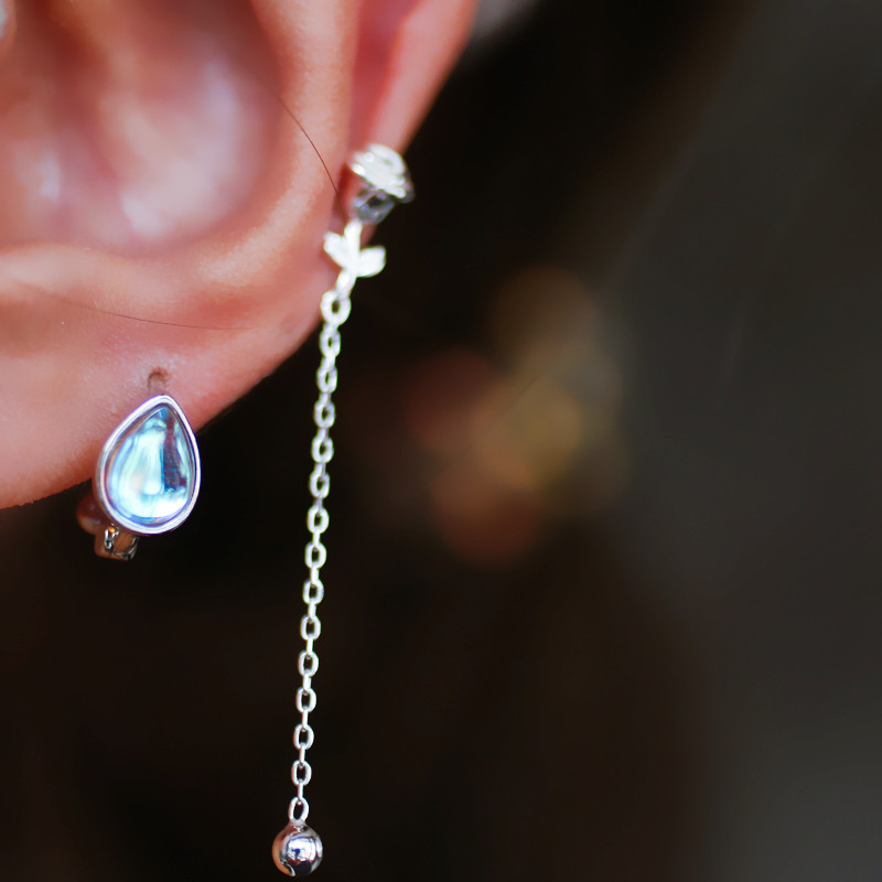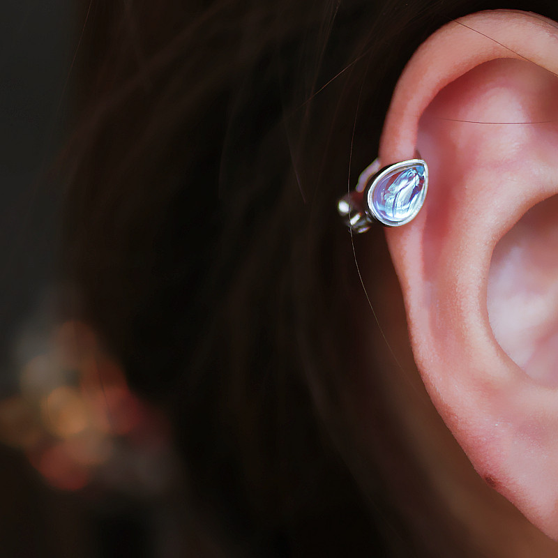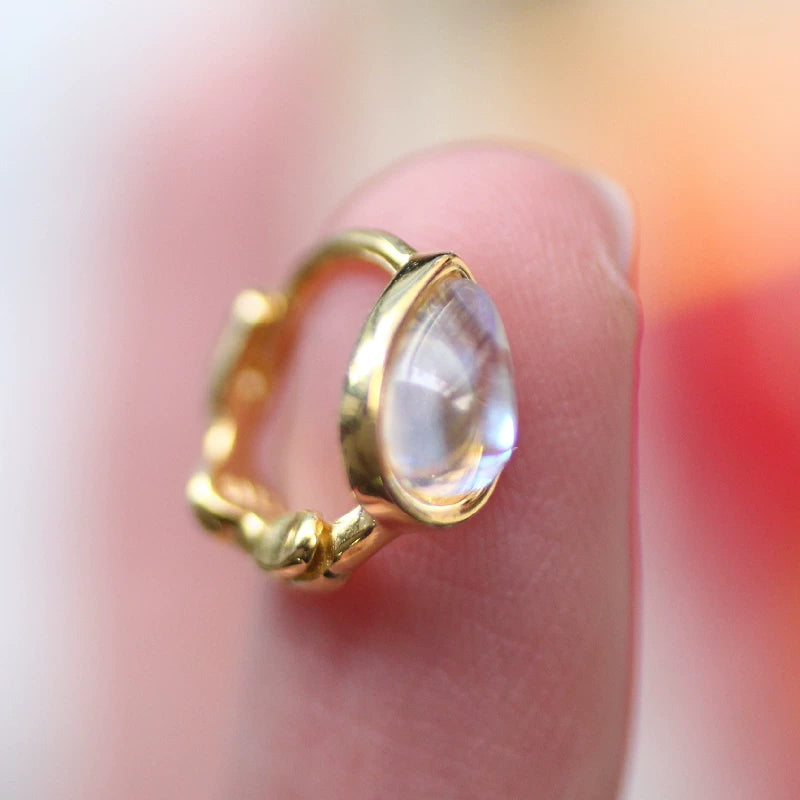 Sterling Silver Mermaid Moon Teardrop Cartilage Ear Cuff, Luxury Ocean Inspired Jewelry