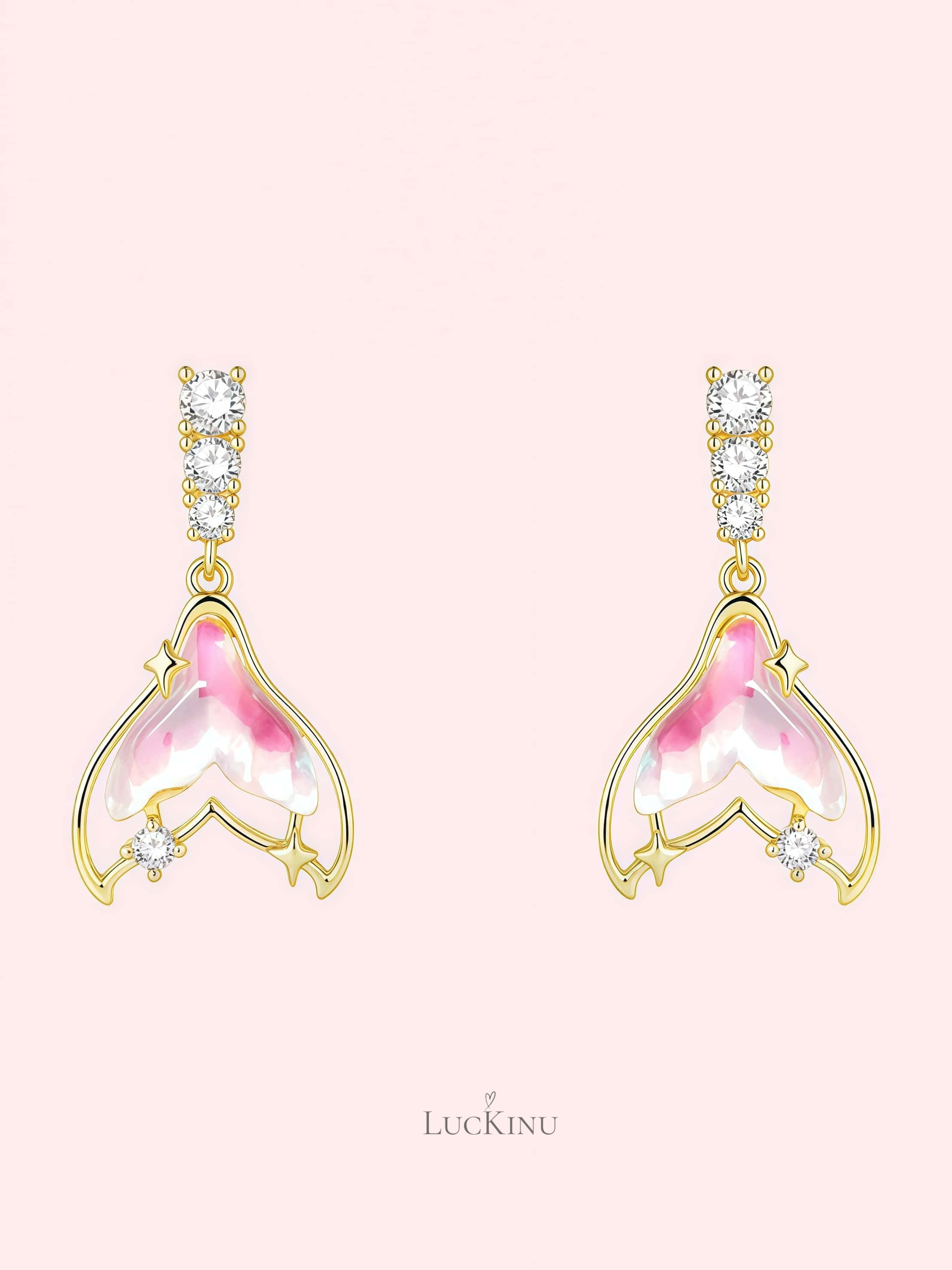 Pink Iridescent Mermaid Tail Earrings – Dreamy Romantic Jewelry