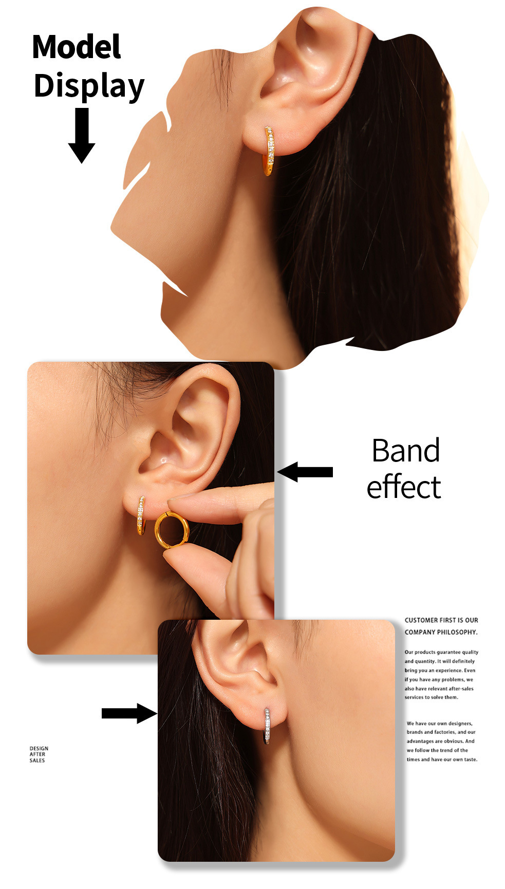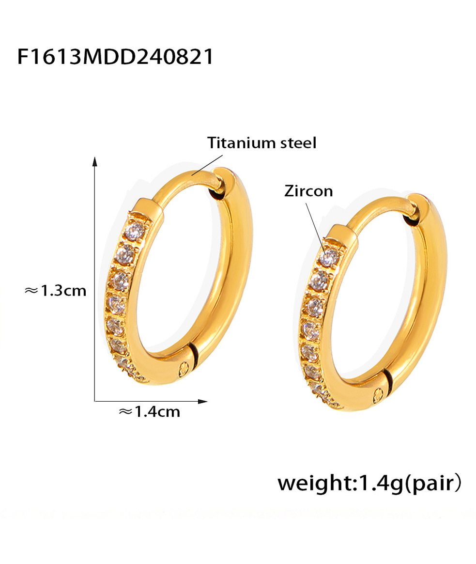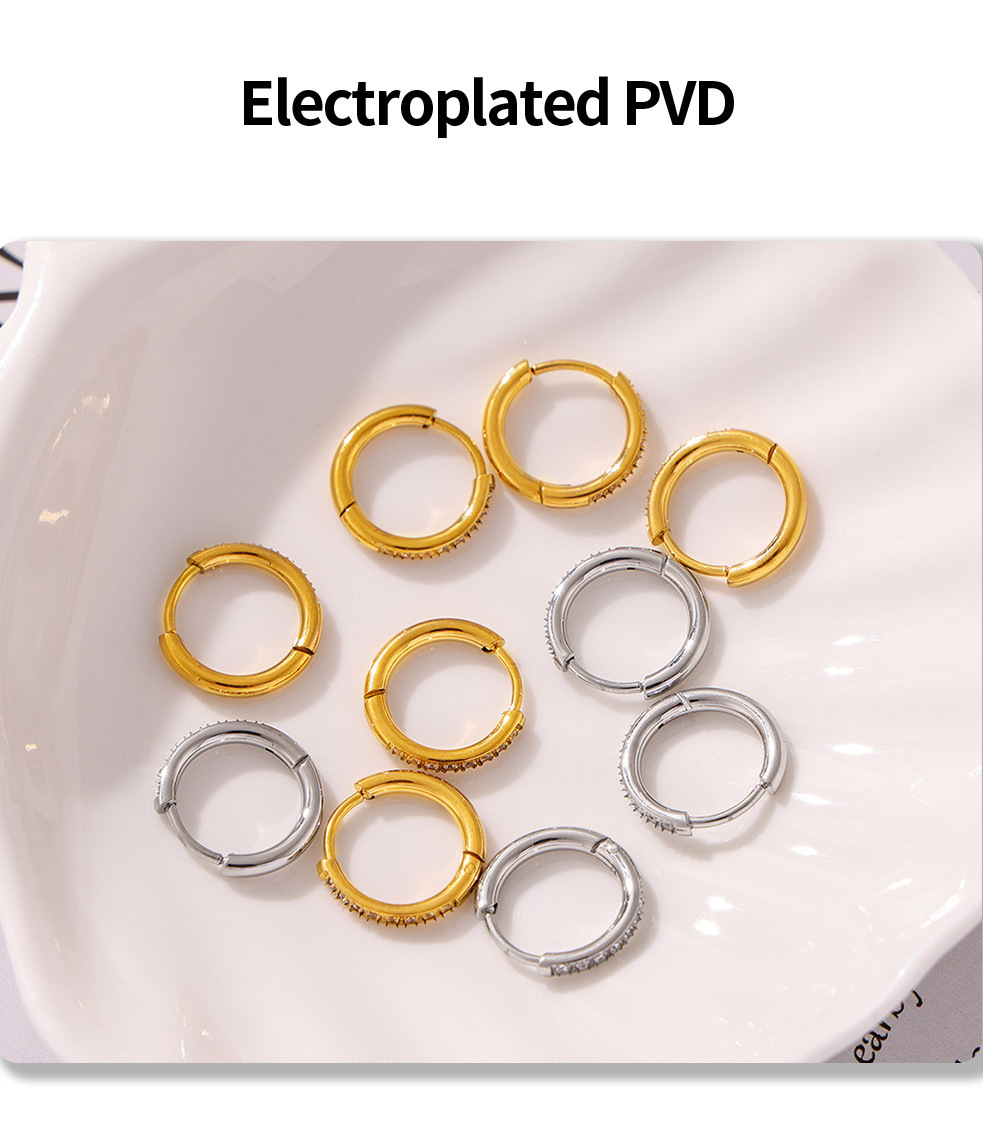 Minimalist Zircon Huggie Hoop Earrings – PVD 18K Gold Plated Titanium Steel, Tarnish-Free Everyday Jewelry for Women