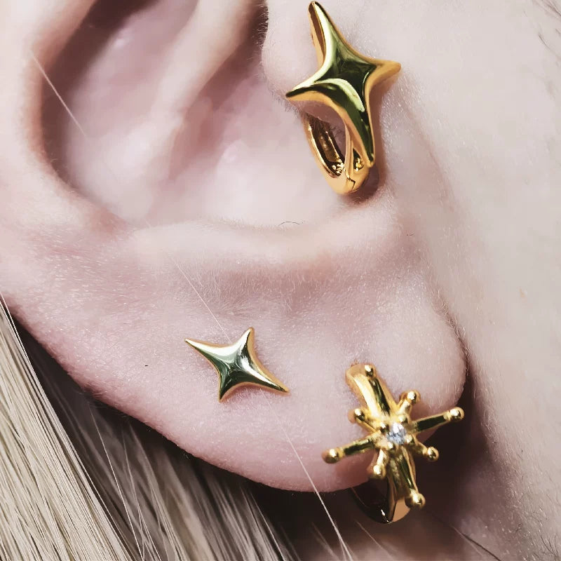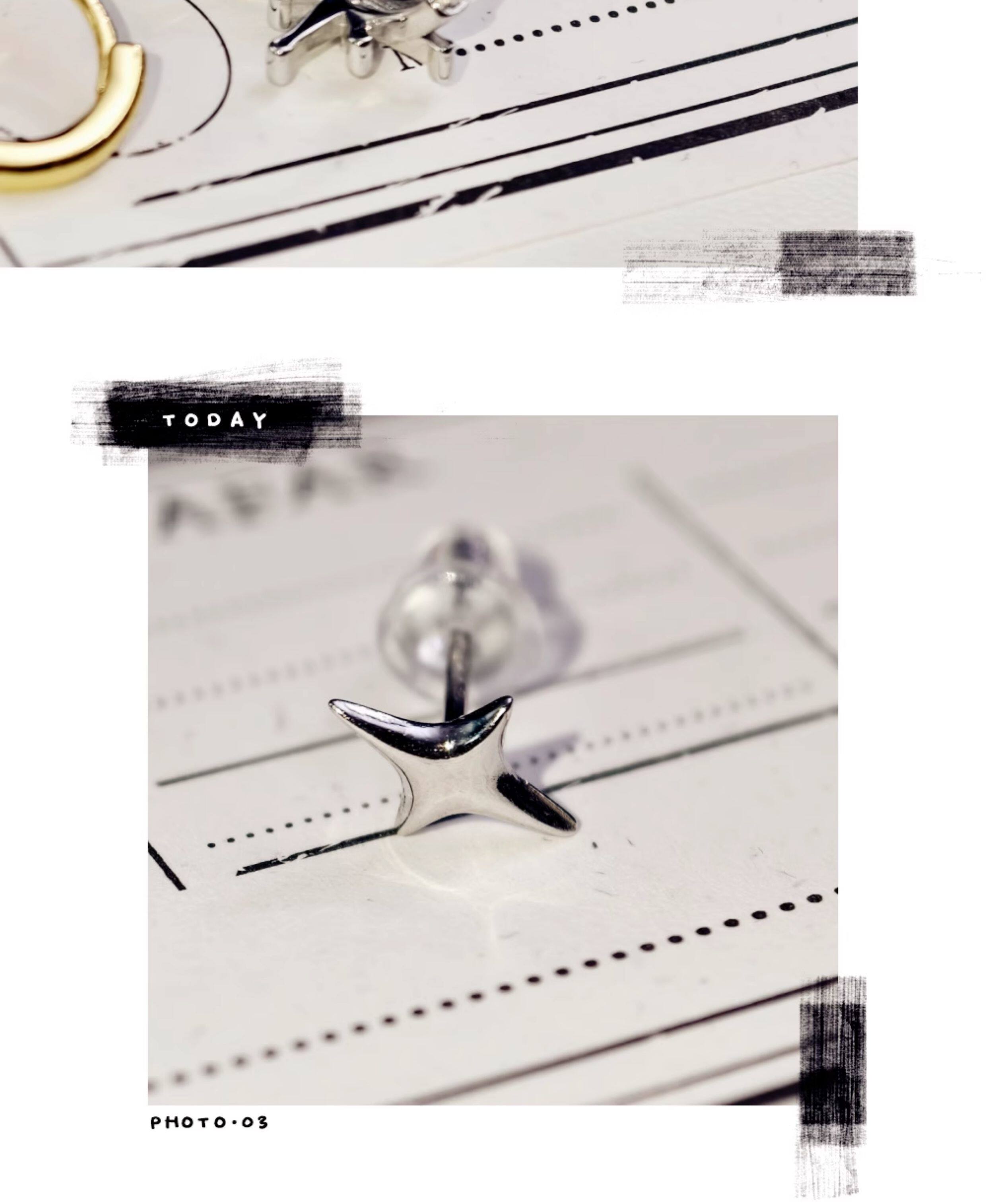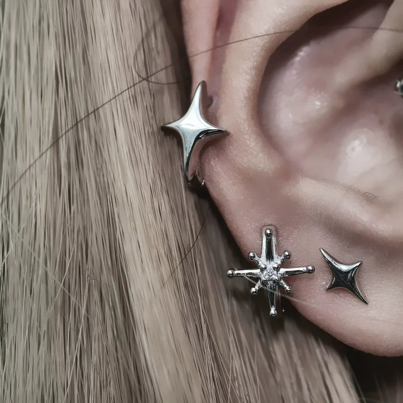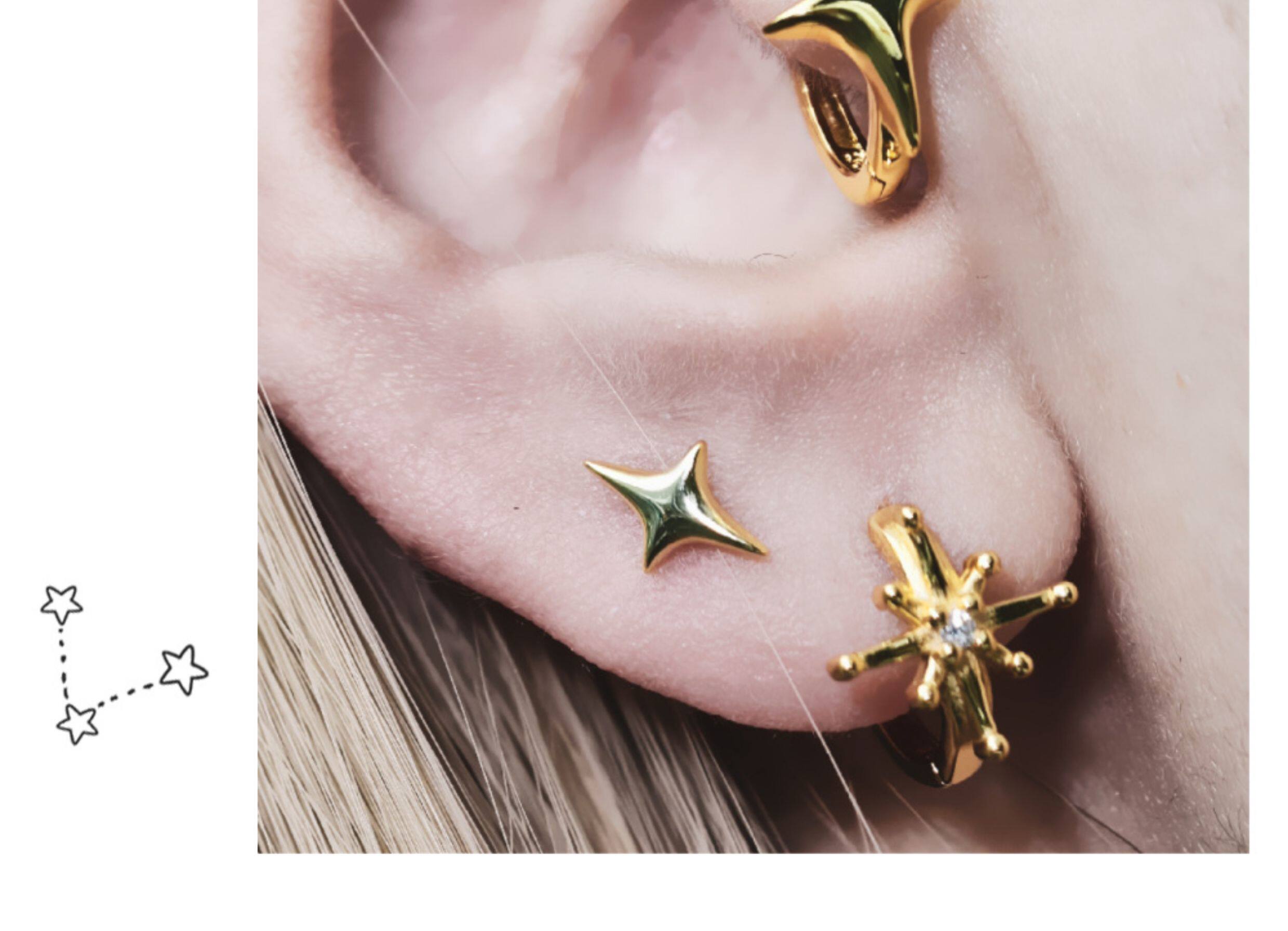 Sterling Silver North Star Cartilage Hoop Earring, Dainty Asymmetrical Star Stud Jewelry