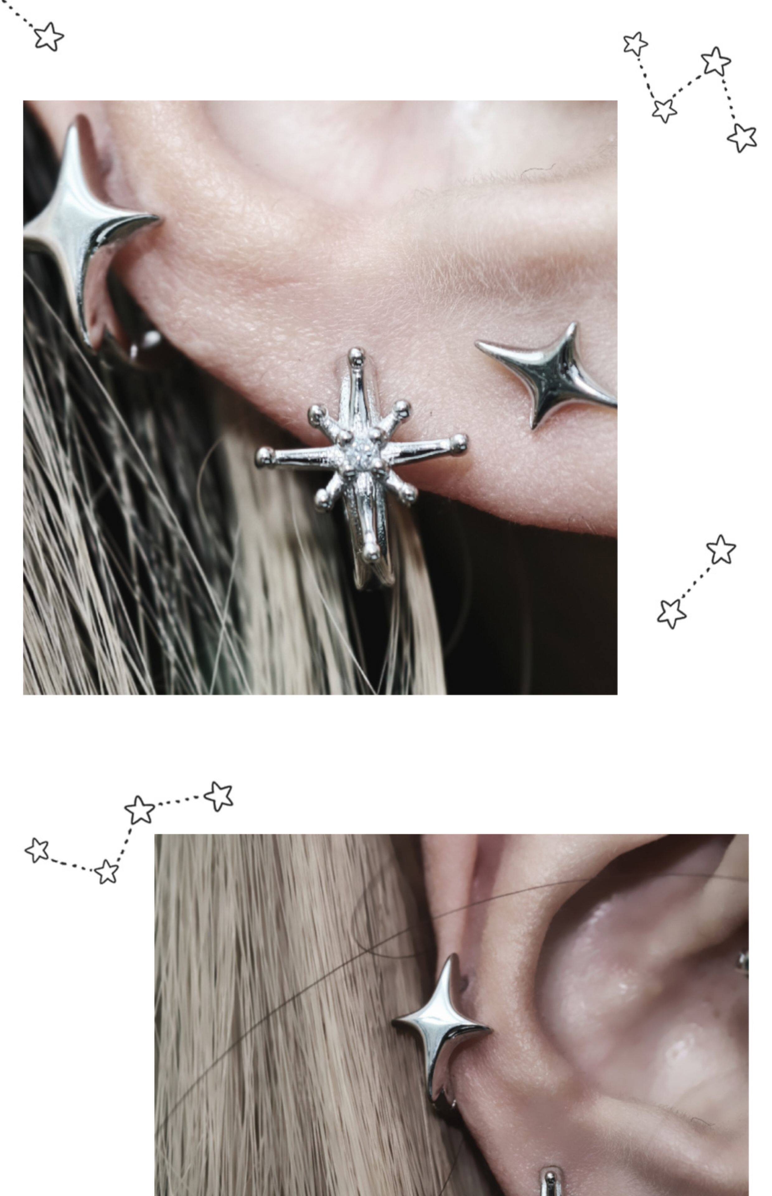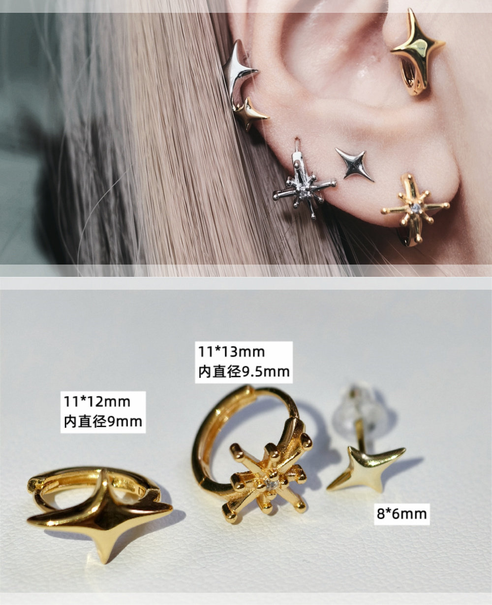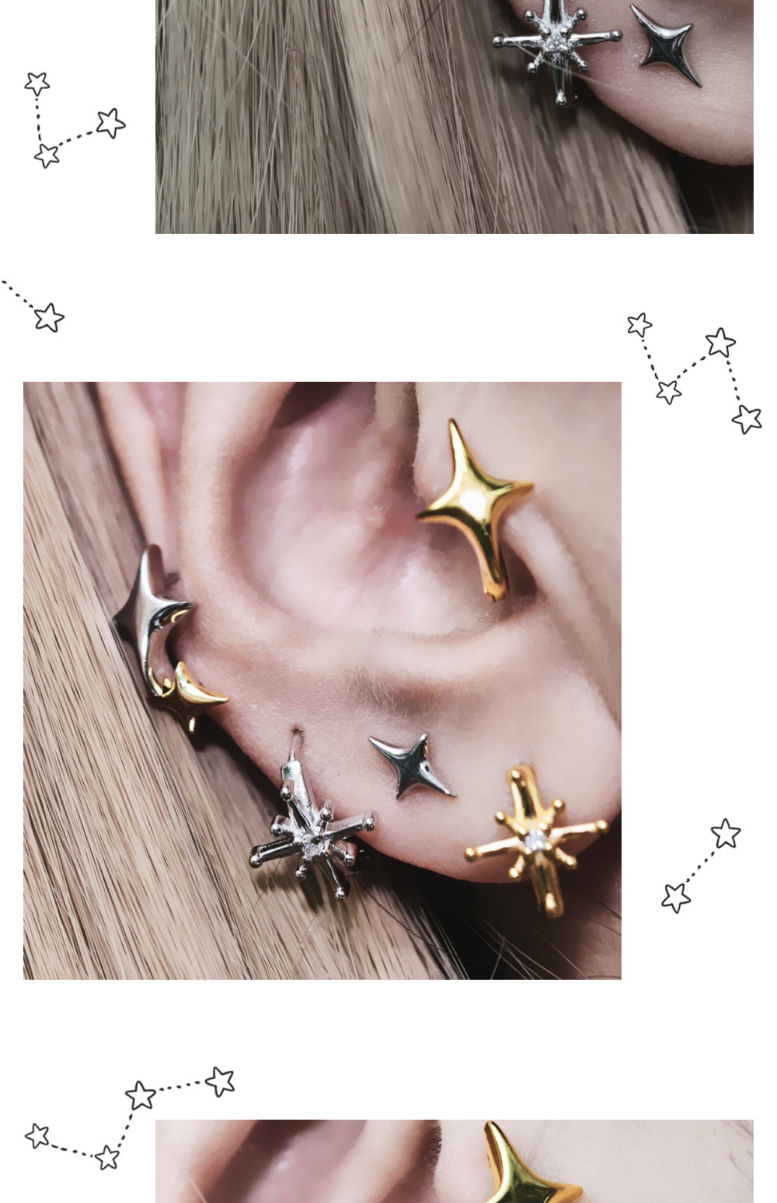 Sterling Silver North Star Cartilage Hoop Earring, Dainty Asymmetrical Star Stud Jewelry